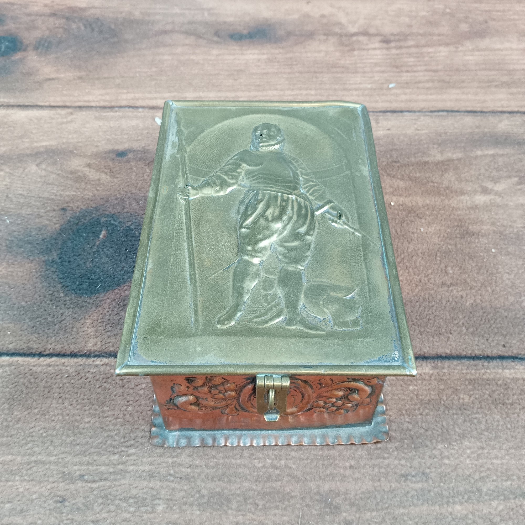 early handmade box with hinged lid, tin-lined, hand hammered decoration