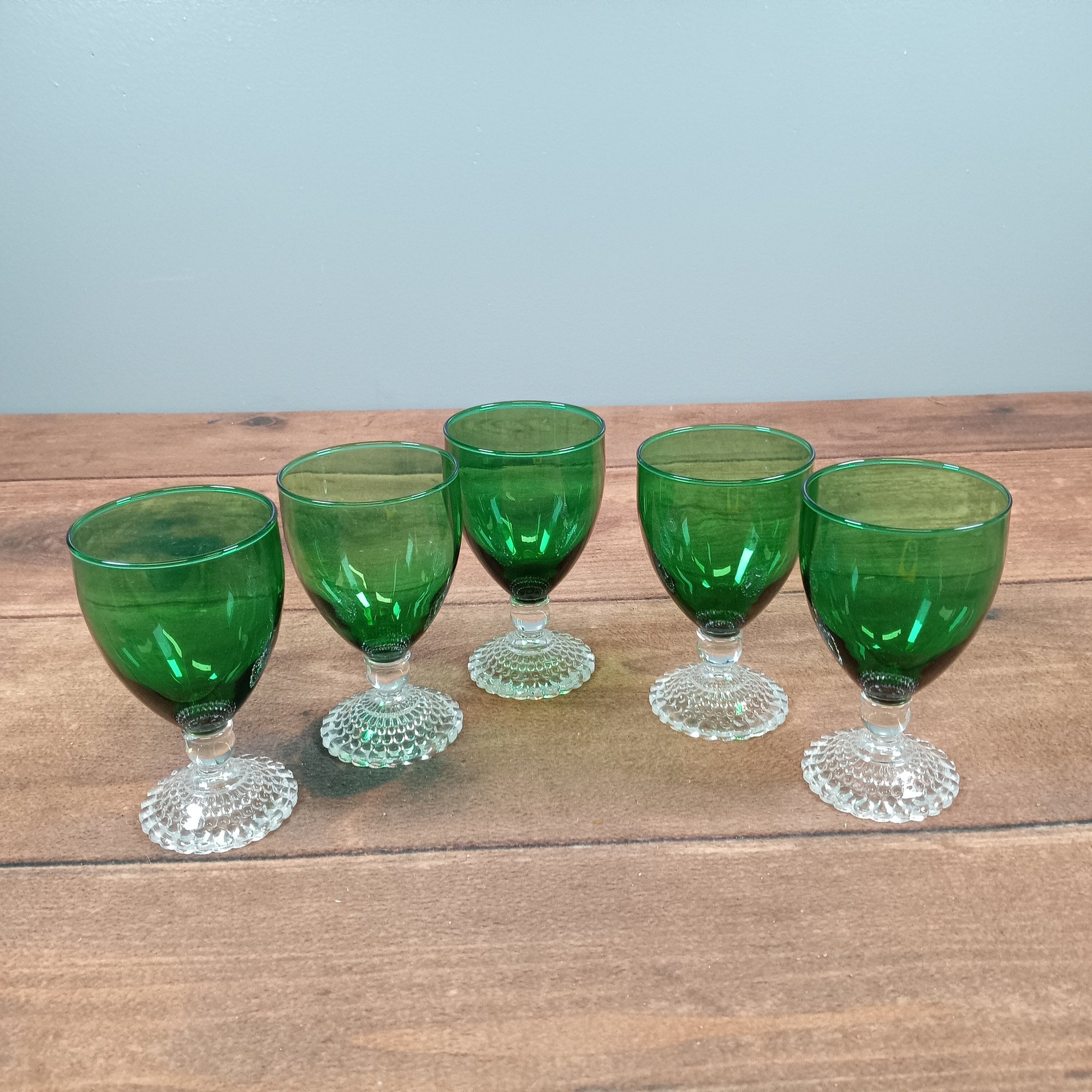 6 Anchor Hocking Forest Green Bubble Depression Glass Water Goblet