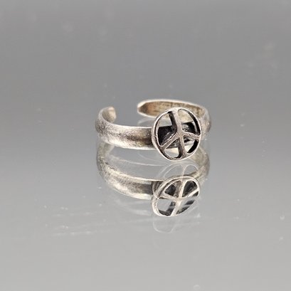 925 Sterling Peace Sign Toe Ring Size 2.5 Adjustable