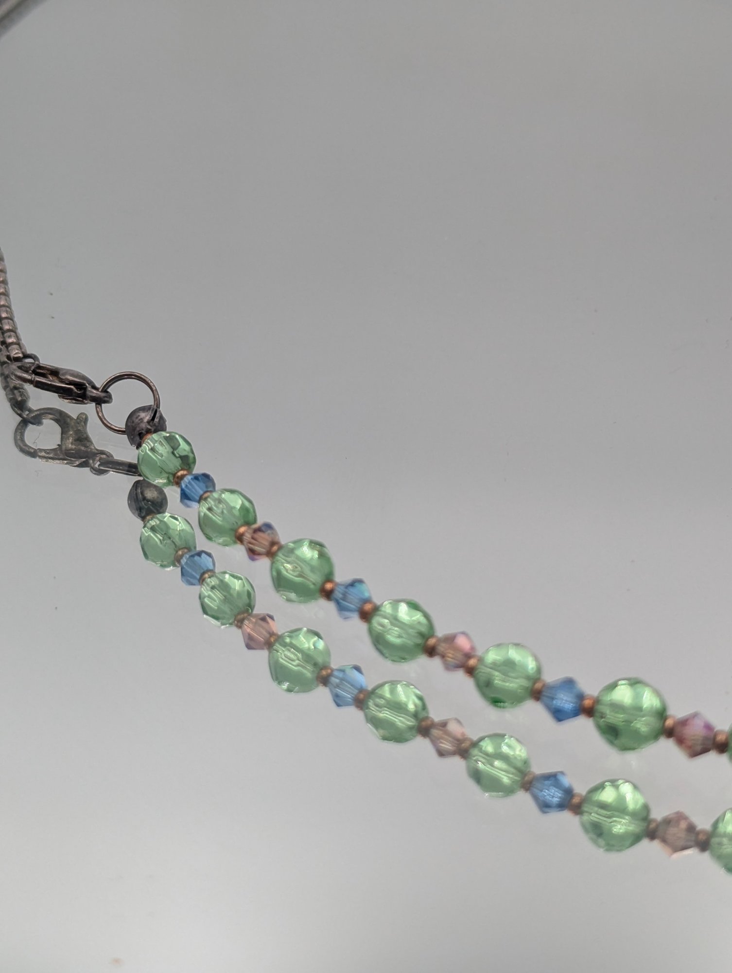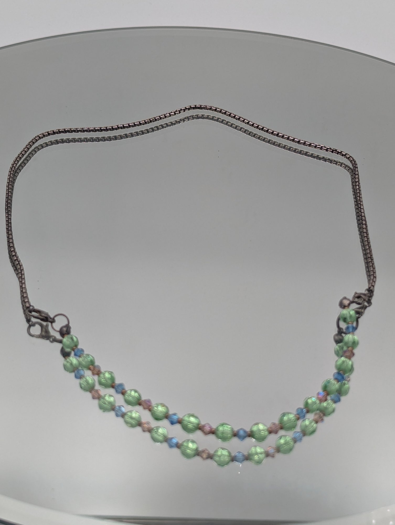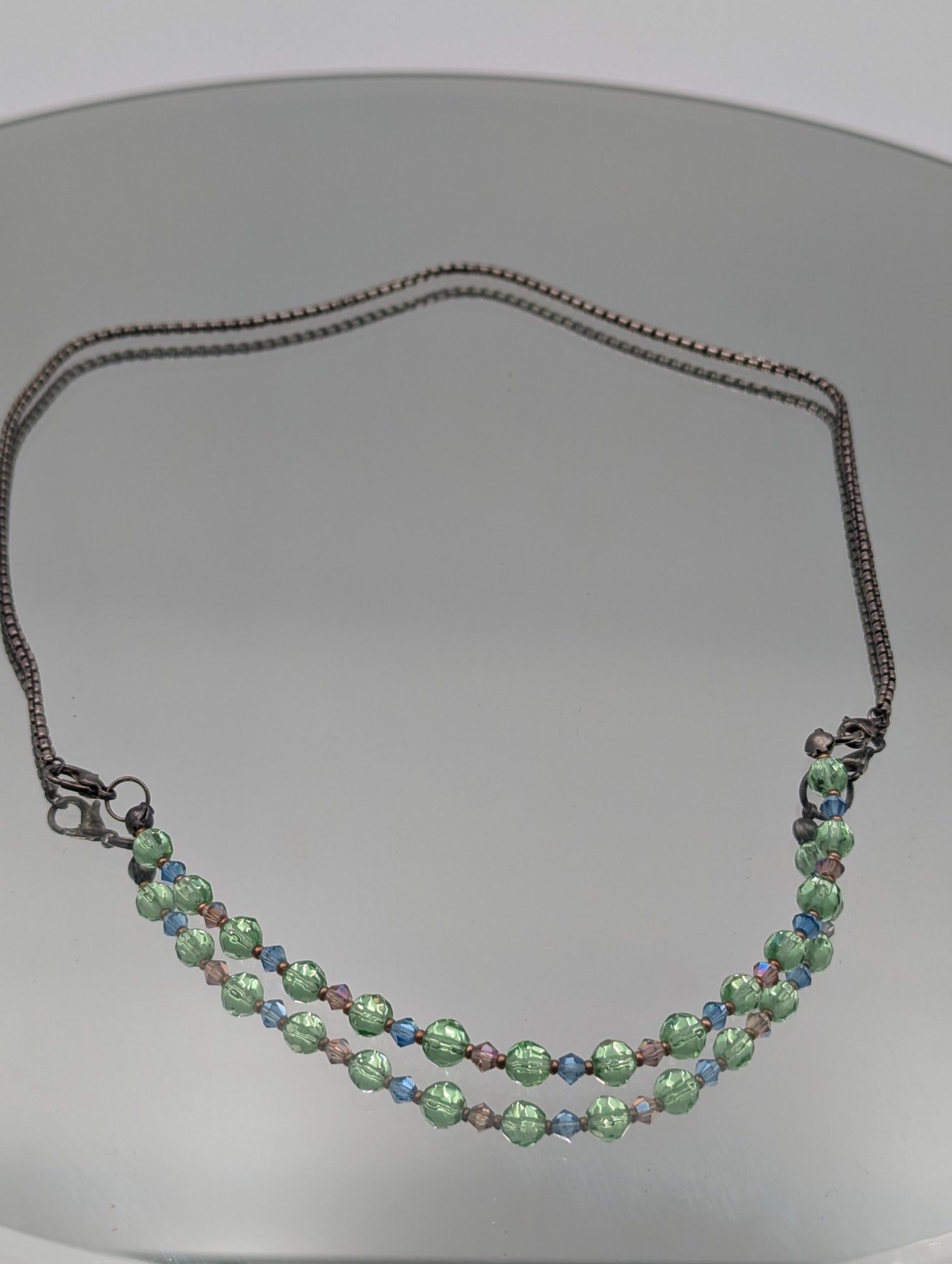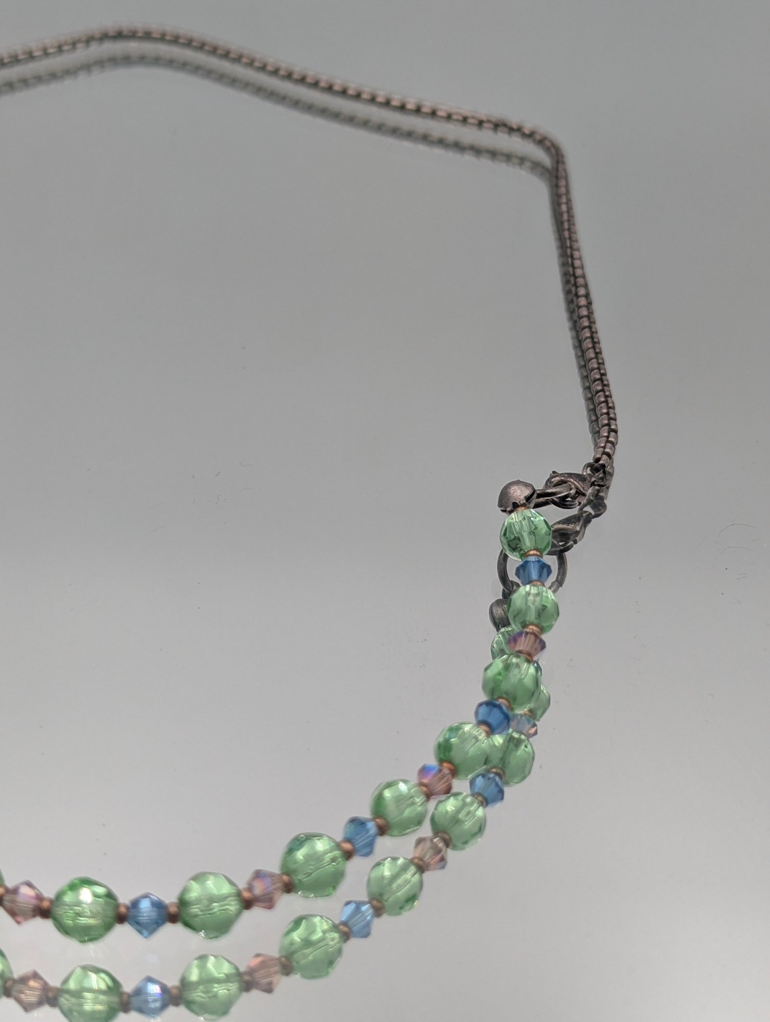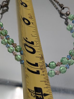 925 Sterling Silver Beaded Necklace - Green & Blue beads