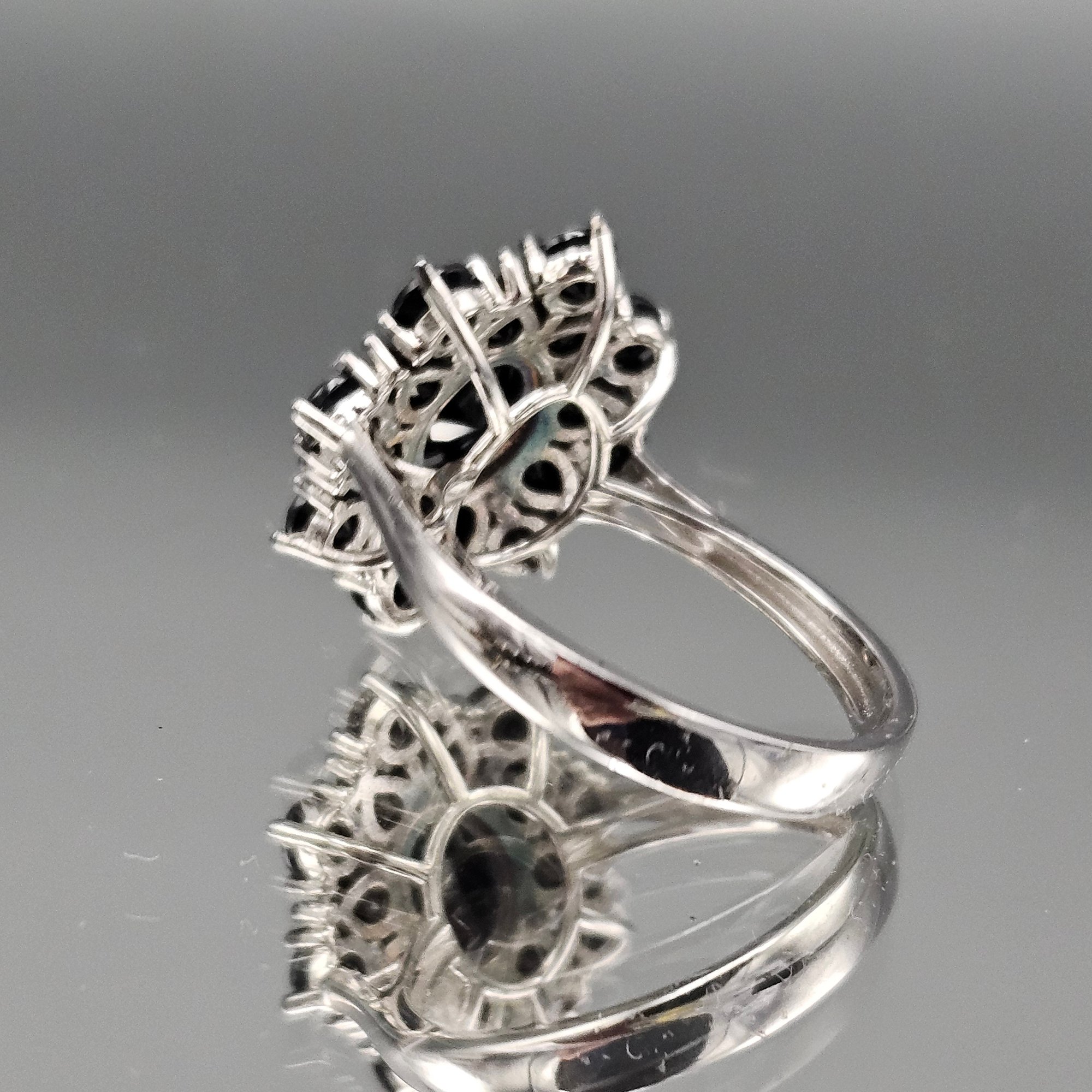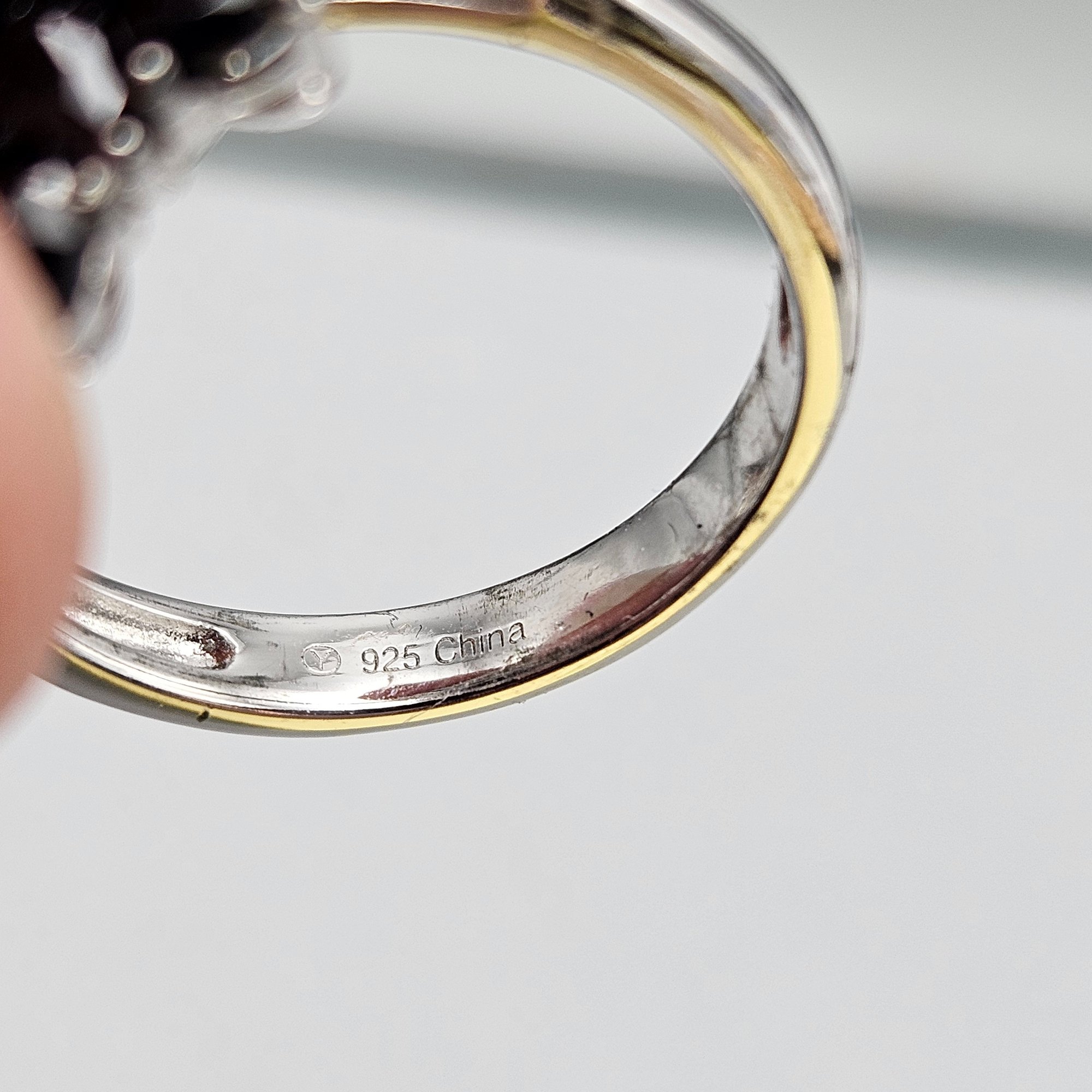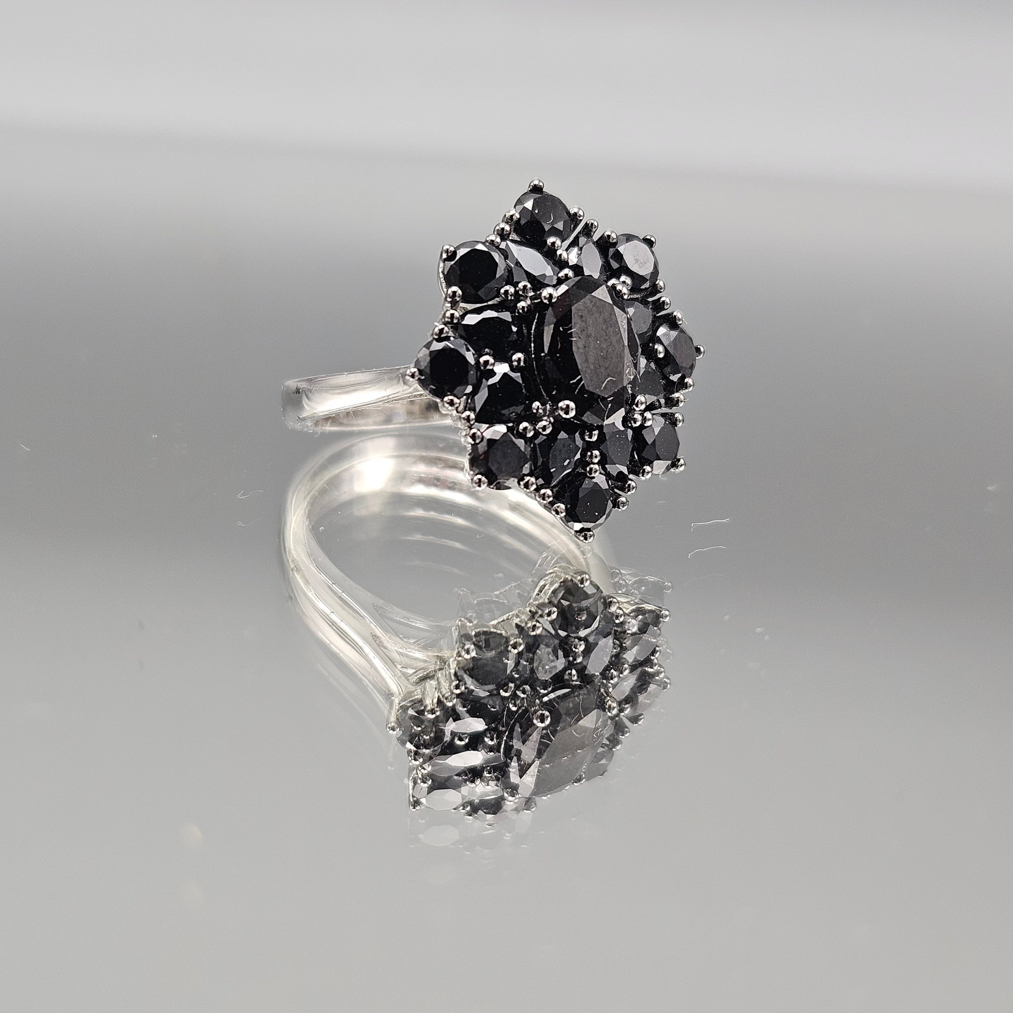 .925 Sterling Silver black cubic zirconia flower ring size 8