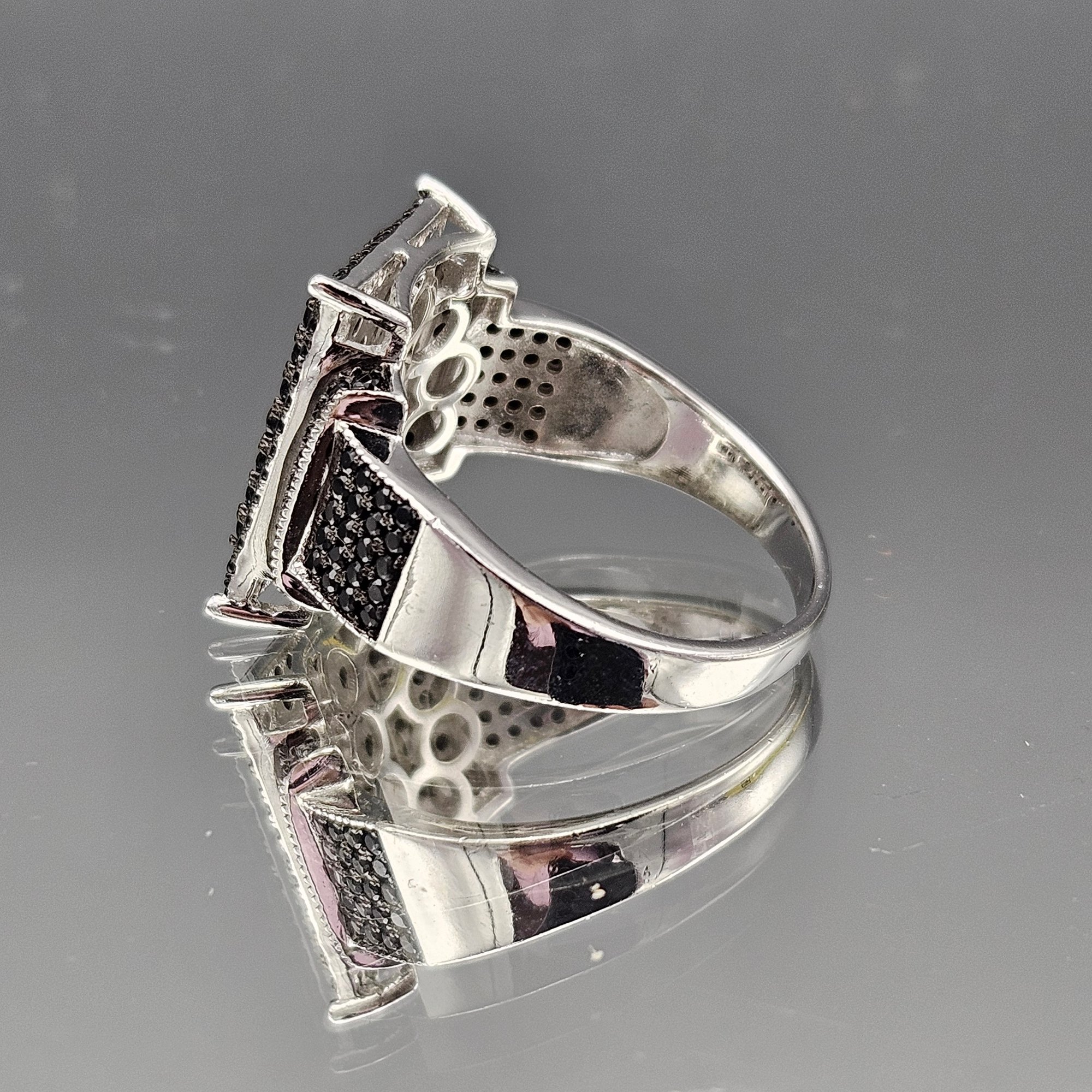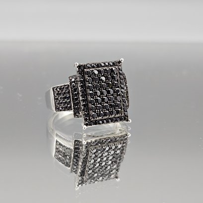 925 Sterling Silver Black Spinel Pave Square Statement Ring - Size 11