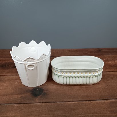 Pair 2 white Porcelain planters