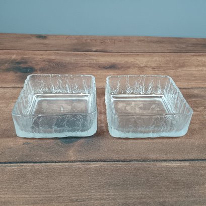 Pair of Mid-Century Modern Hoya Glacier Bark Frost Fire square dishes
