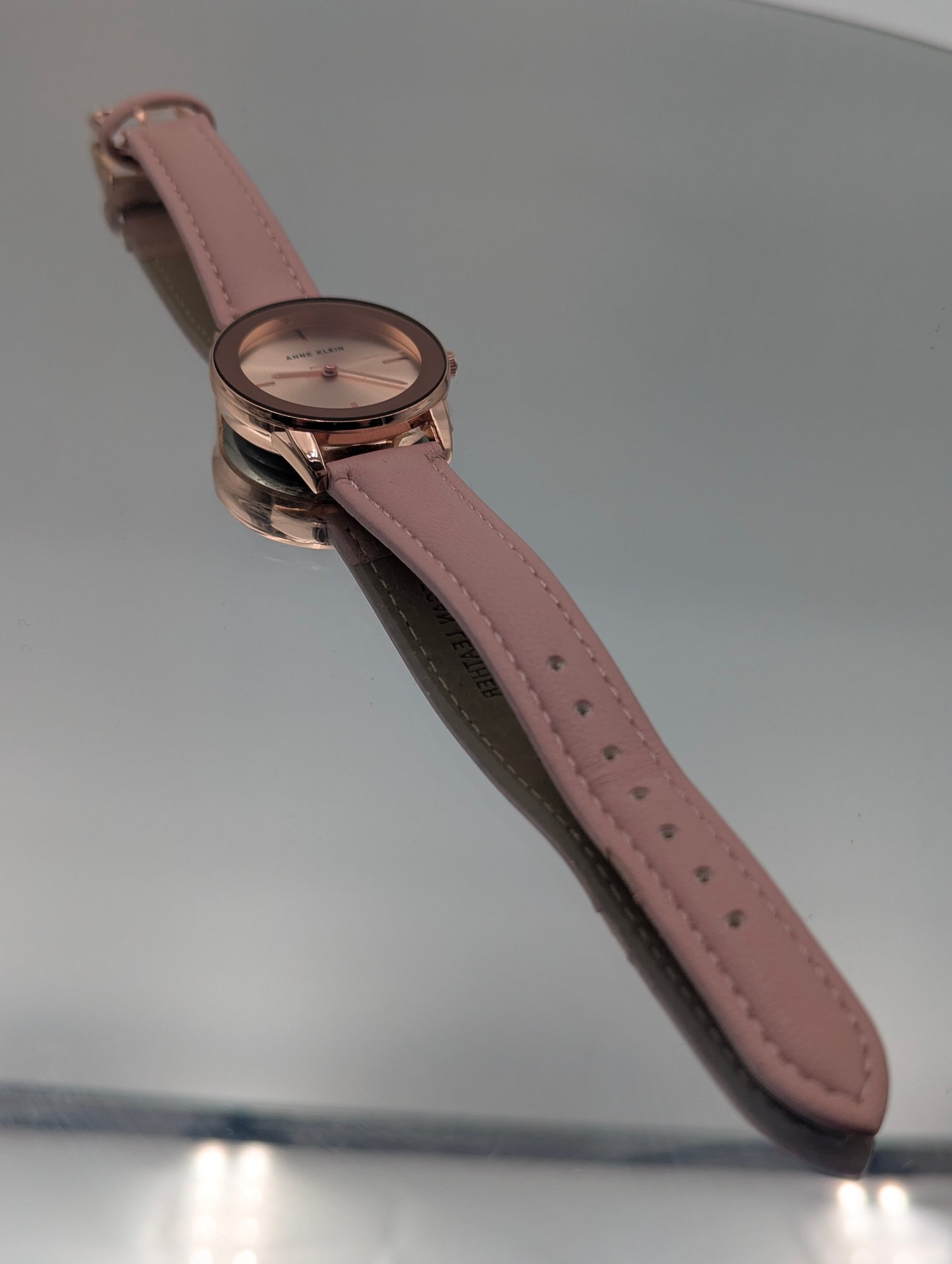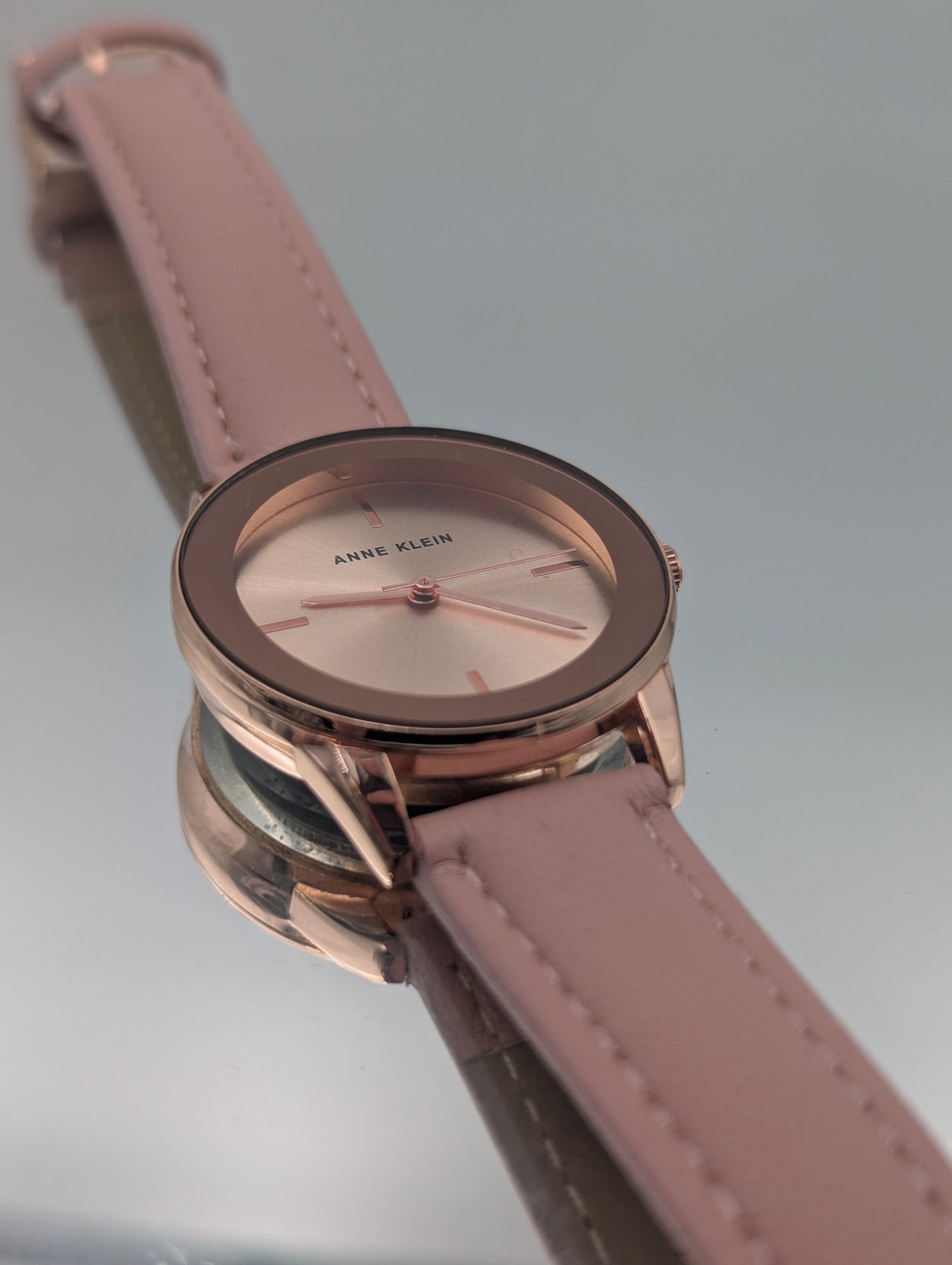 Anne Klein Rose Gold Tone Quartz Watch With Blush Pink Vegan Leather Stra