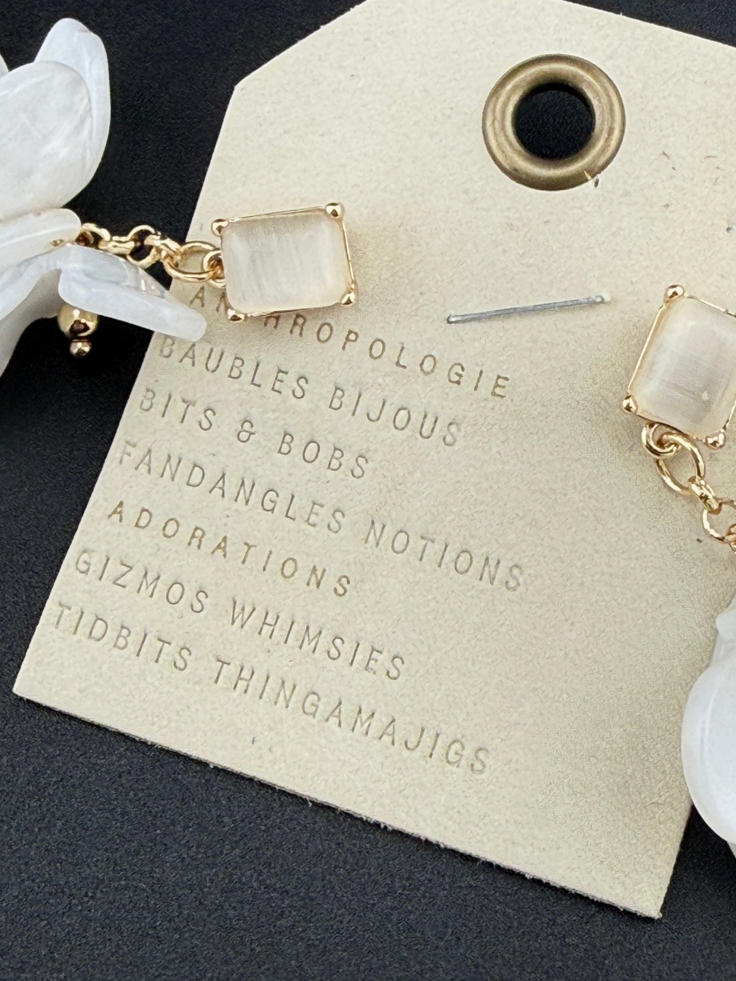 Anthropologie Mother of Pearl Style Floral Statement Drop Earrings