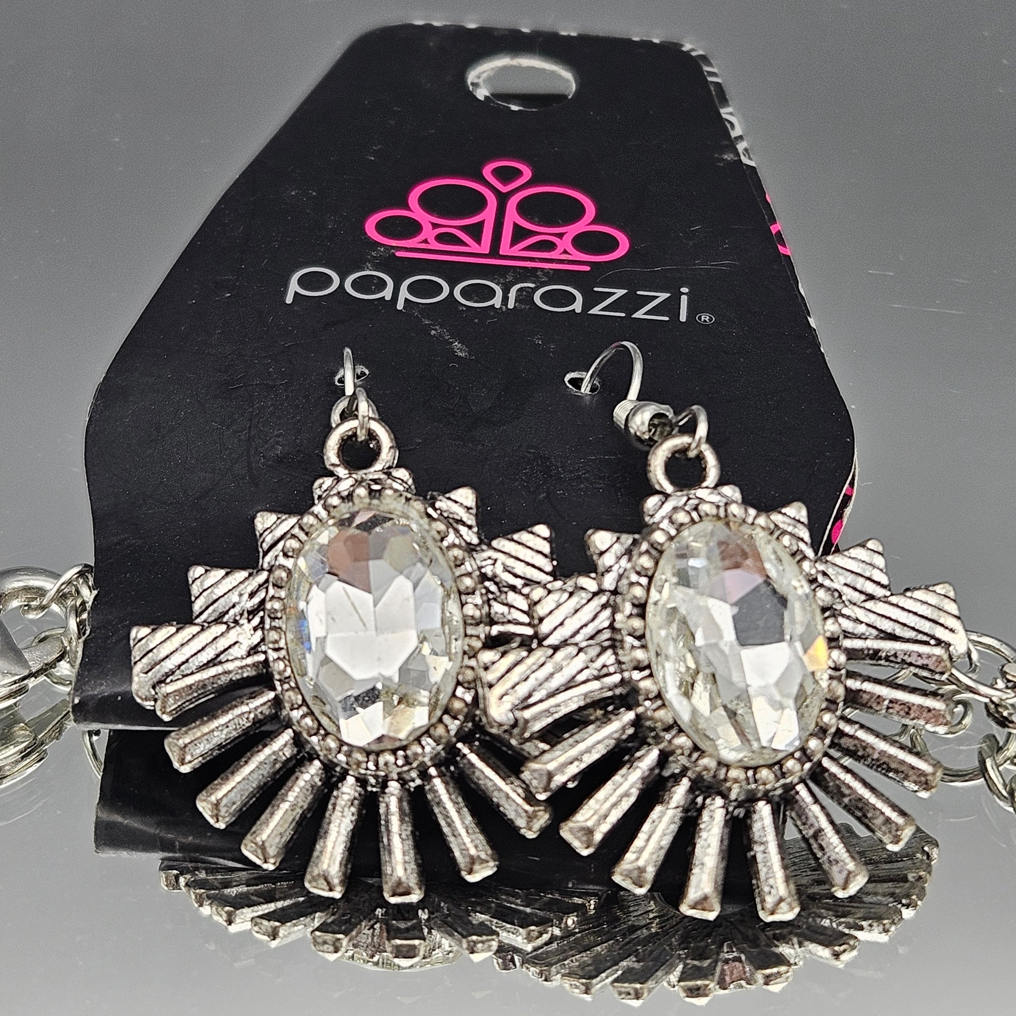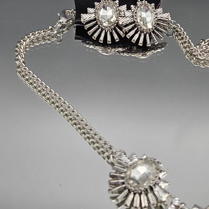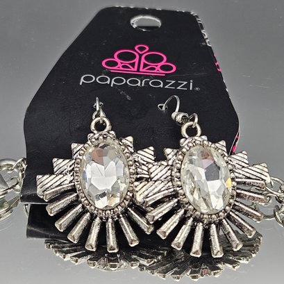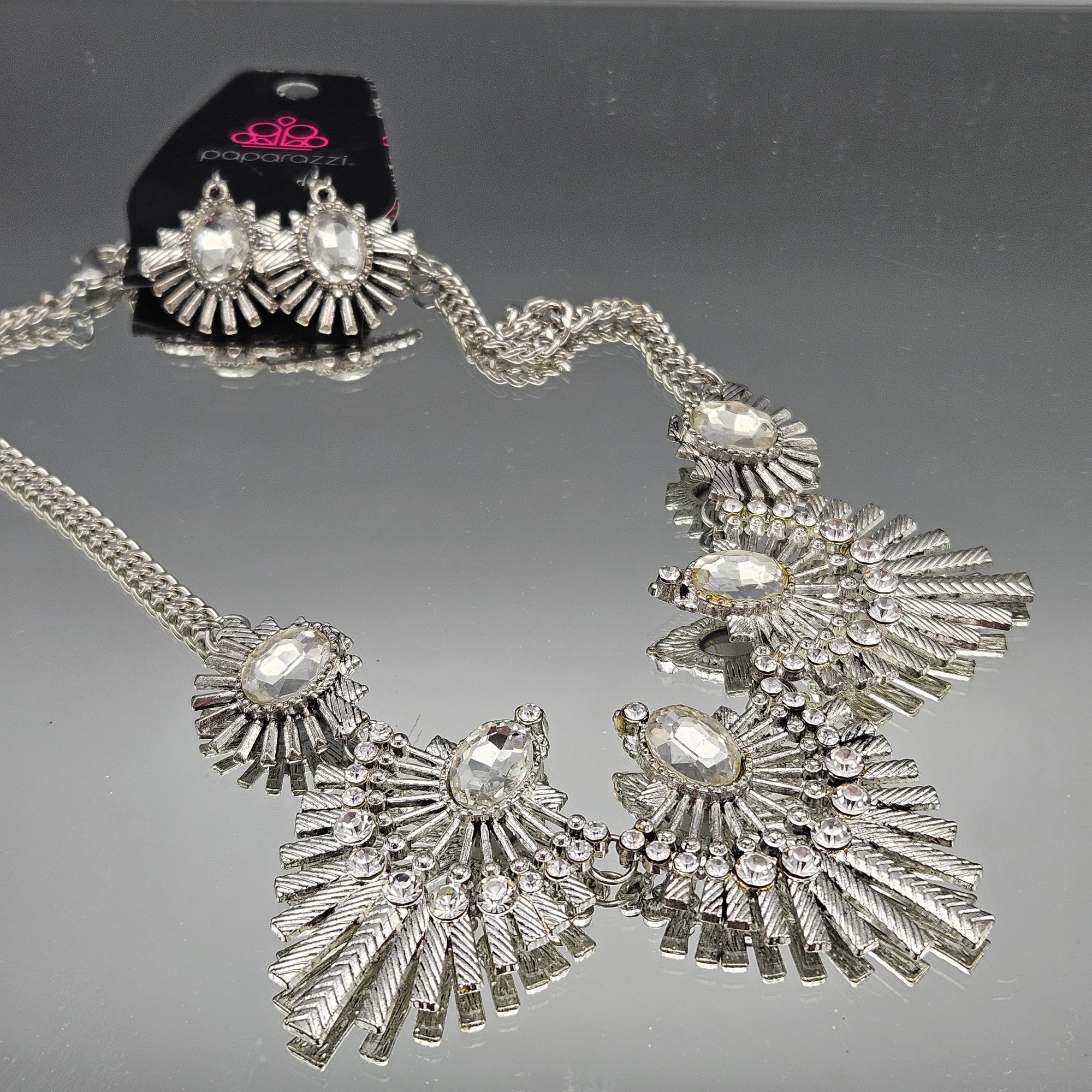 Paparazzi Silver Rhinestone Statement Necklace & Earring Set