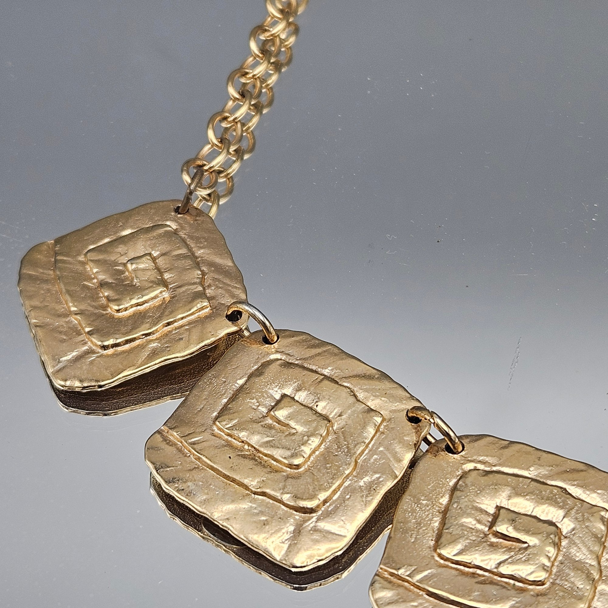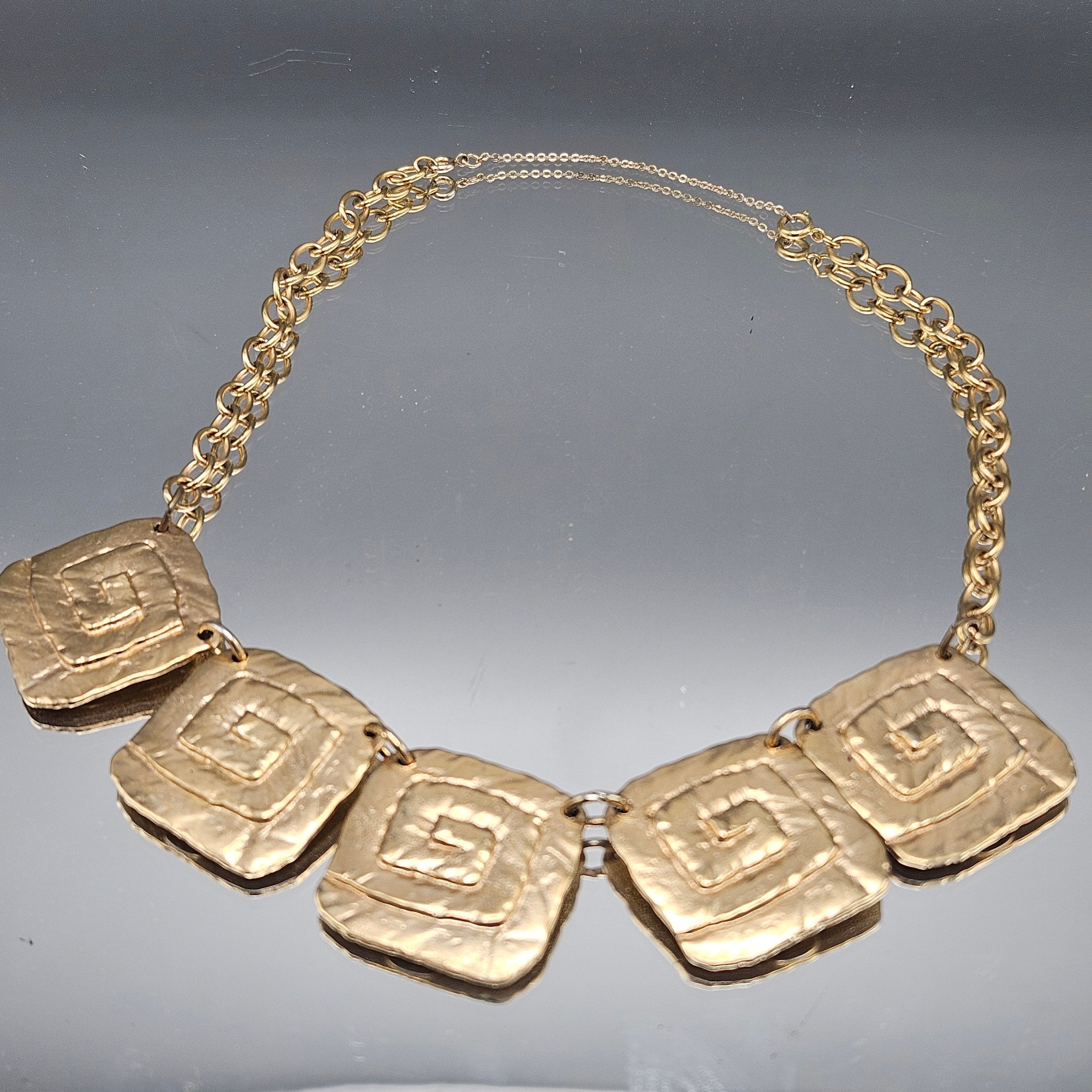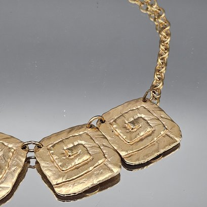 Park Lane Gold Tone Hammered Greek Key Statement Necklace 19"