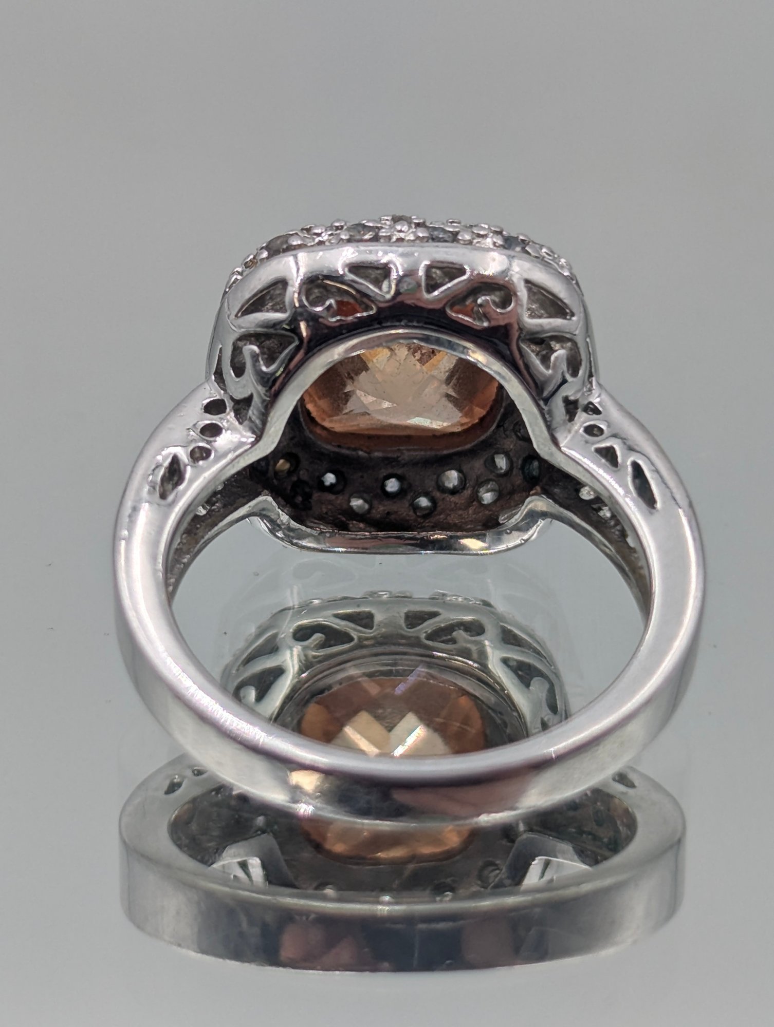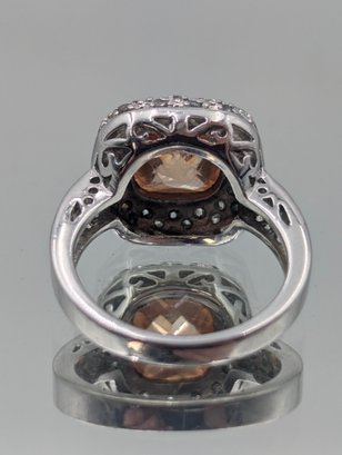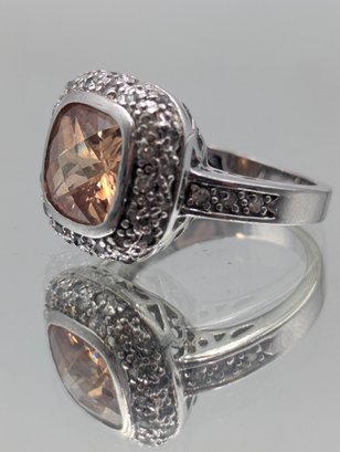 Park Lane Silver Tone Cushion Cut Champagne Stone Halo Ring - Size 8