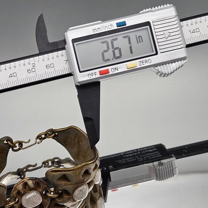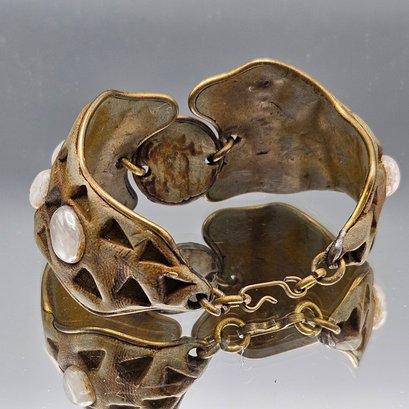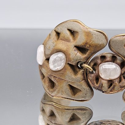 Artisan Geometric Cut-Out Bracelet With Polished White Stones- 2.67"