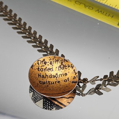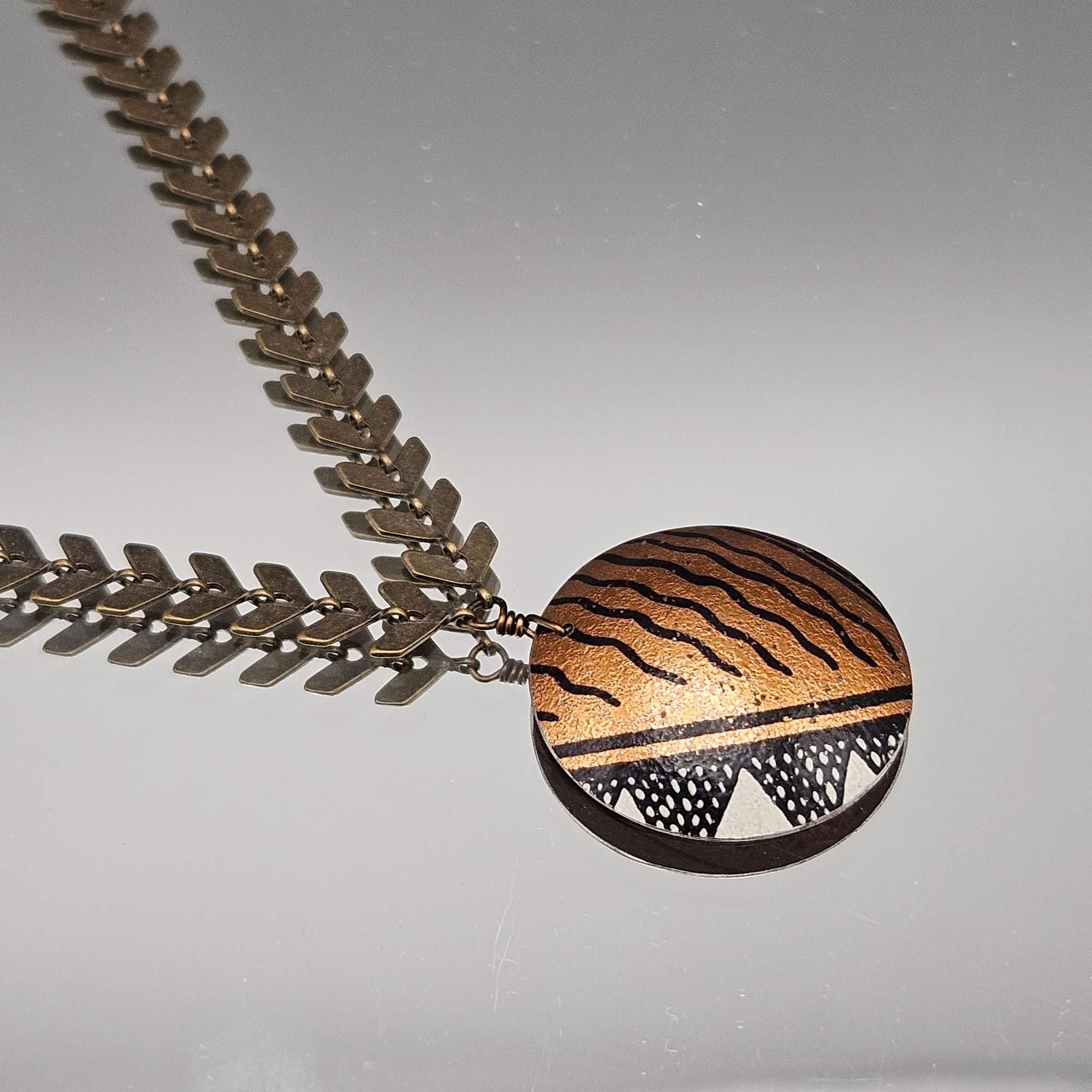 Artisan Mixed Media Necklace With Hand-Painted Disk & Chevron Chain 19"
