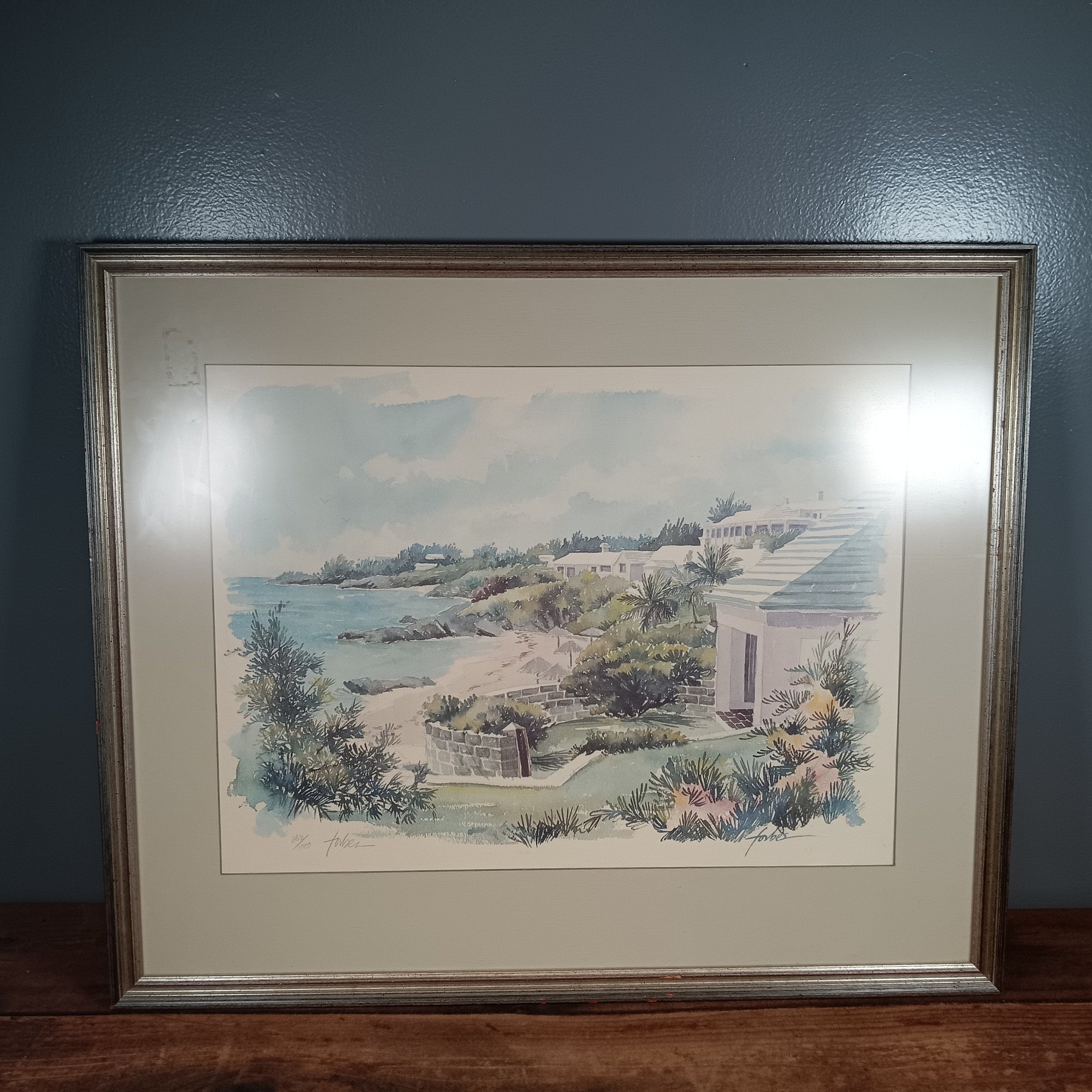 Artist Forbes Signed Ocean View Water Color Print, Framed Matted Costal Vibe
