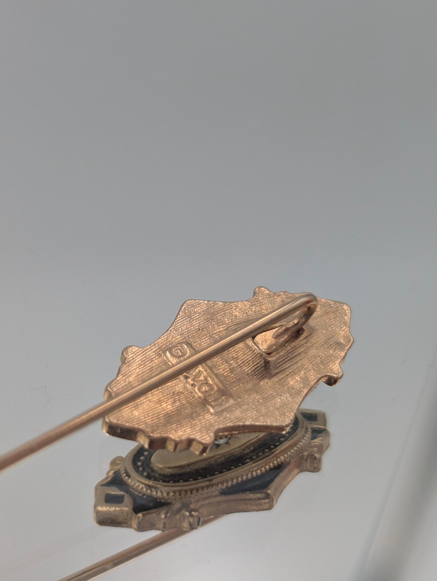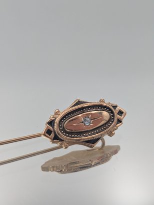 Avon Gold Tone Black Enamel Rhinestone Stick Pin