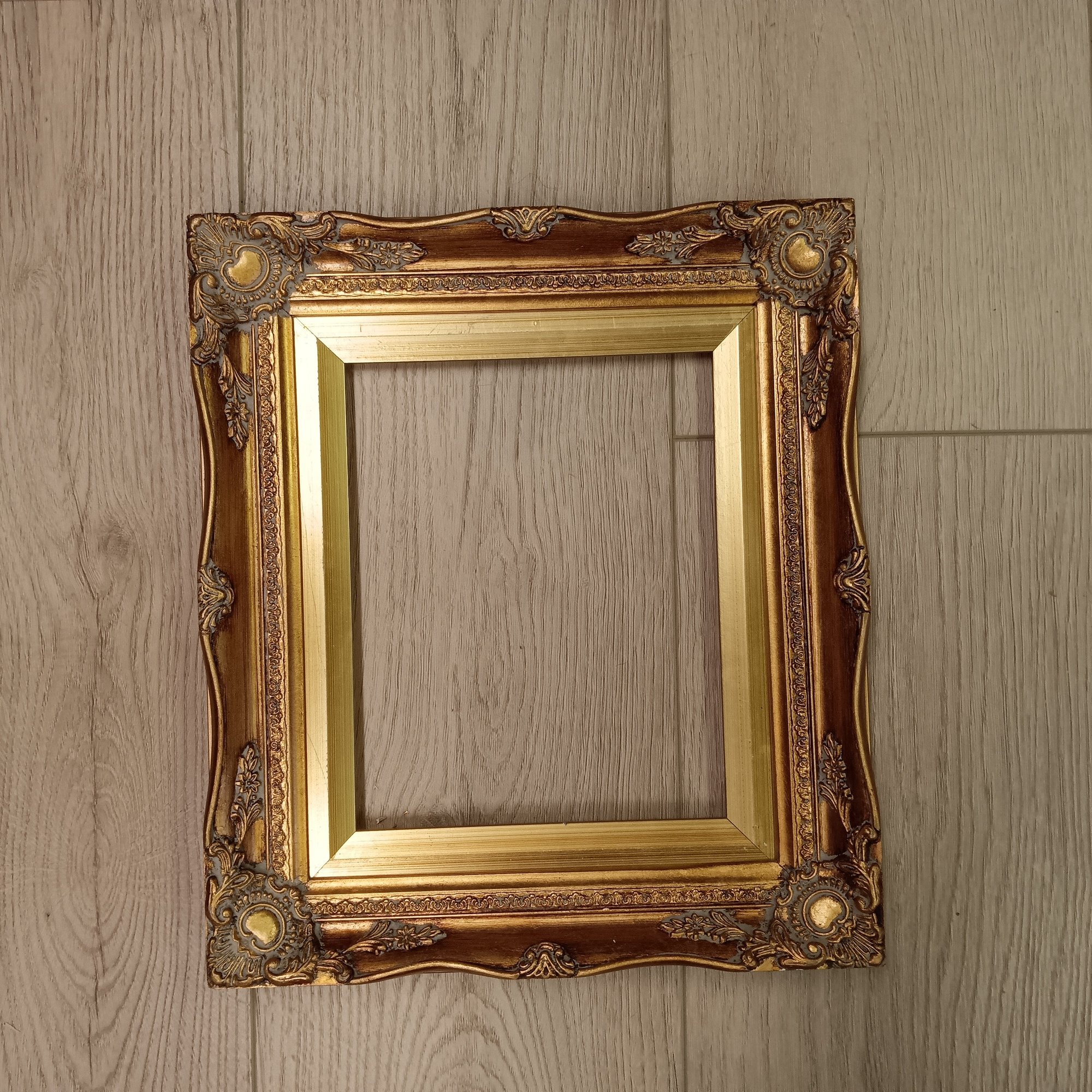 Baroque Picture Frame, Italy, Gold Brown Ornate Wooden Accent