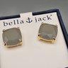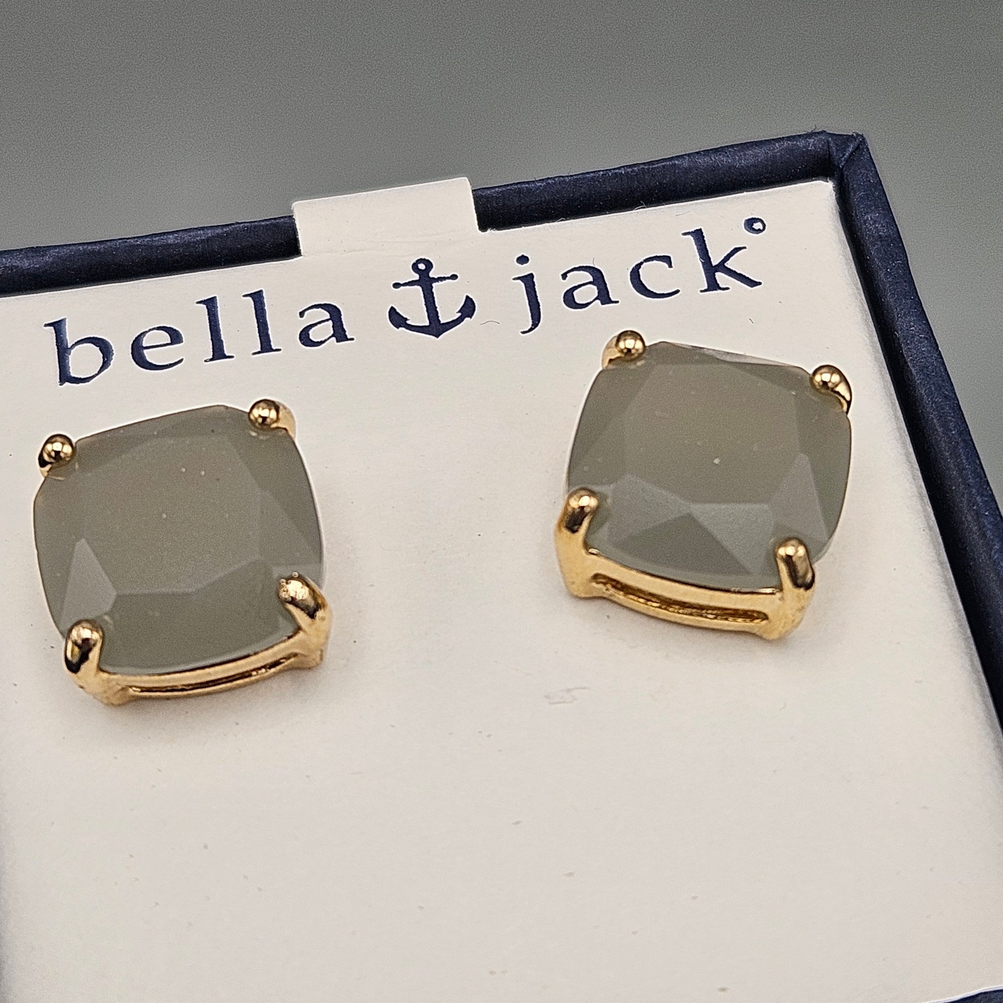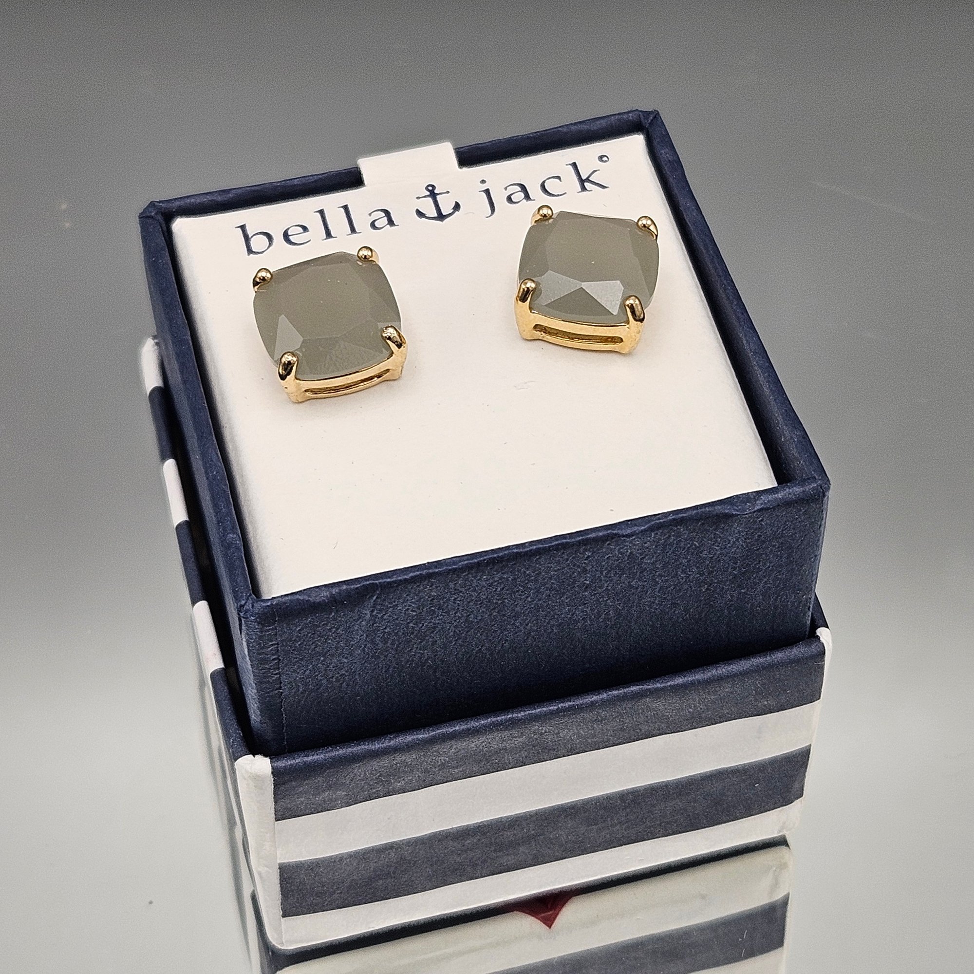 Bella & Jack Grey Faceted Cushion Studs in Gold-Tone Settings