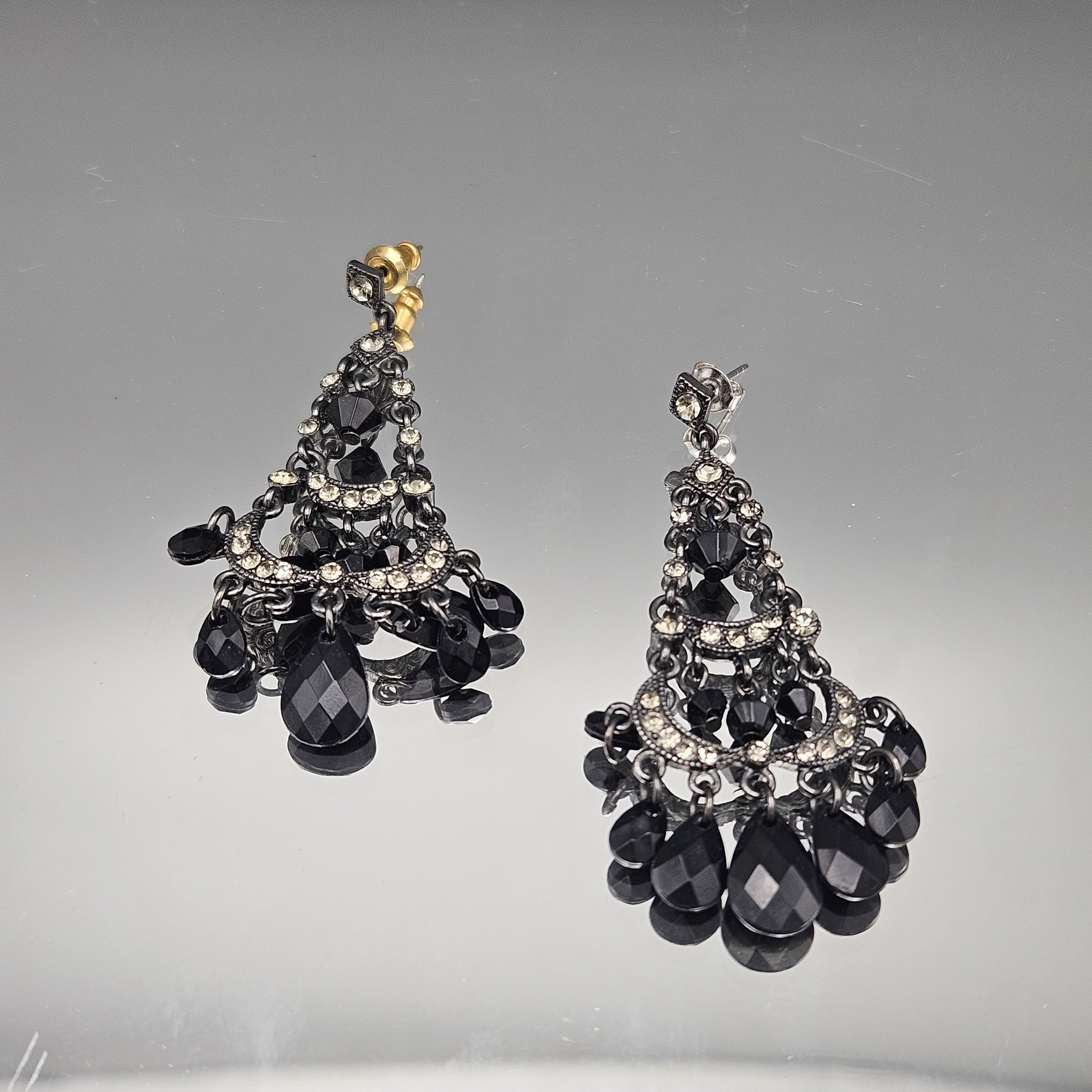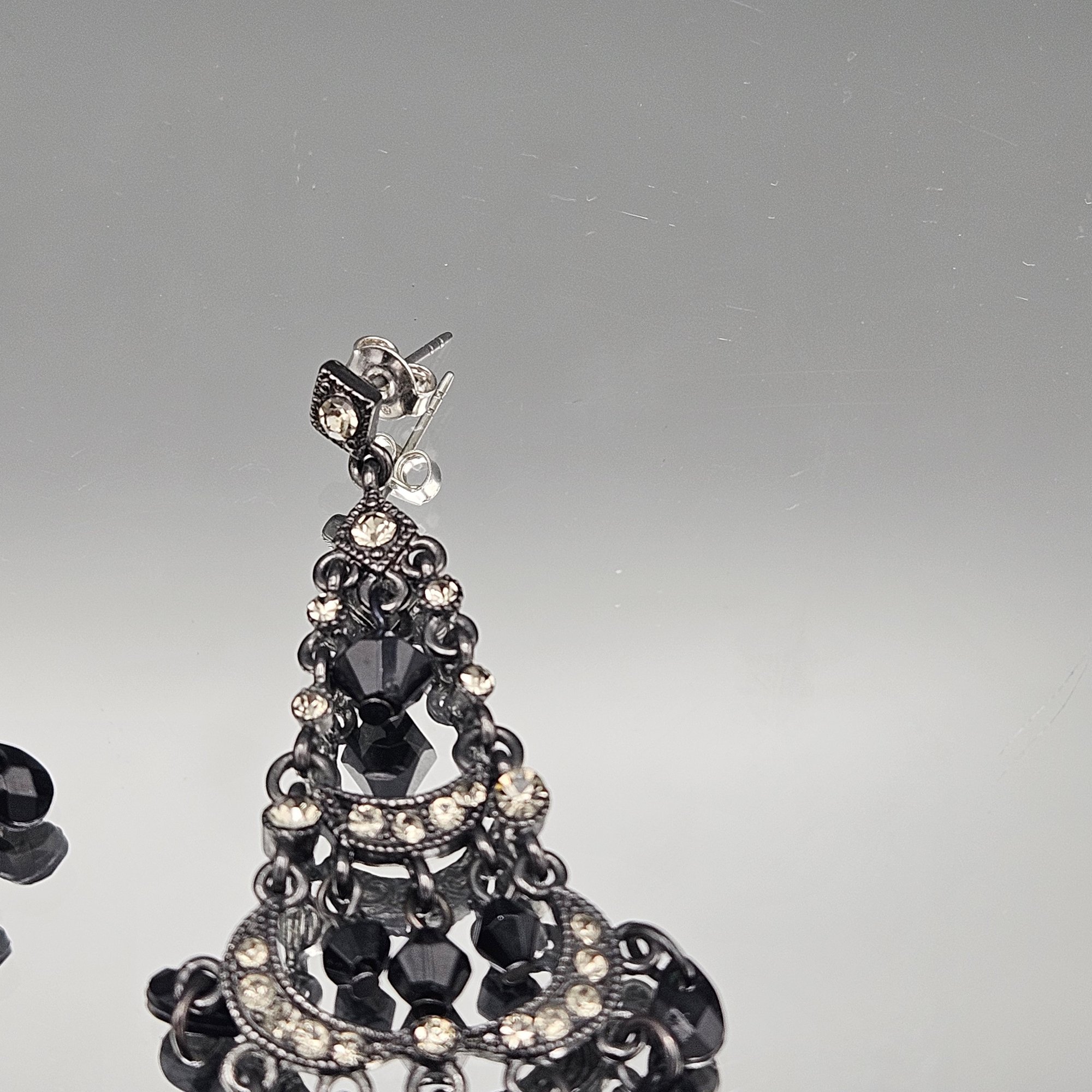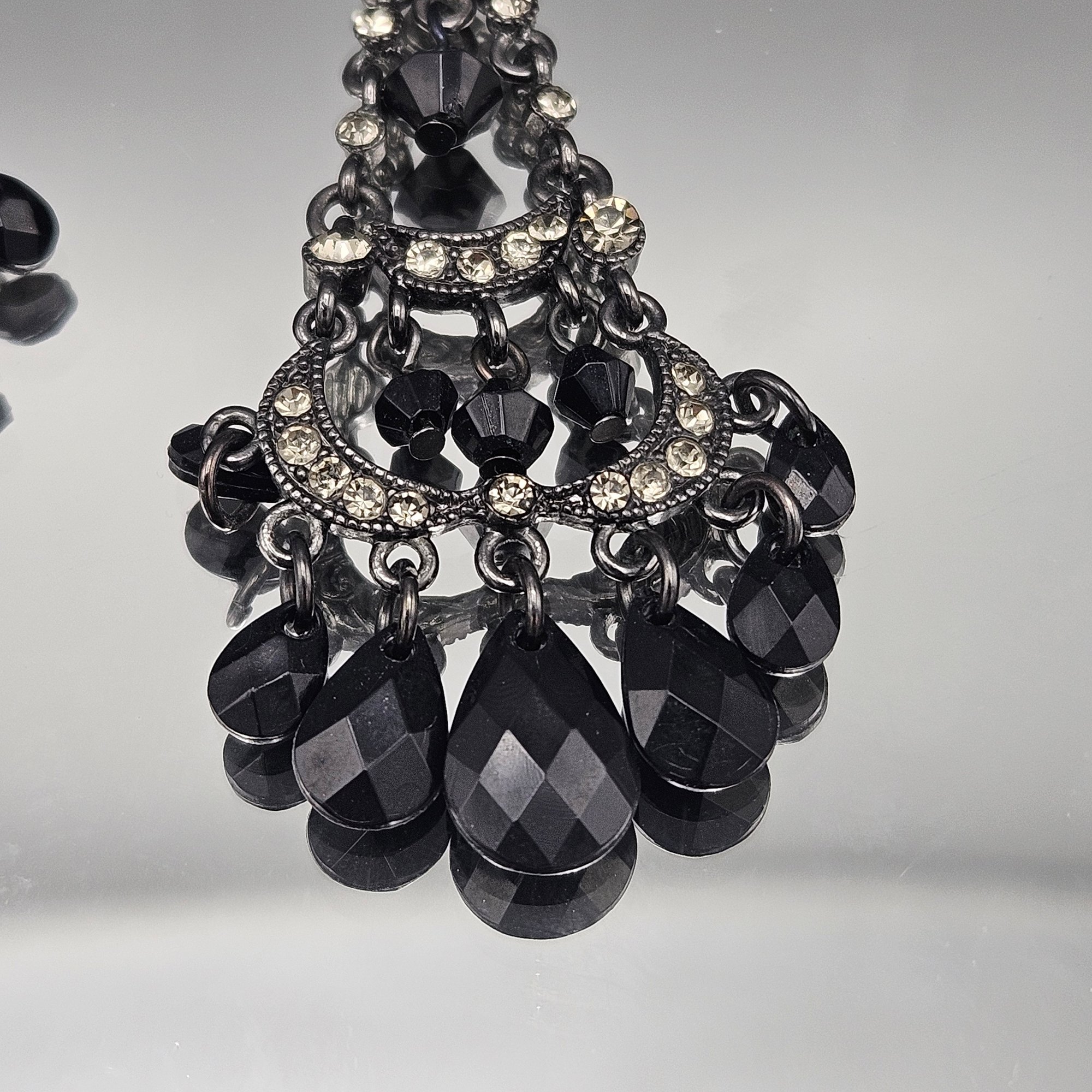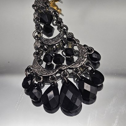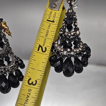 Black Beaded Rhinestone Chandelier Earrings