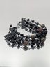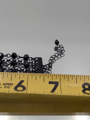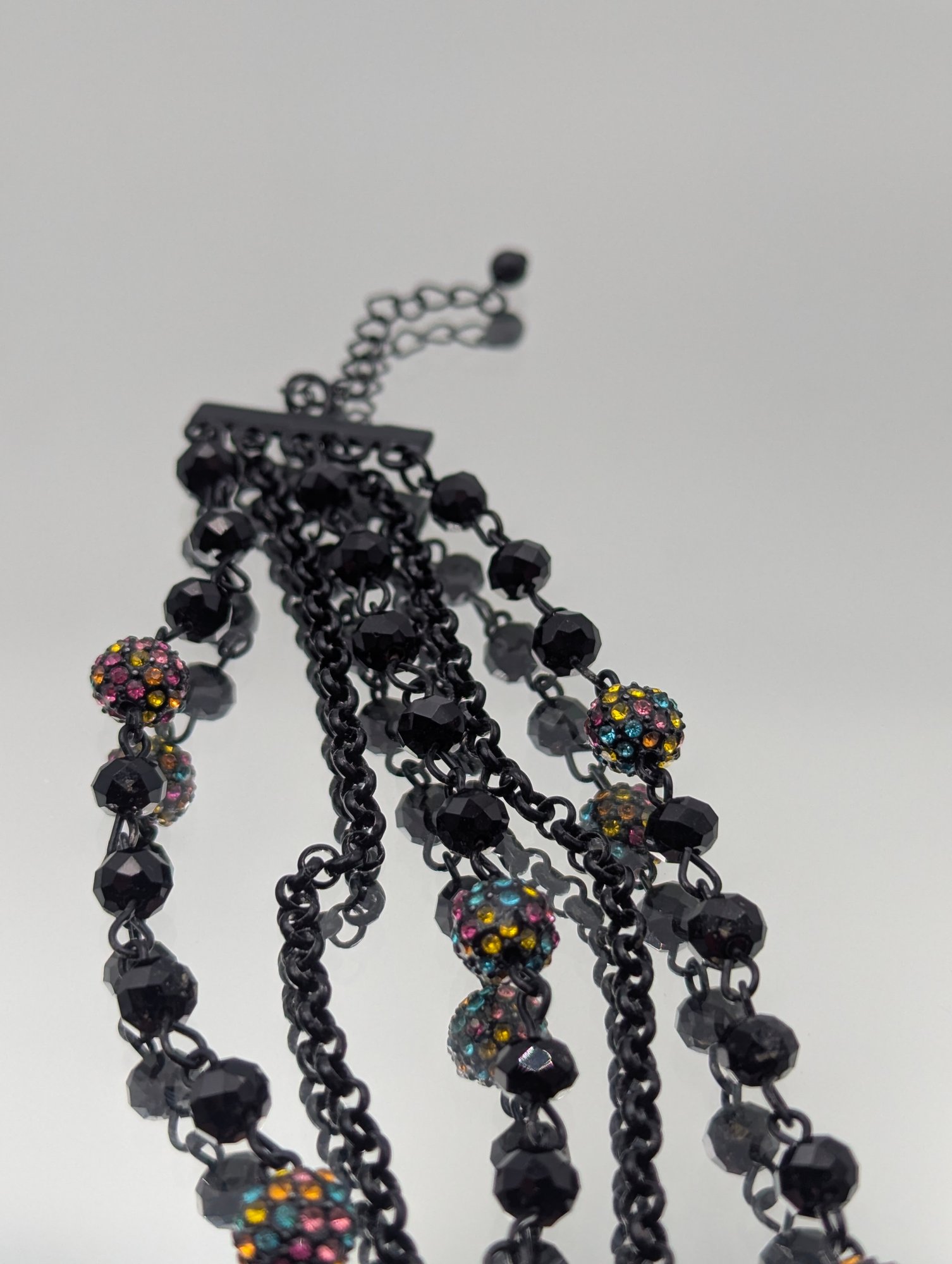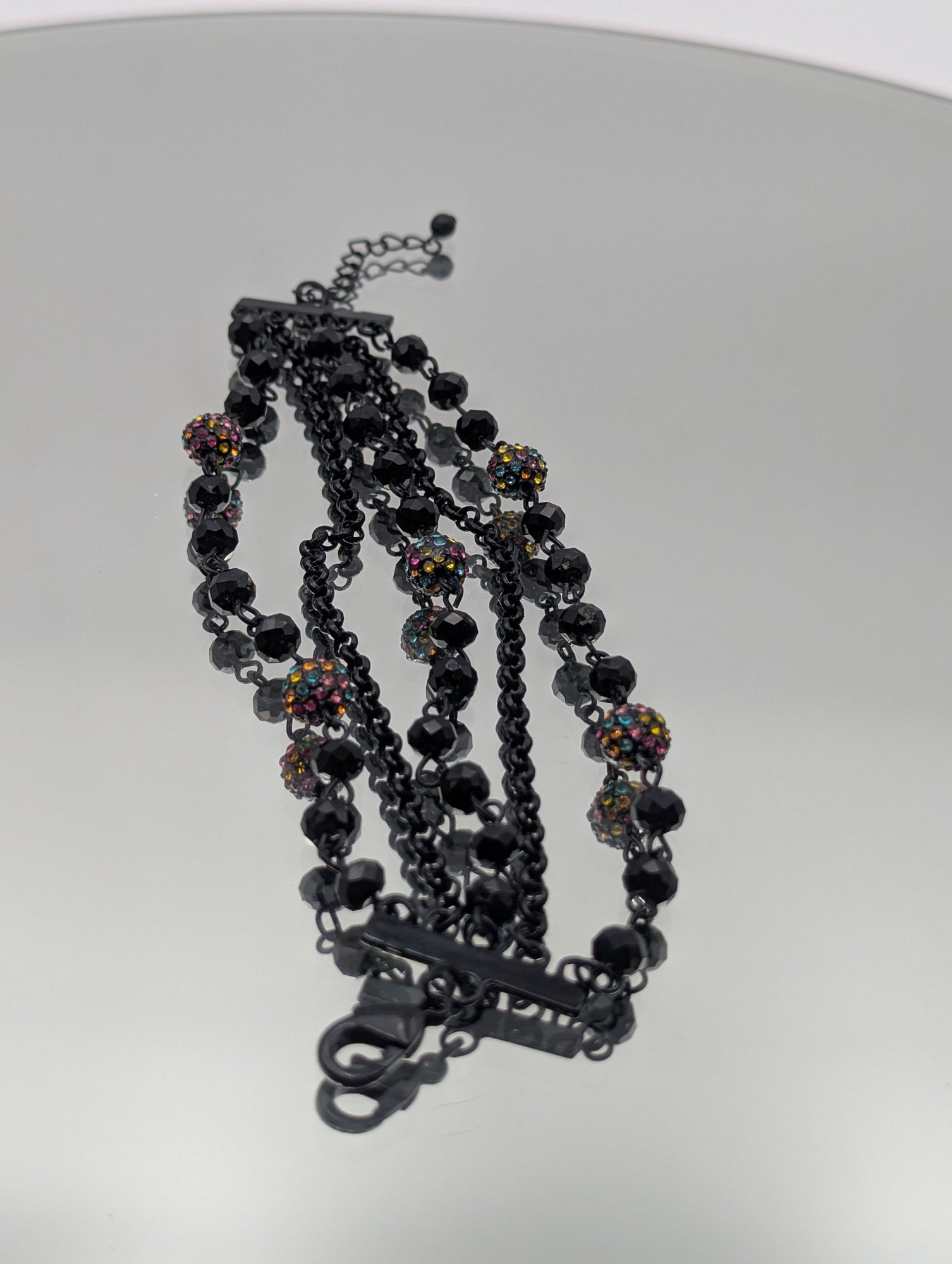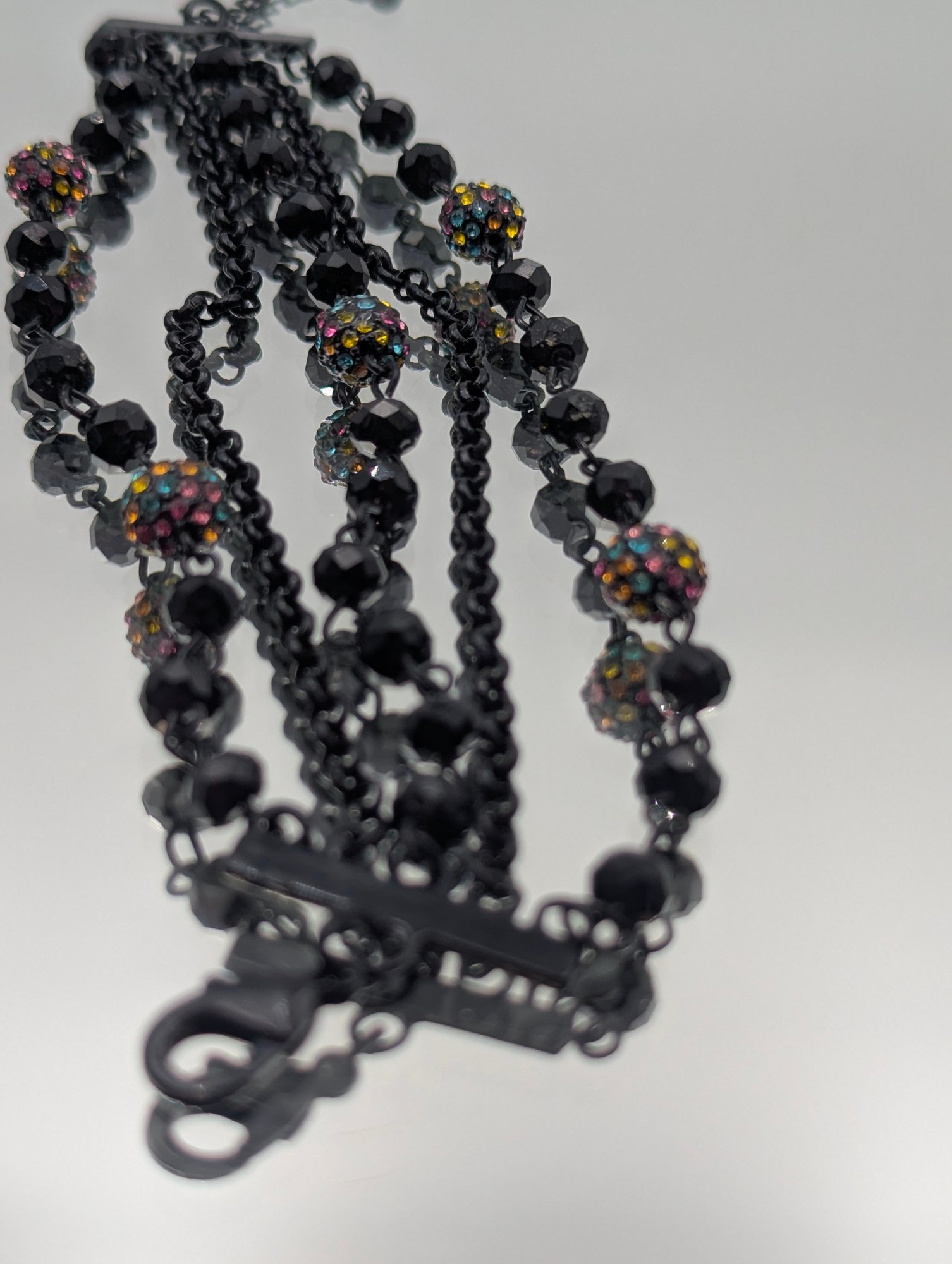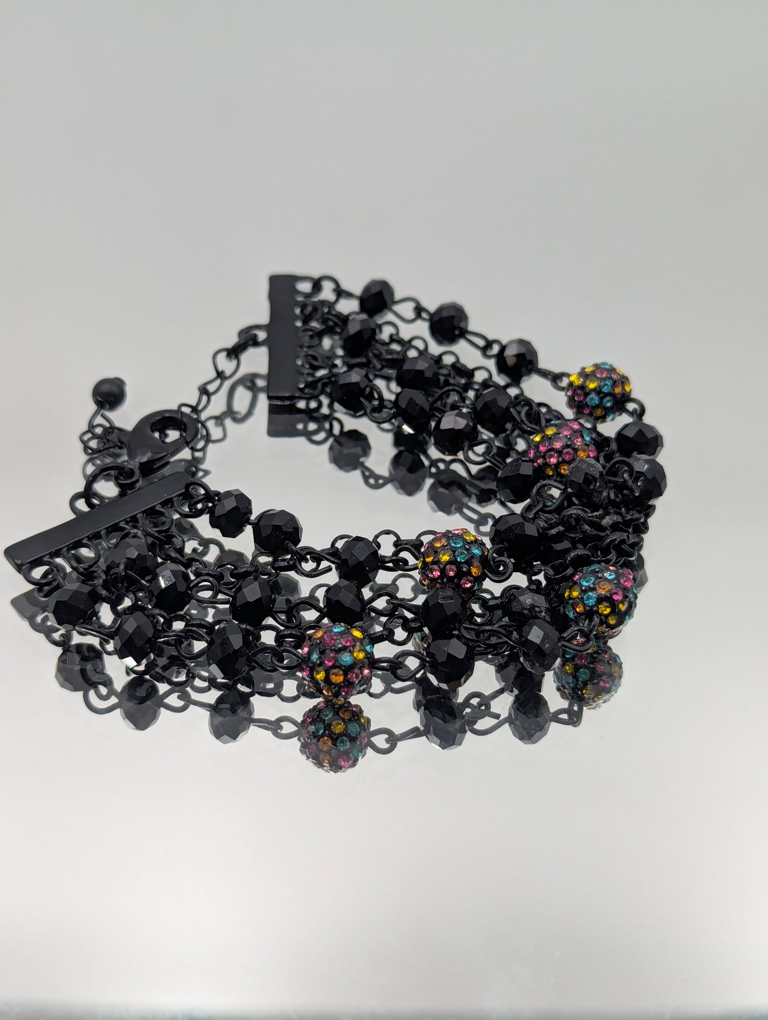 Black Metal Layered Chain Bracelet Multi-Color Rhinestone Bead Statement