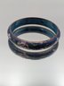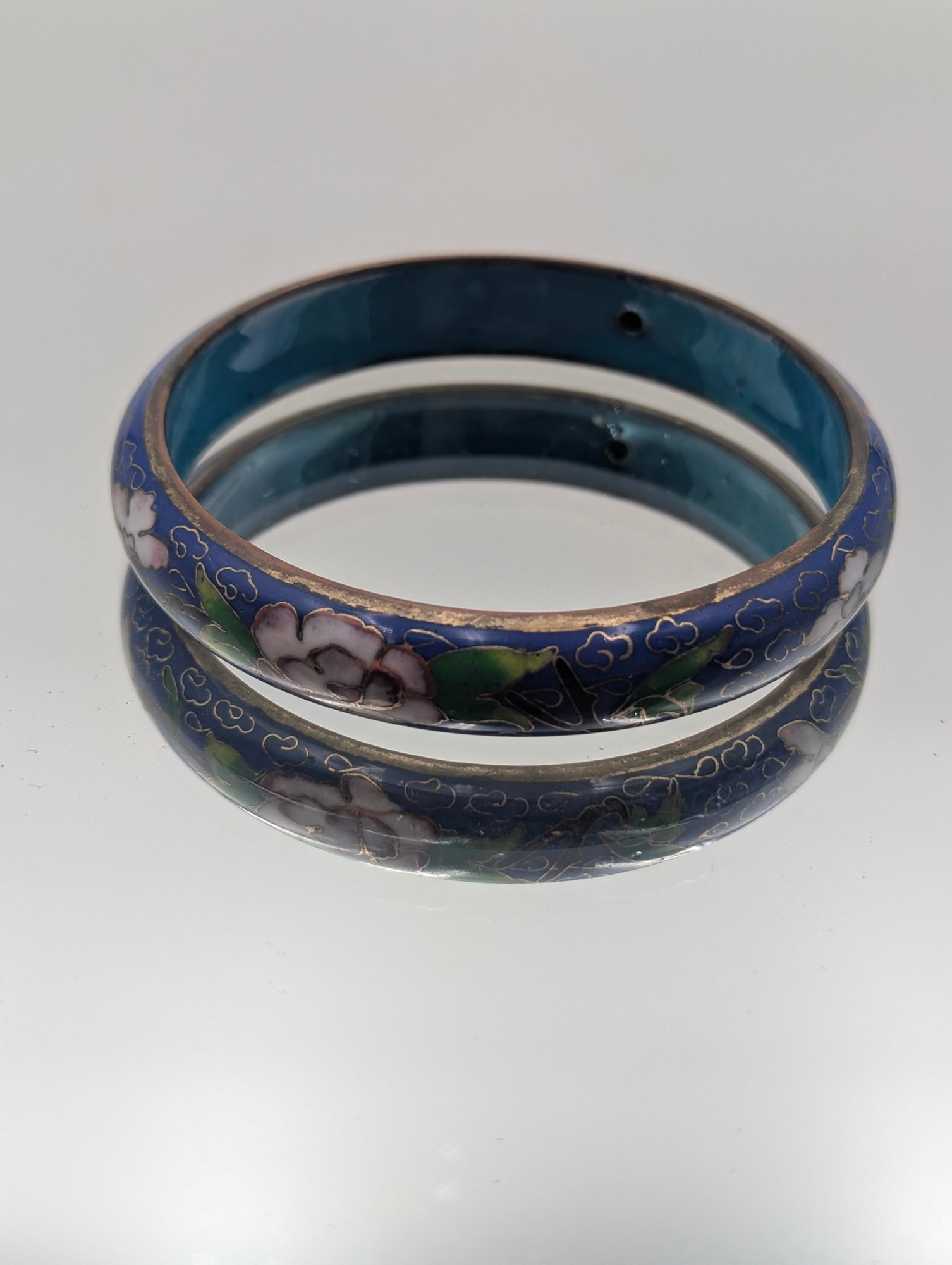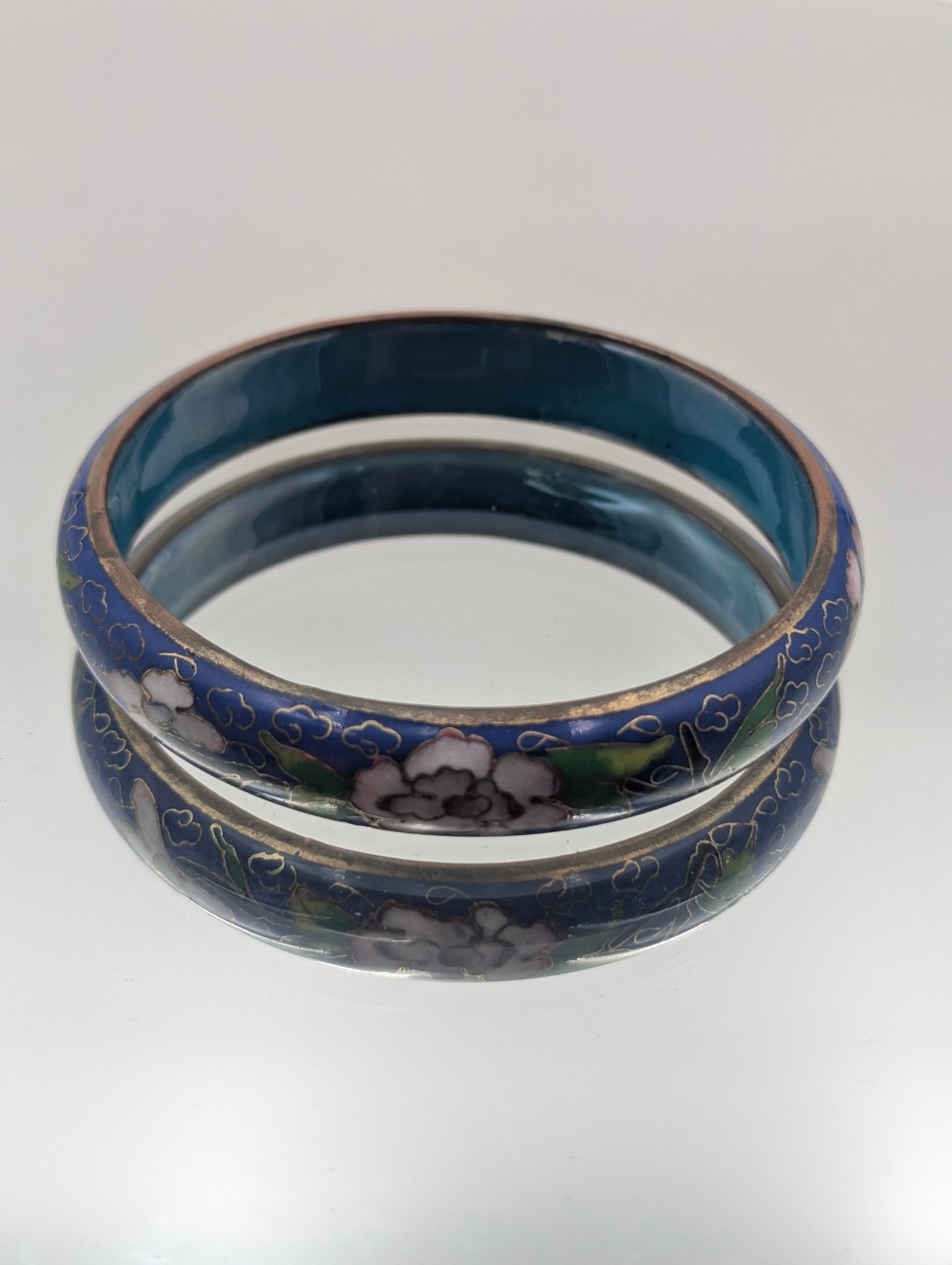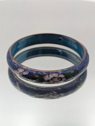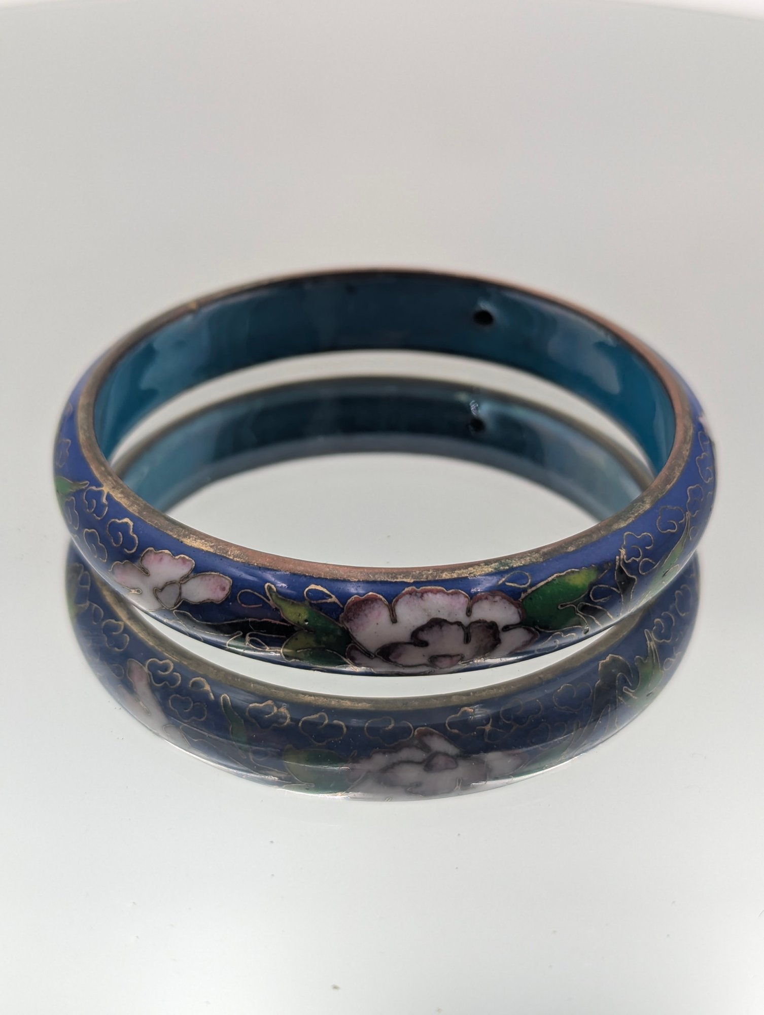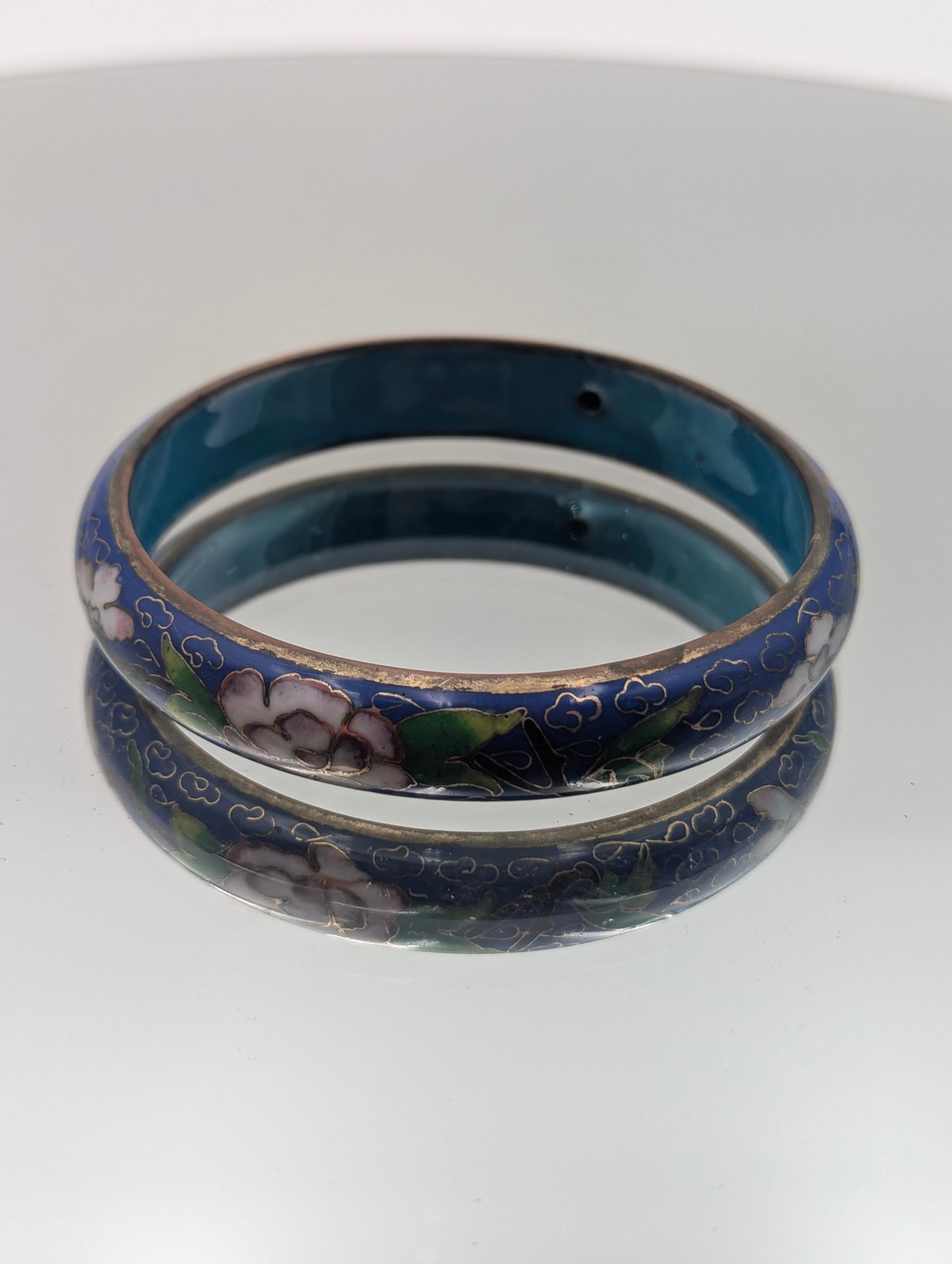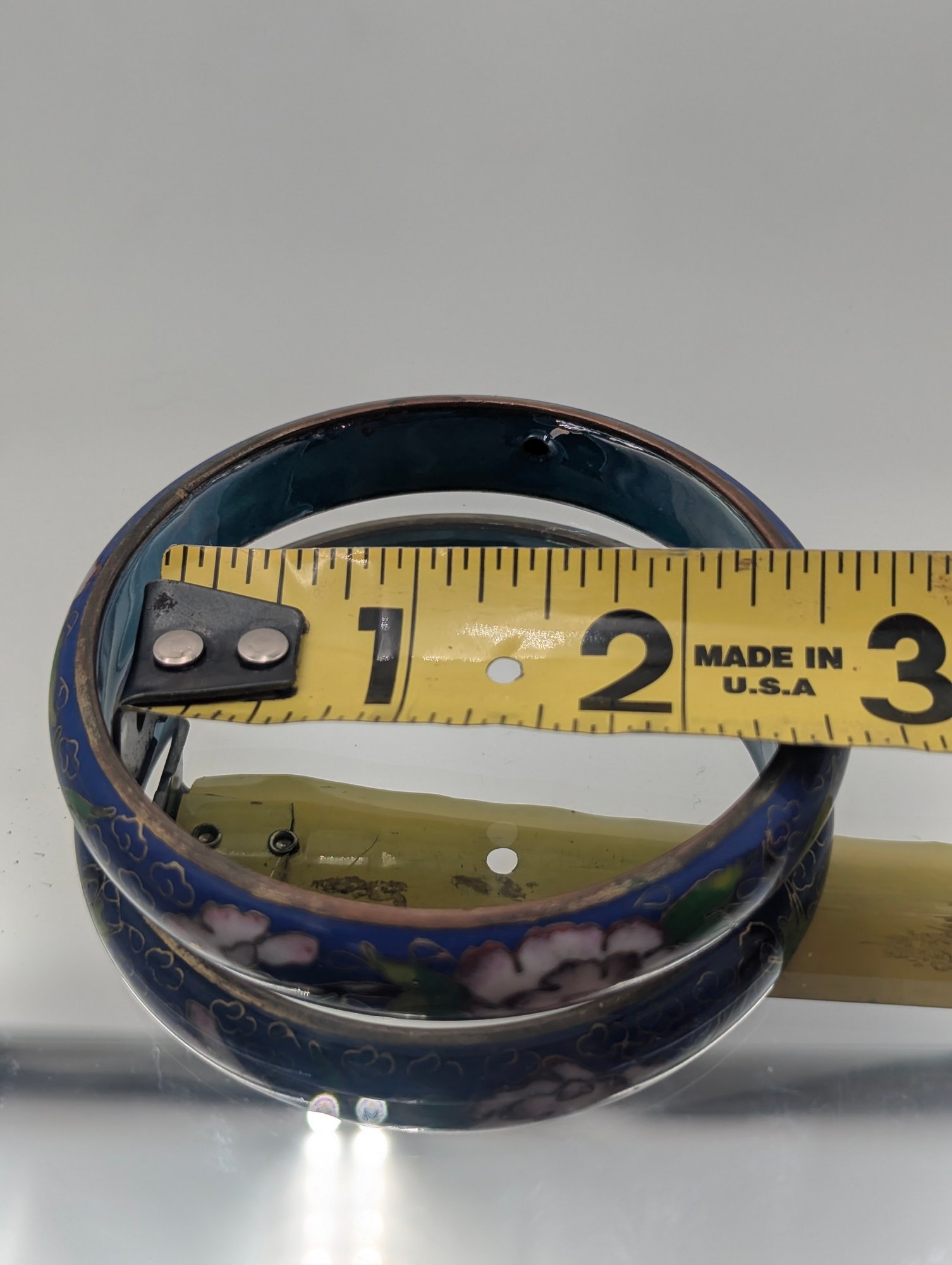 Blue Cloisonn Floral Bangle Bracelet Brass Tone