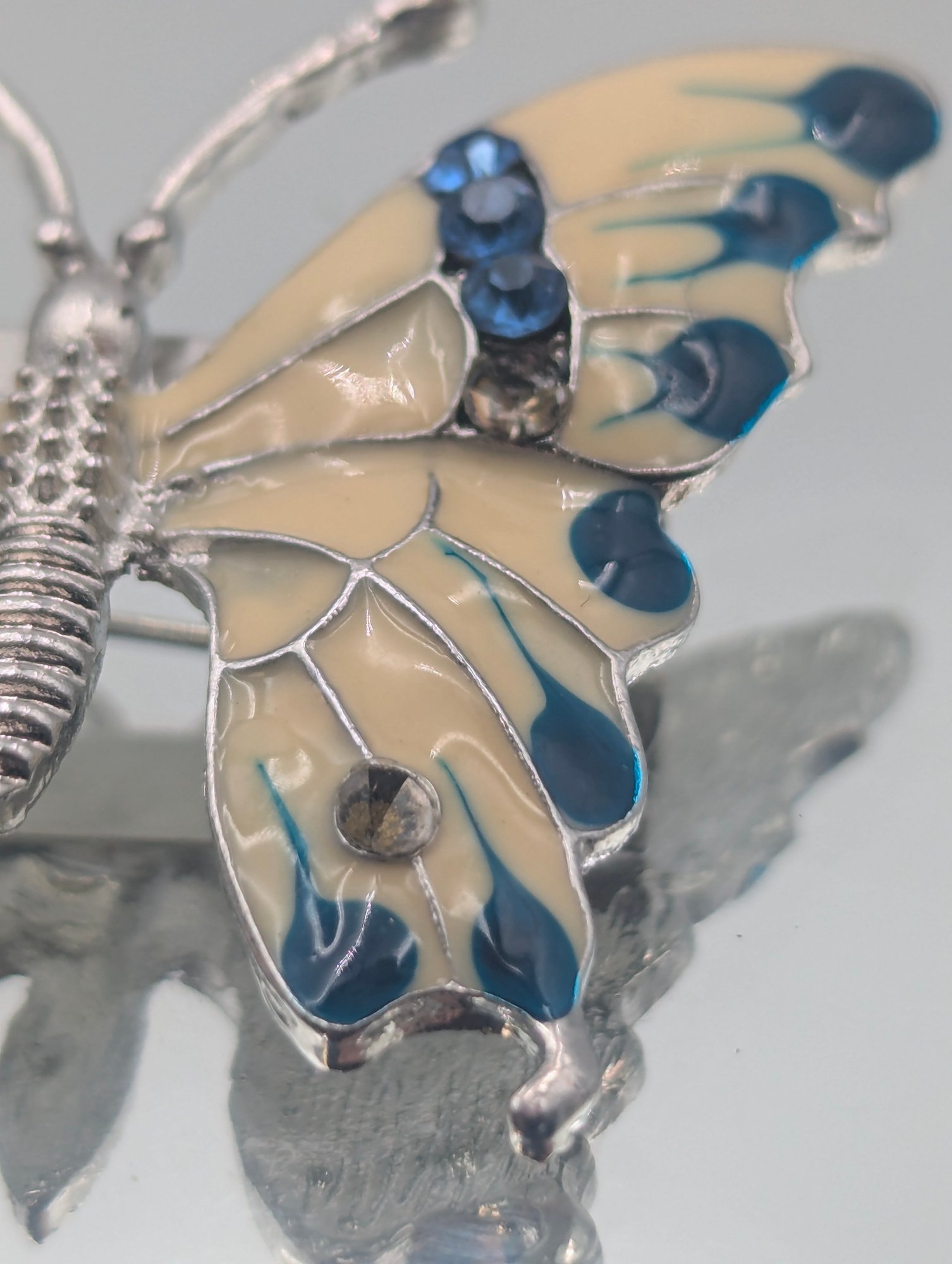 Blue & Cream Enamel Butterfly Brooch