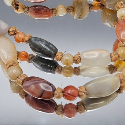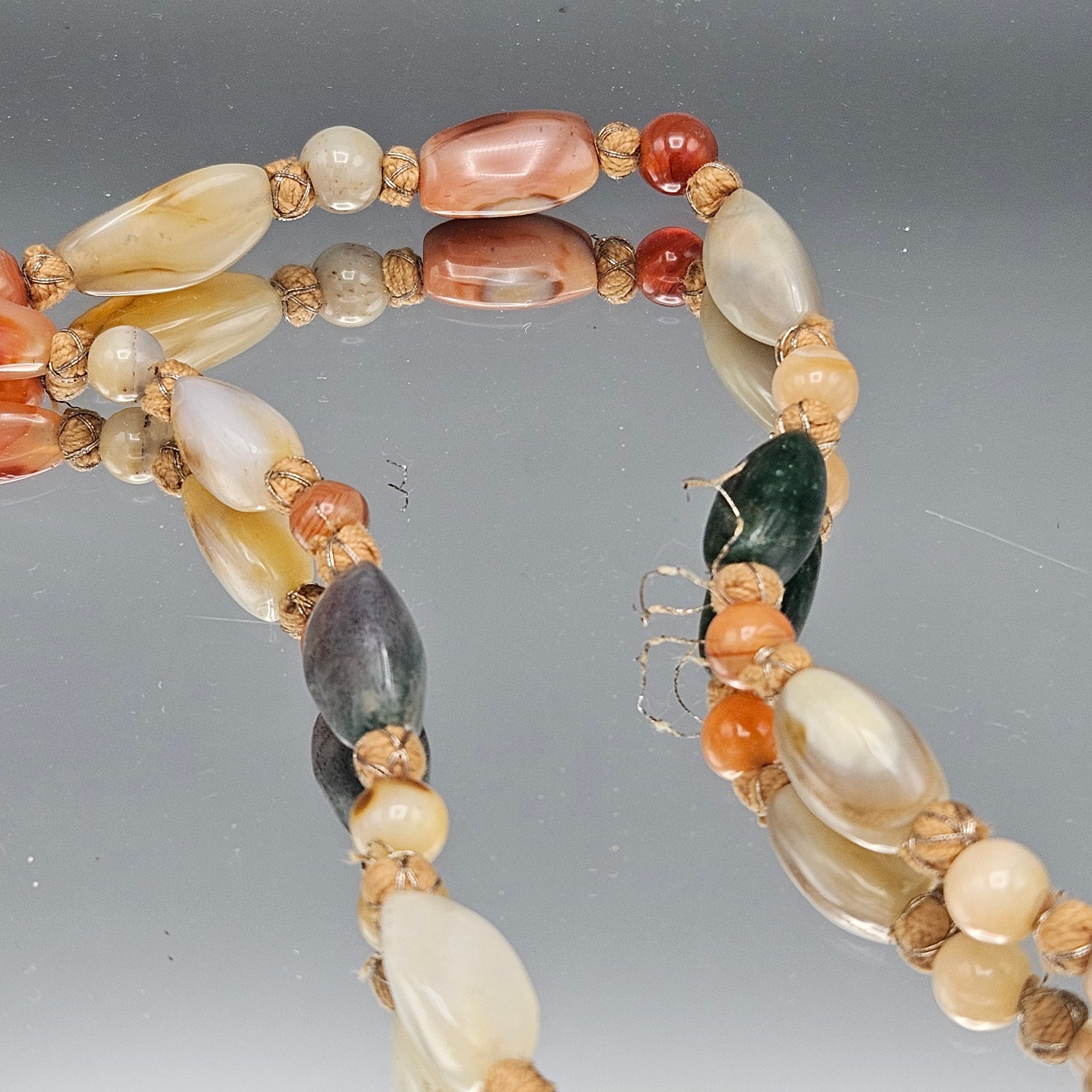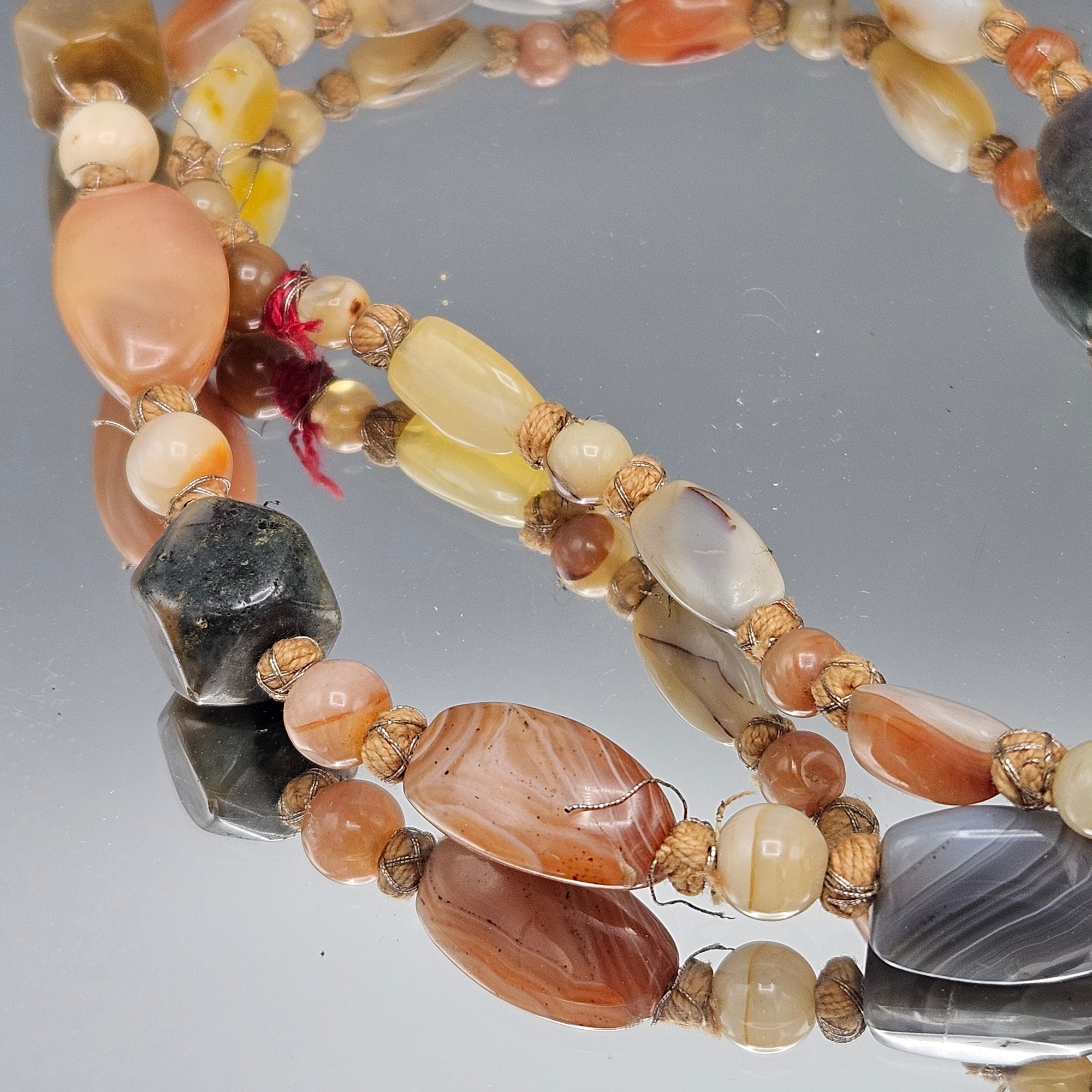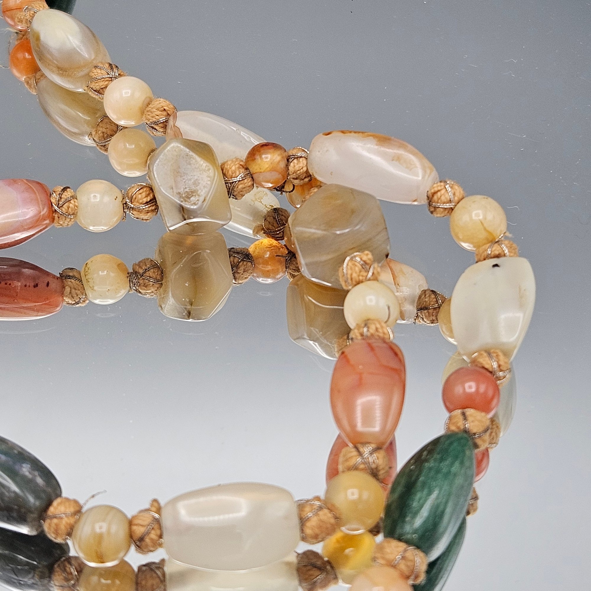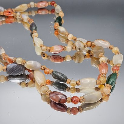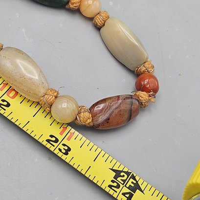 Bohemian Hand-Knotted Mixed Agate & Stone Statement Necklace 23"