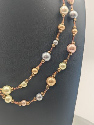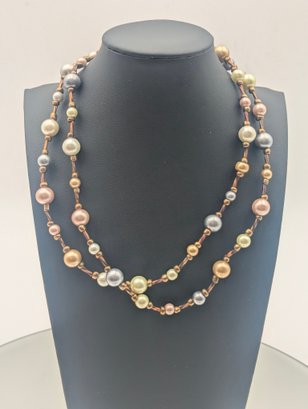 Boho Chic Satin Finish Pearl Long Strand Necklace