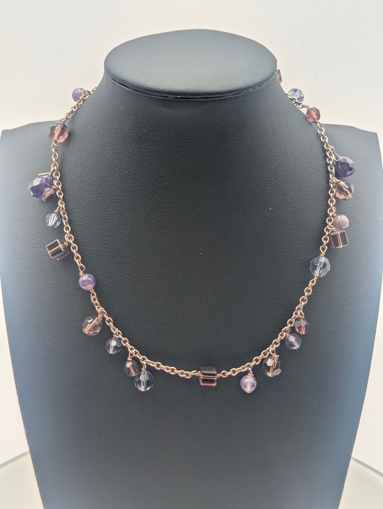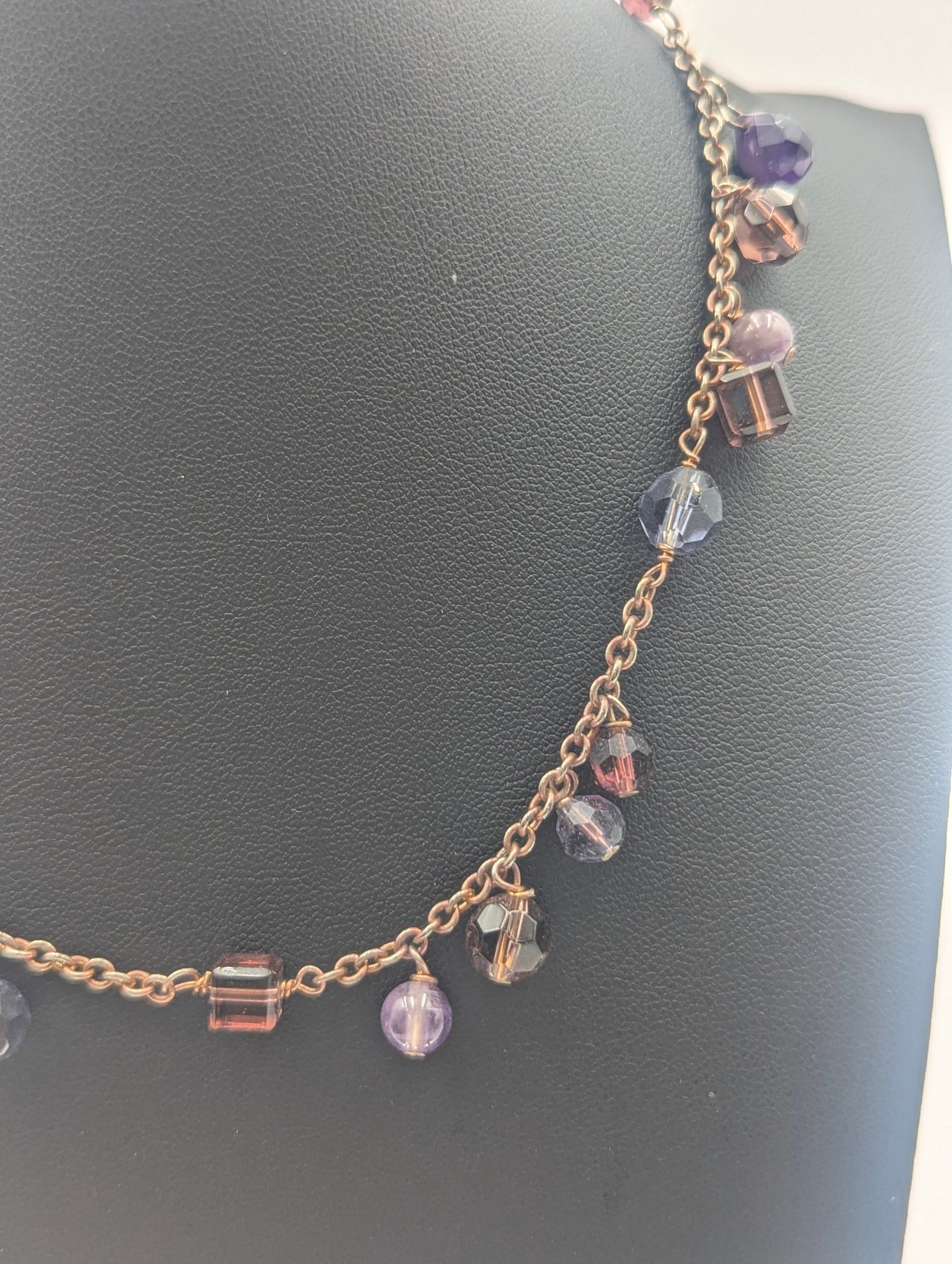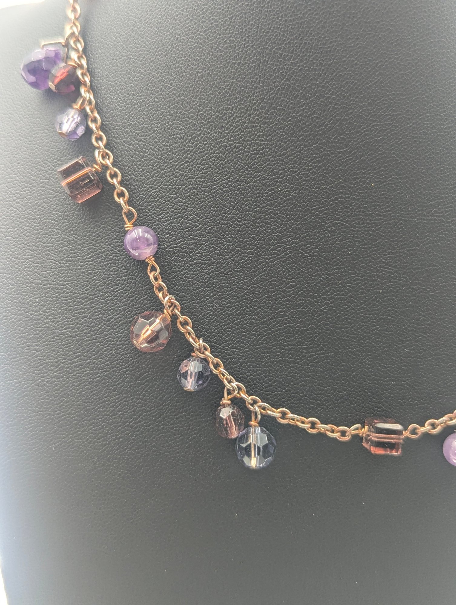 Boho Multi-Shape Purple Beaded Fringe Necklace
