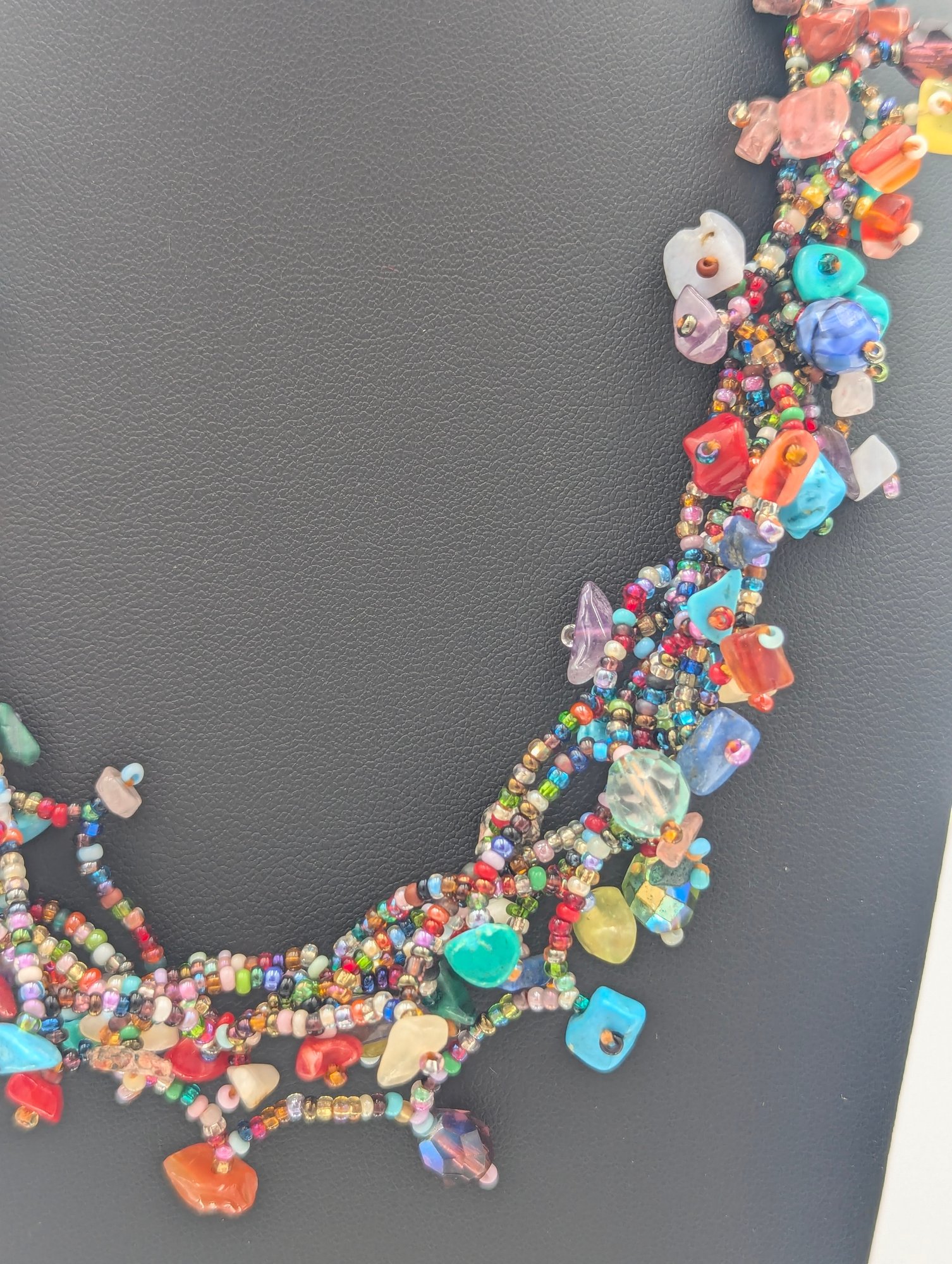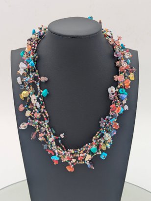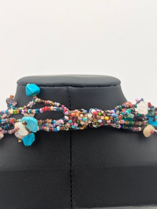 Boho Multi Strand Beaded Statement Necklace Colorful Chips