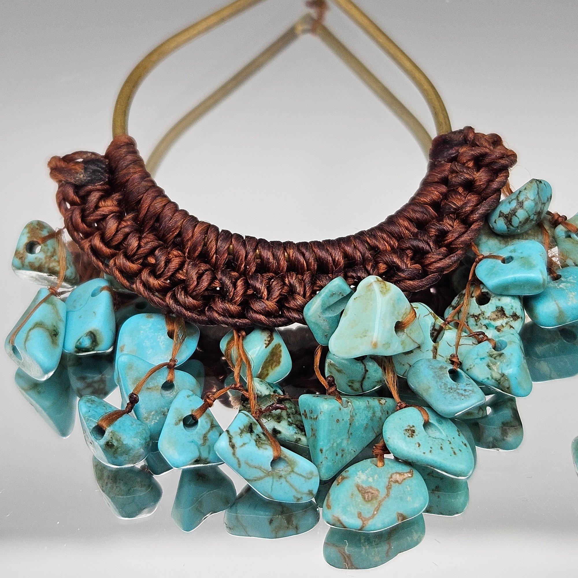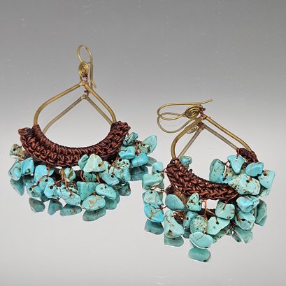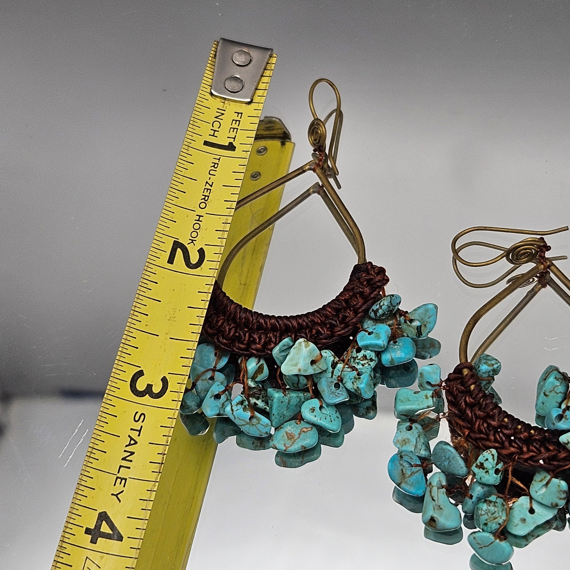 Boho Turquoise Nugget Macrame Hoops Artisan Statement Earrings
