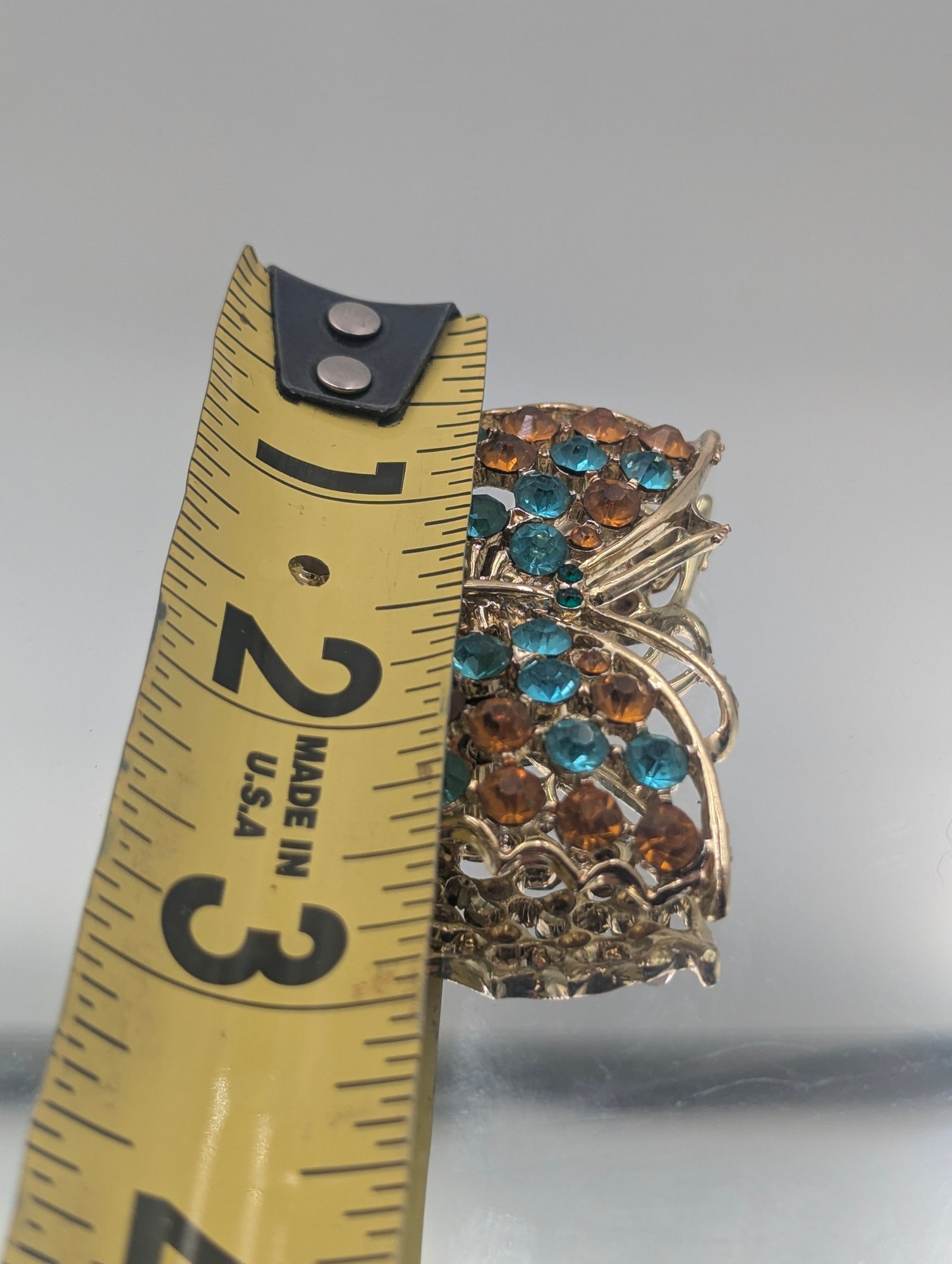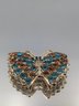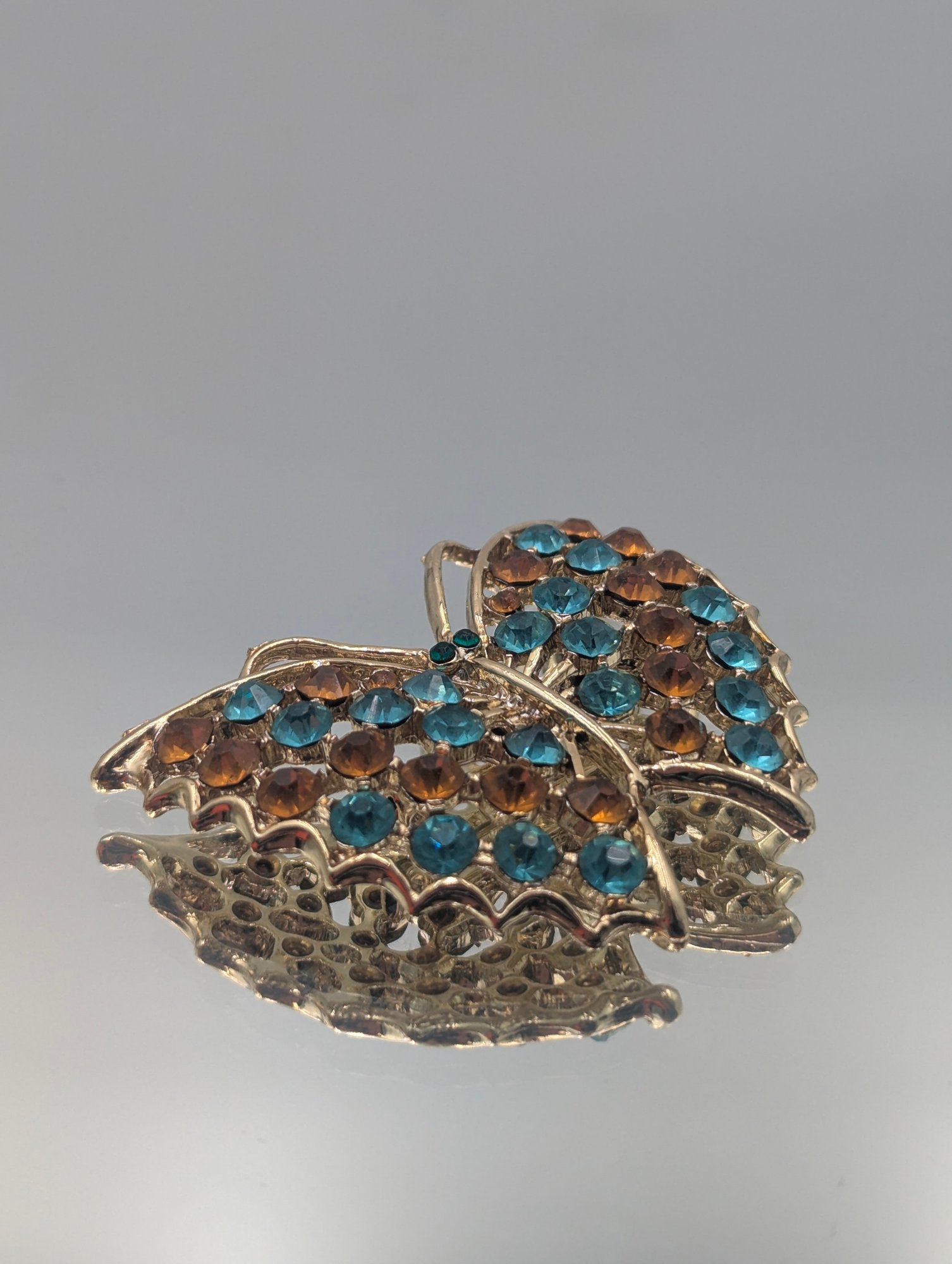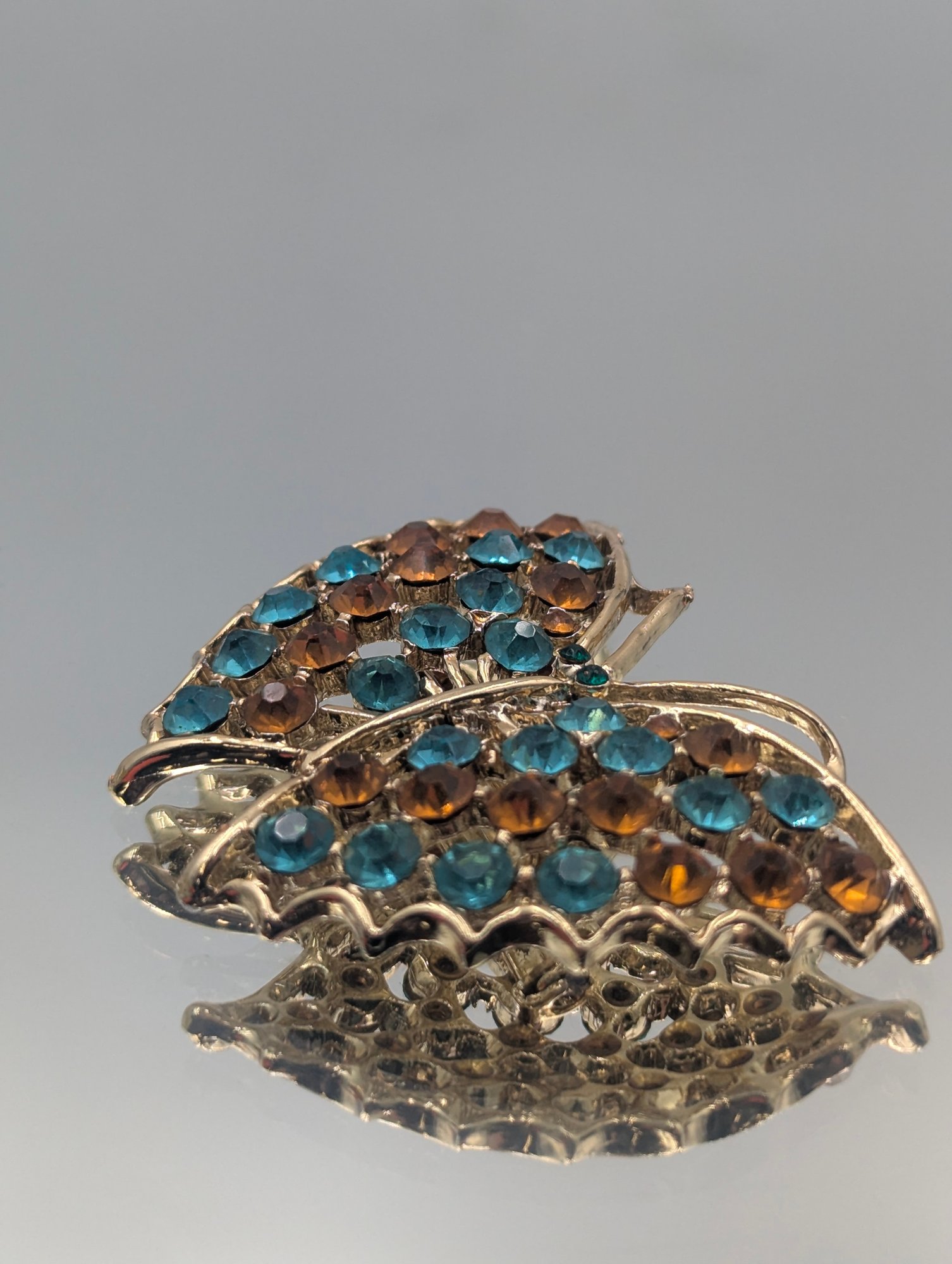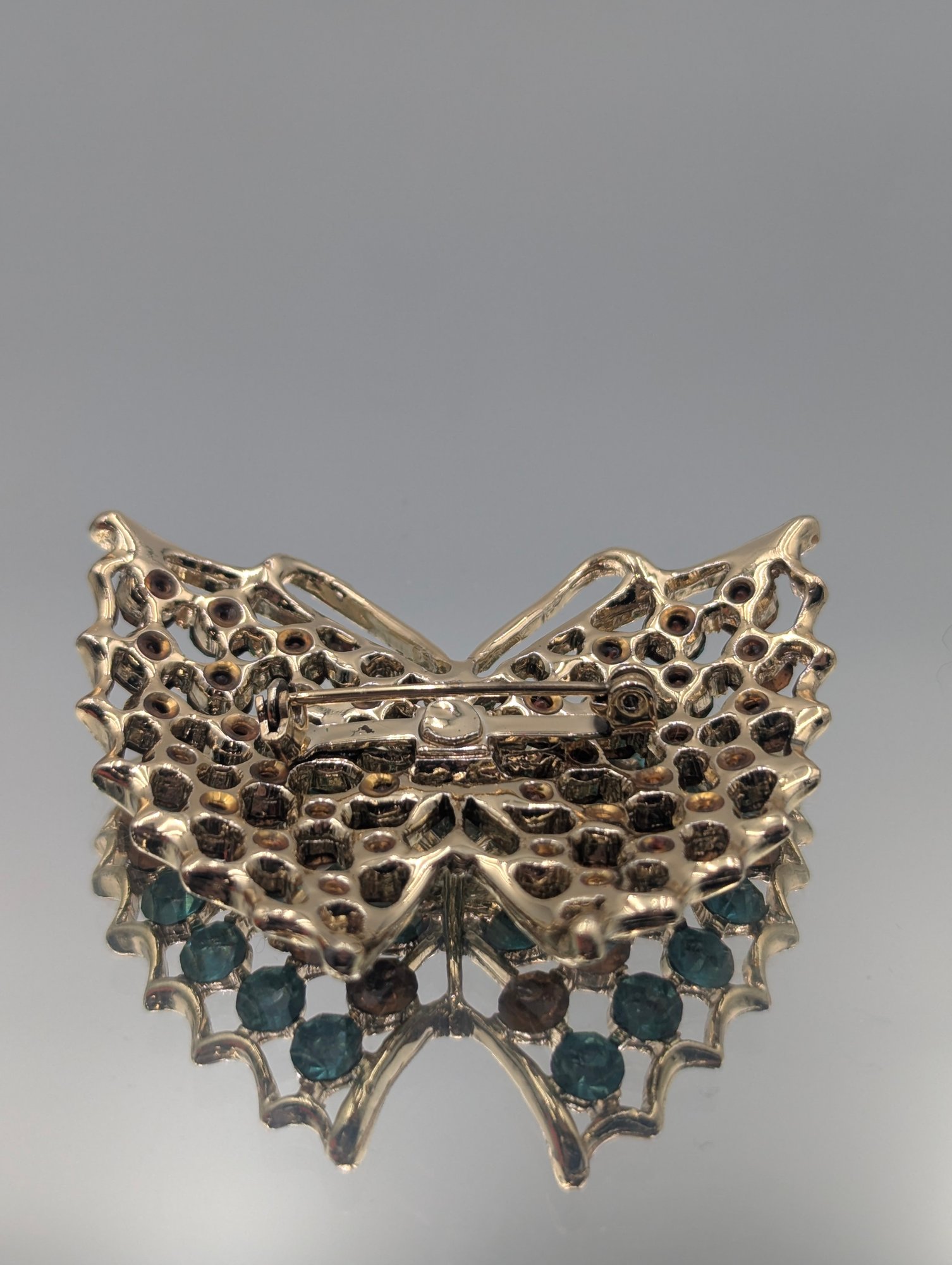 Butterfly Brooch With Blue & Amber Rhinestones
