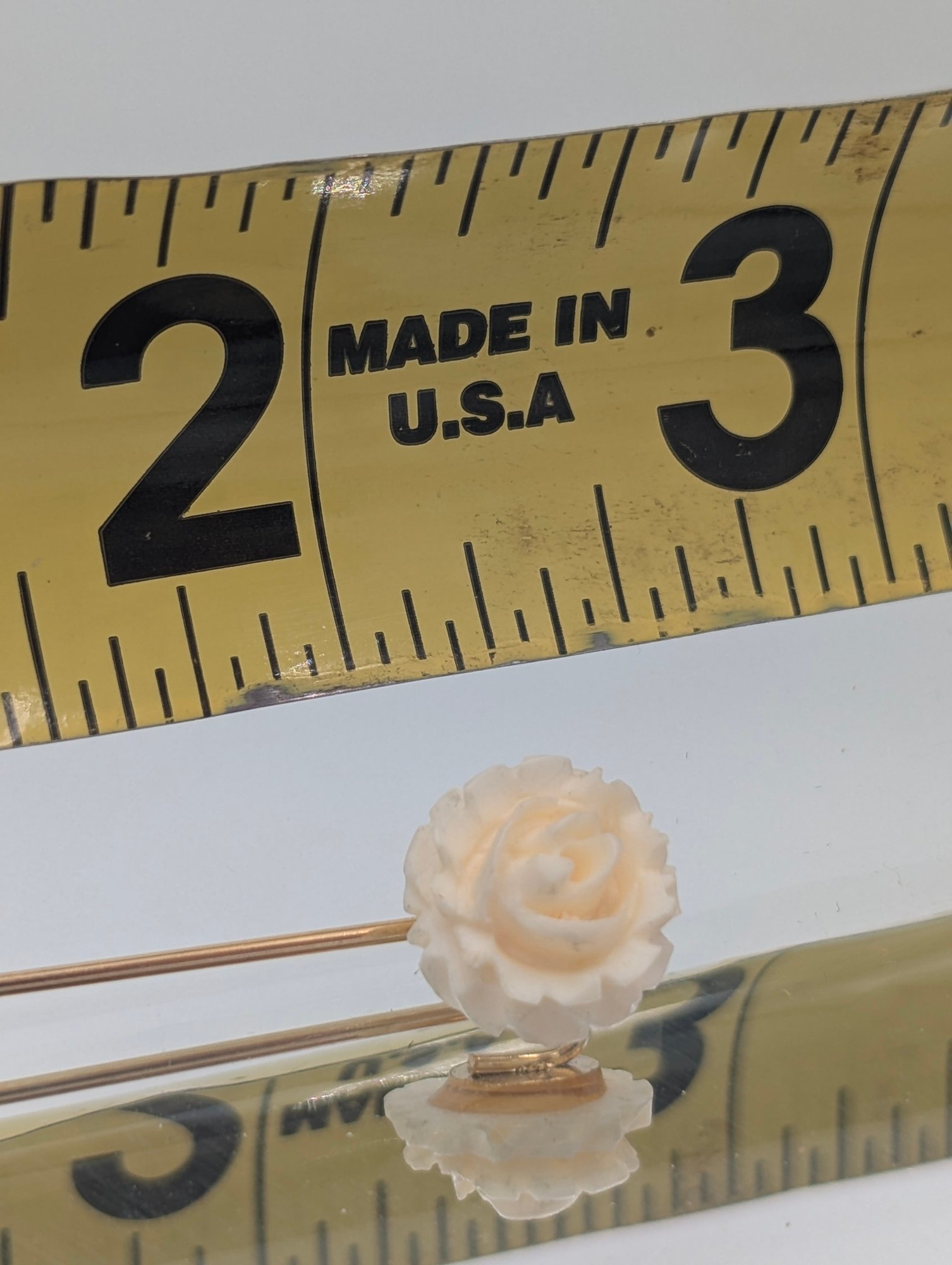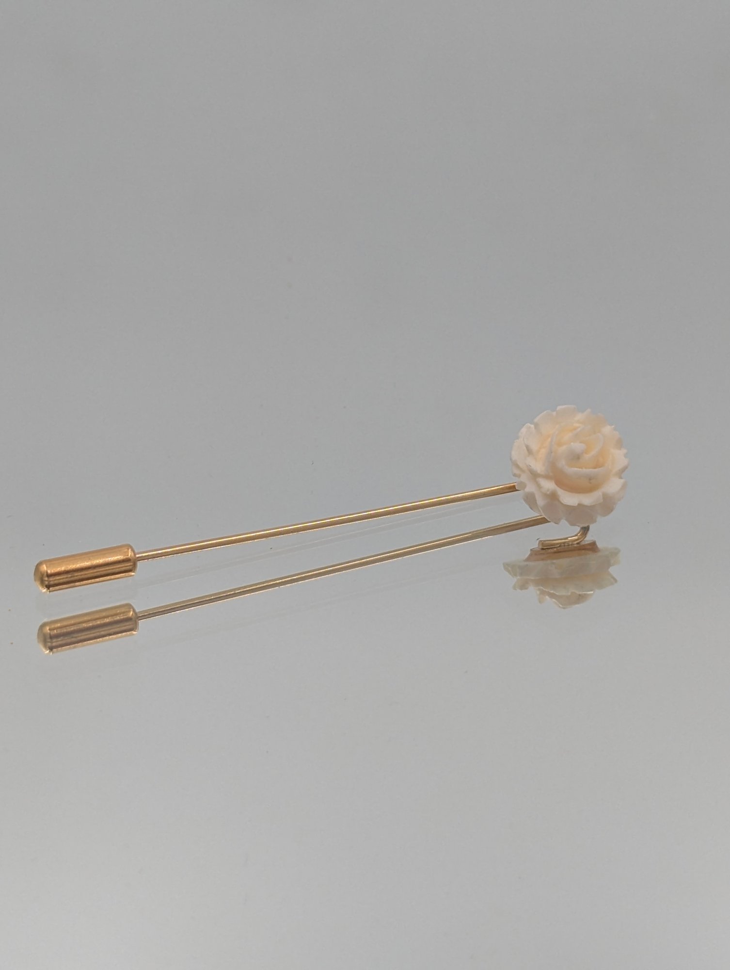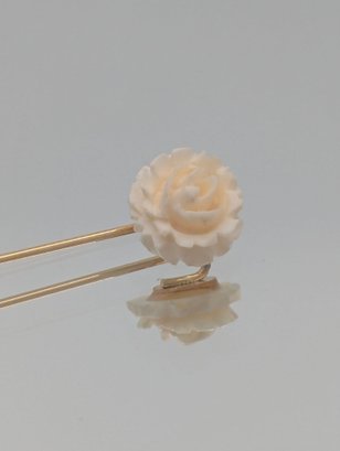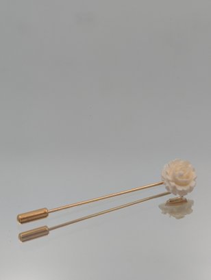 Carved Rose Stick Pin Ivory Color Floral Lapel Hat Pin