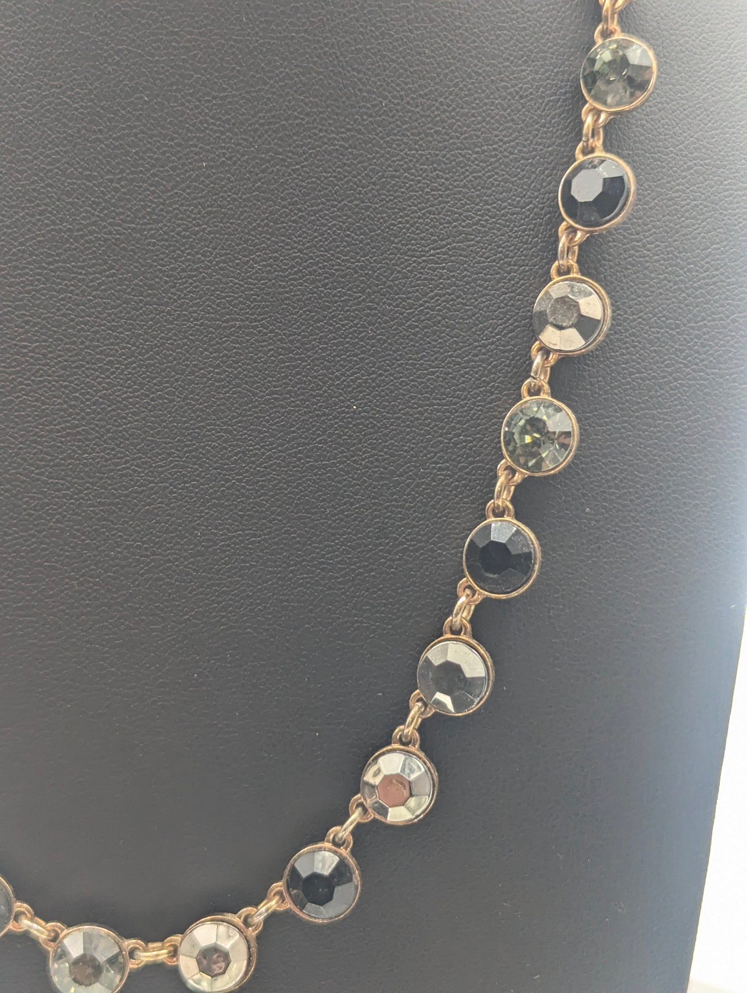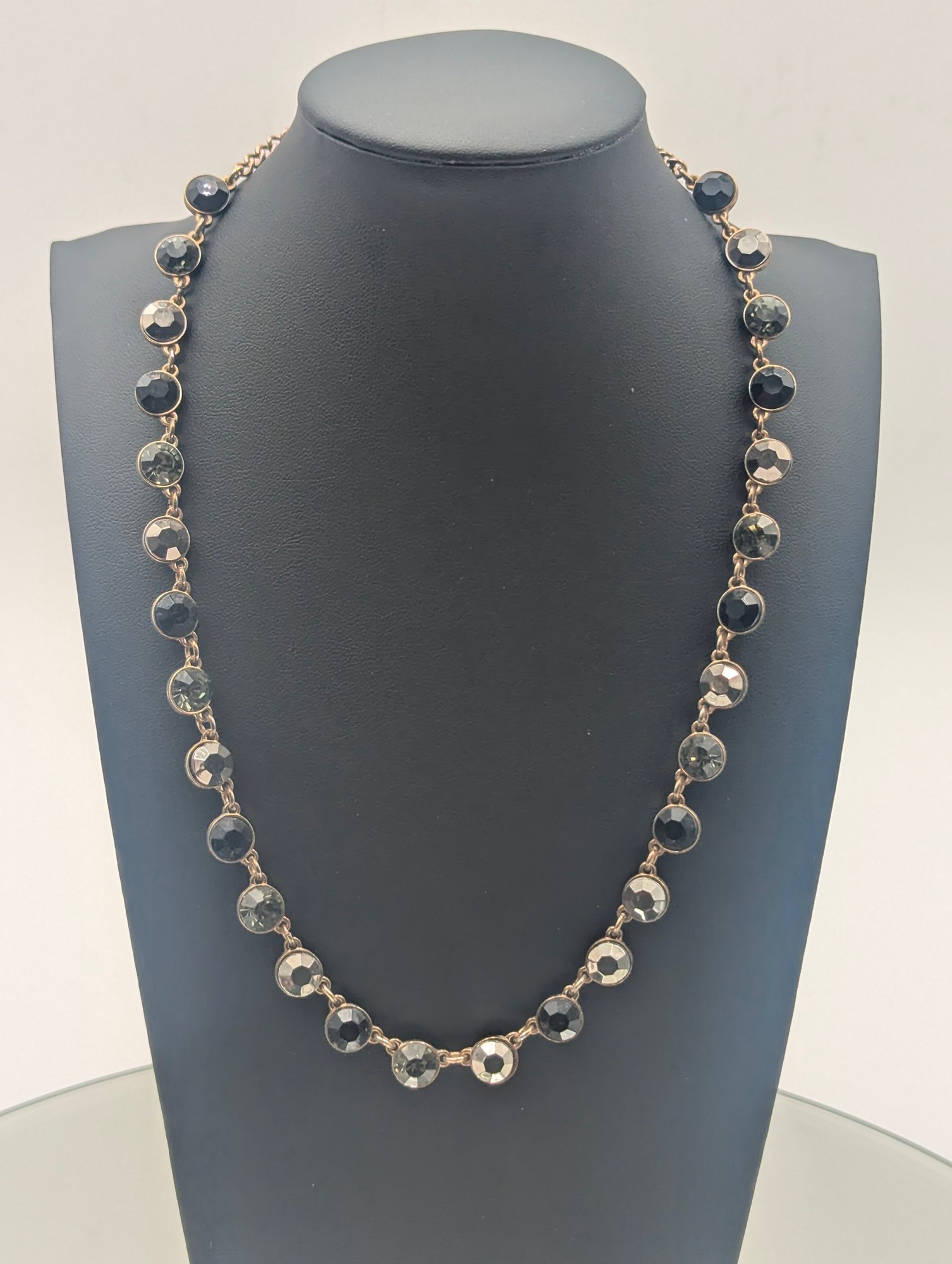 Chico's Black & Hematite Grey Rhinestone Rivire Necklace - Gold Tone