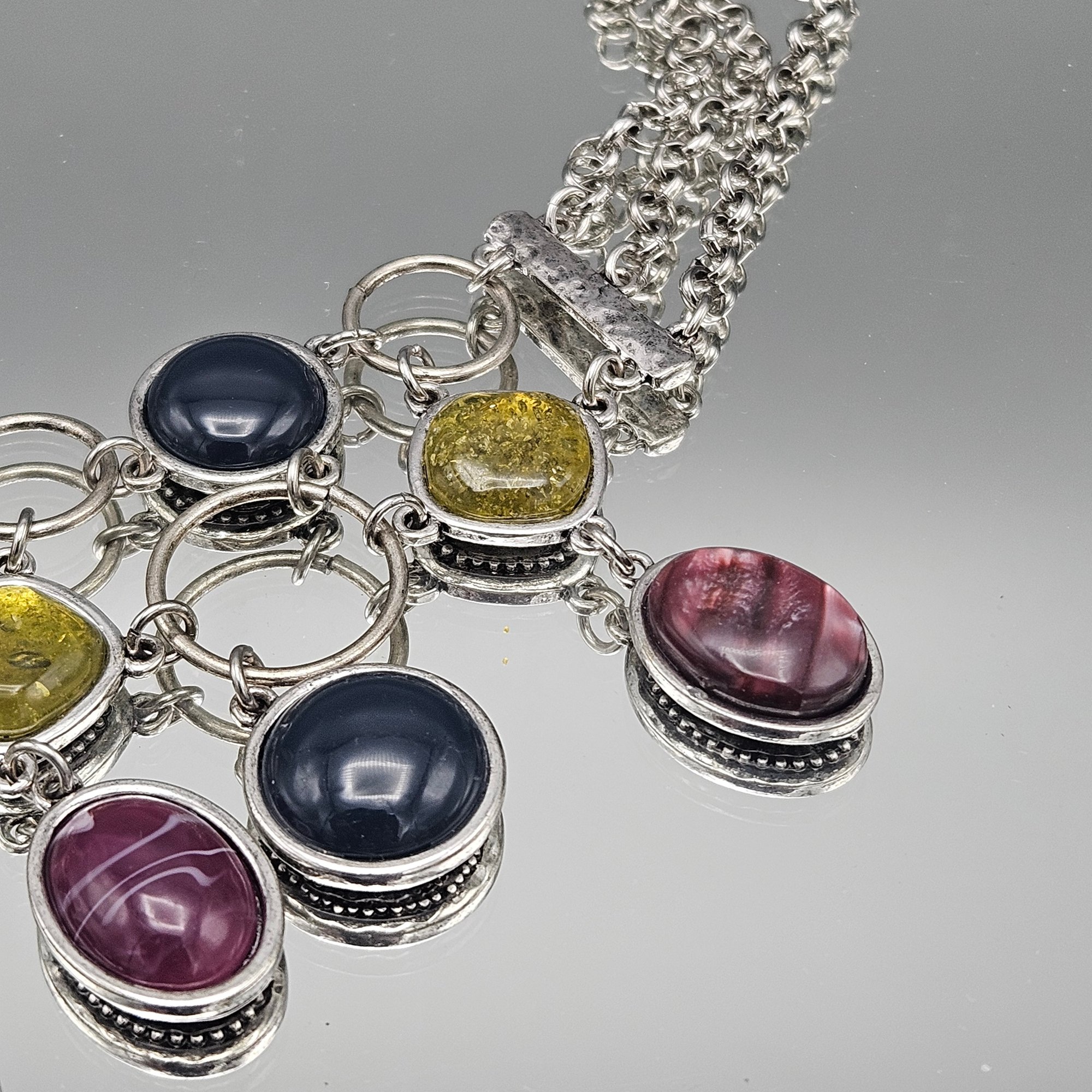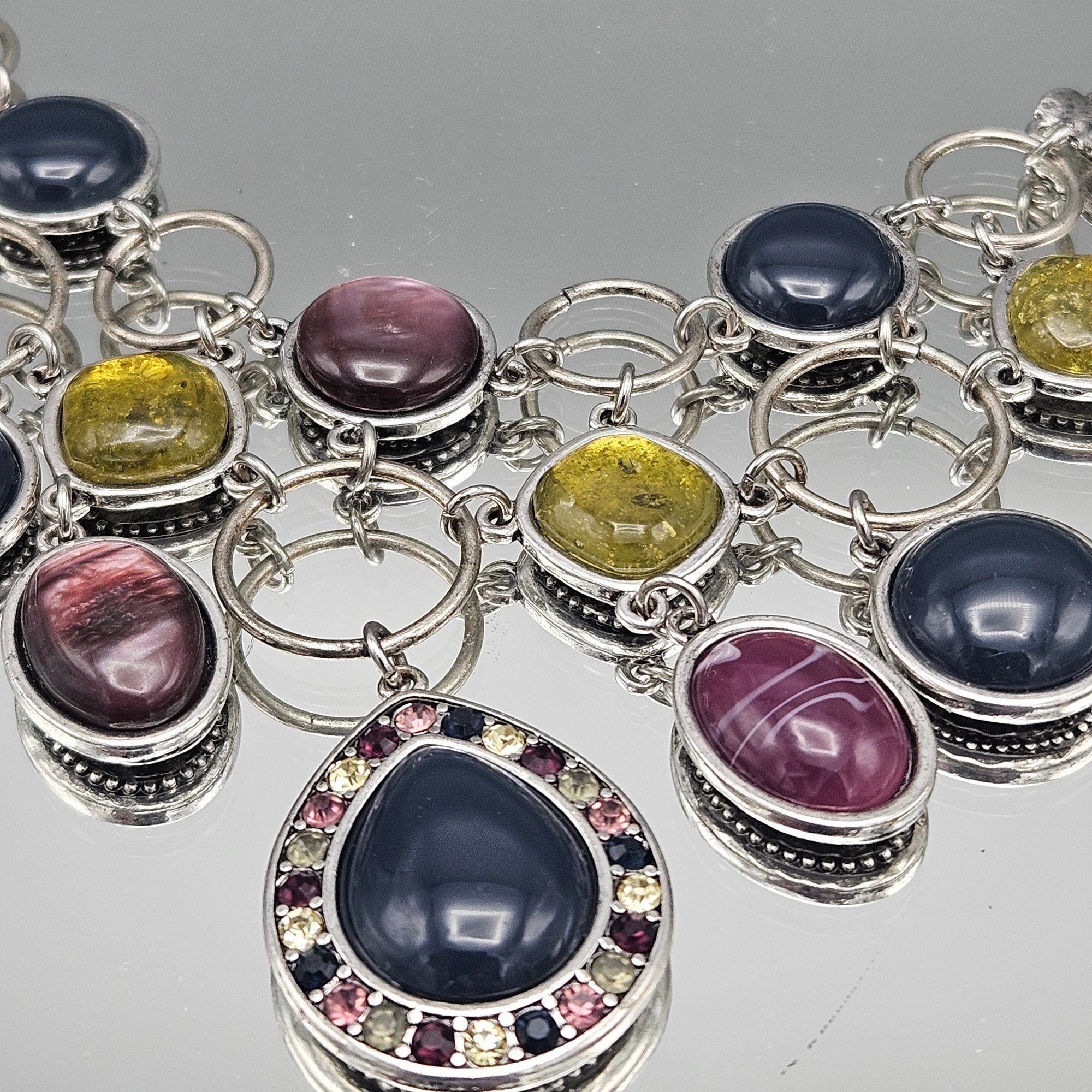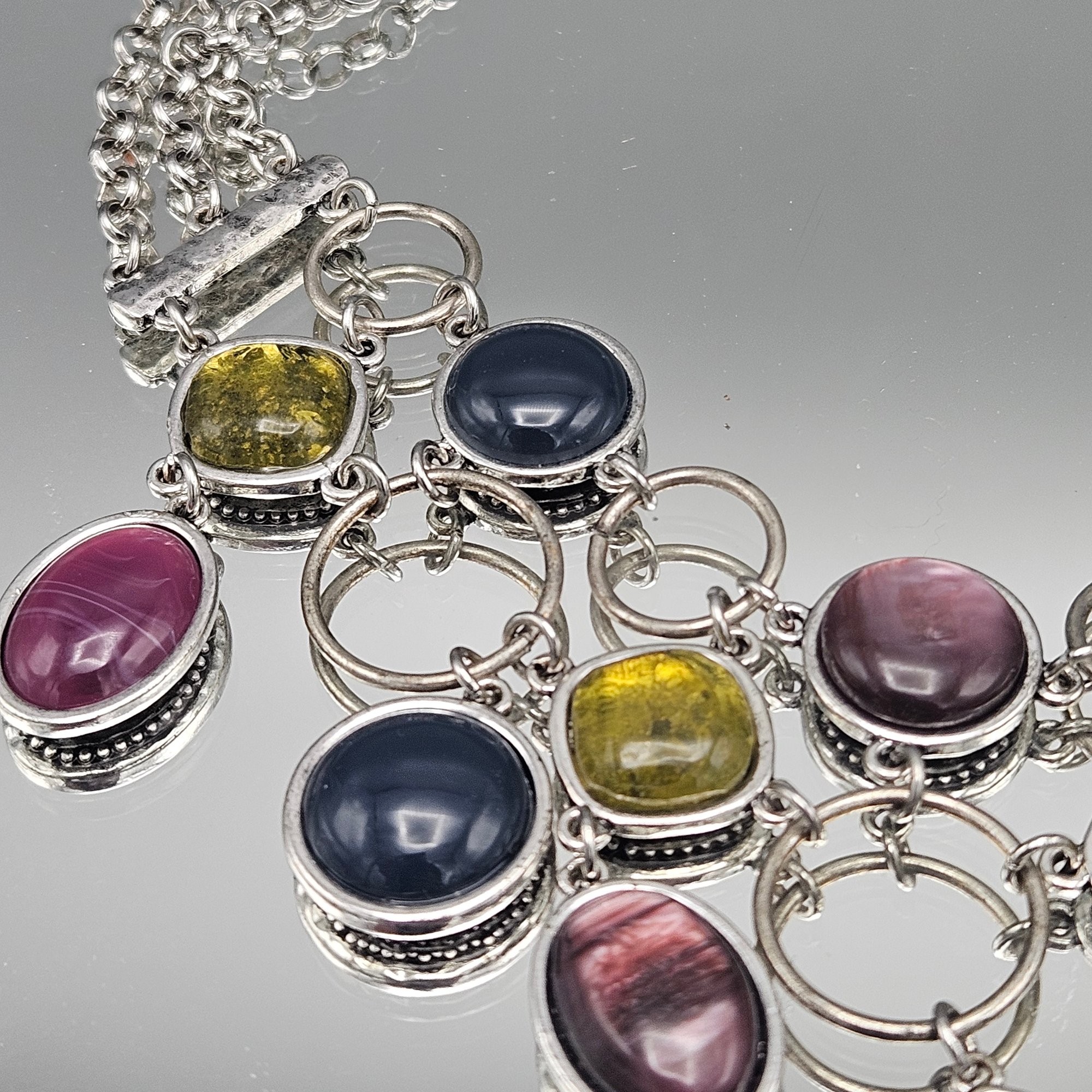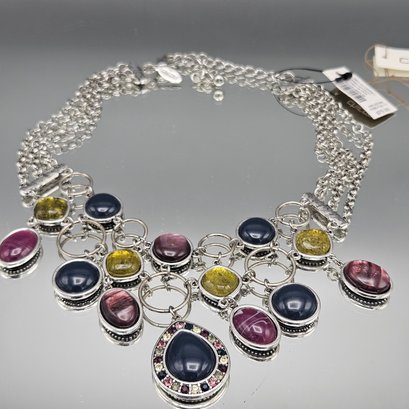 Chicos Emilee Bib Necklace Silver Tone Multi Stone Statement