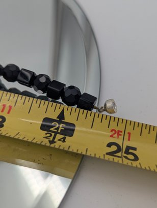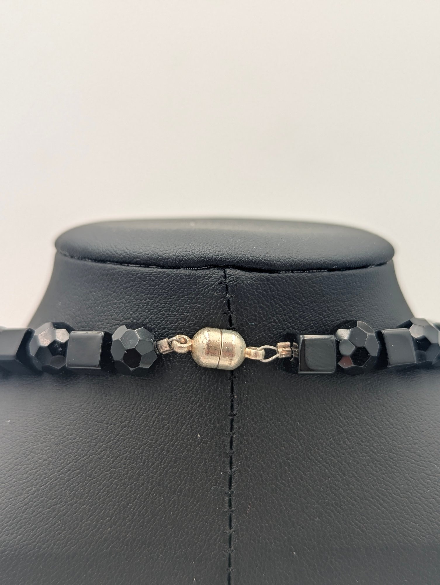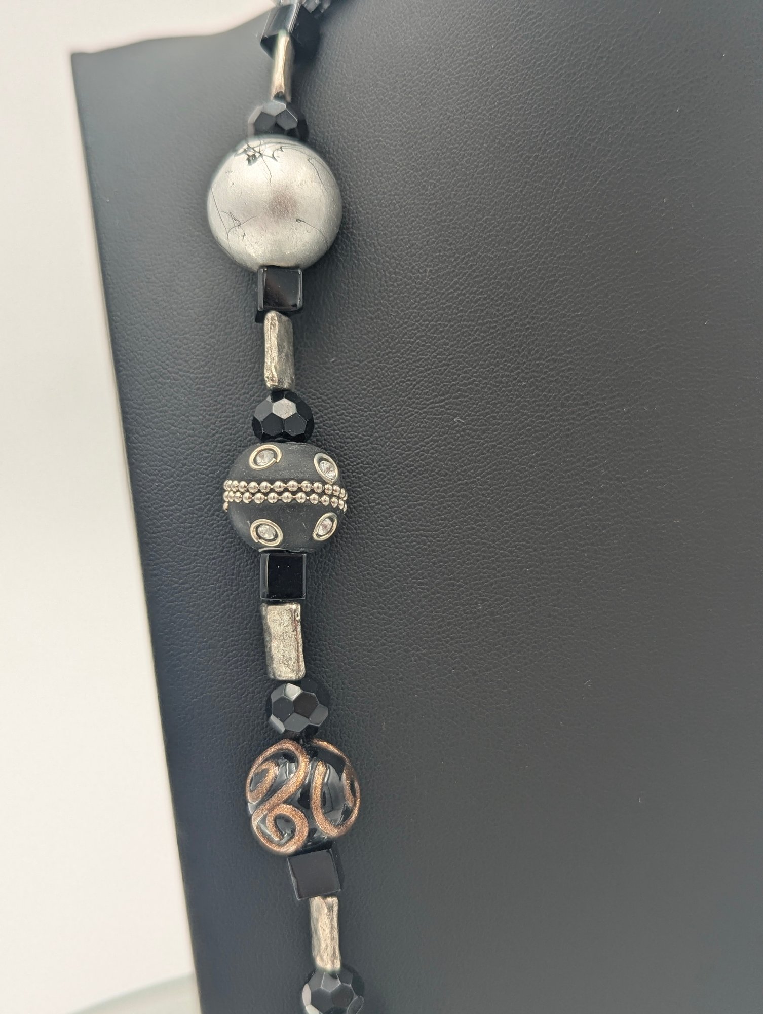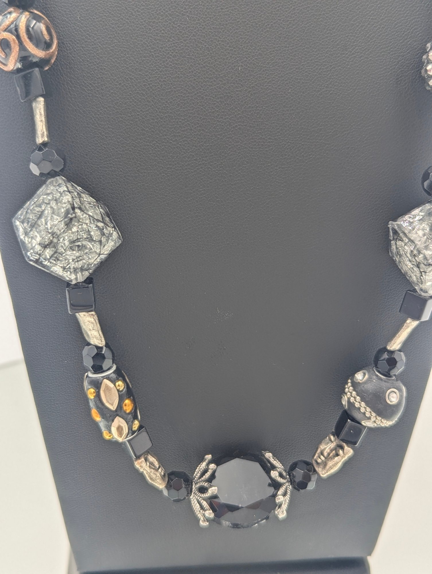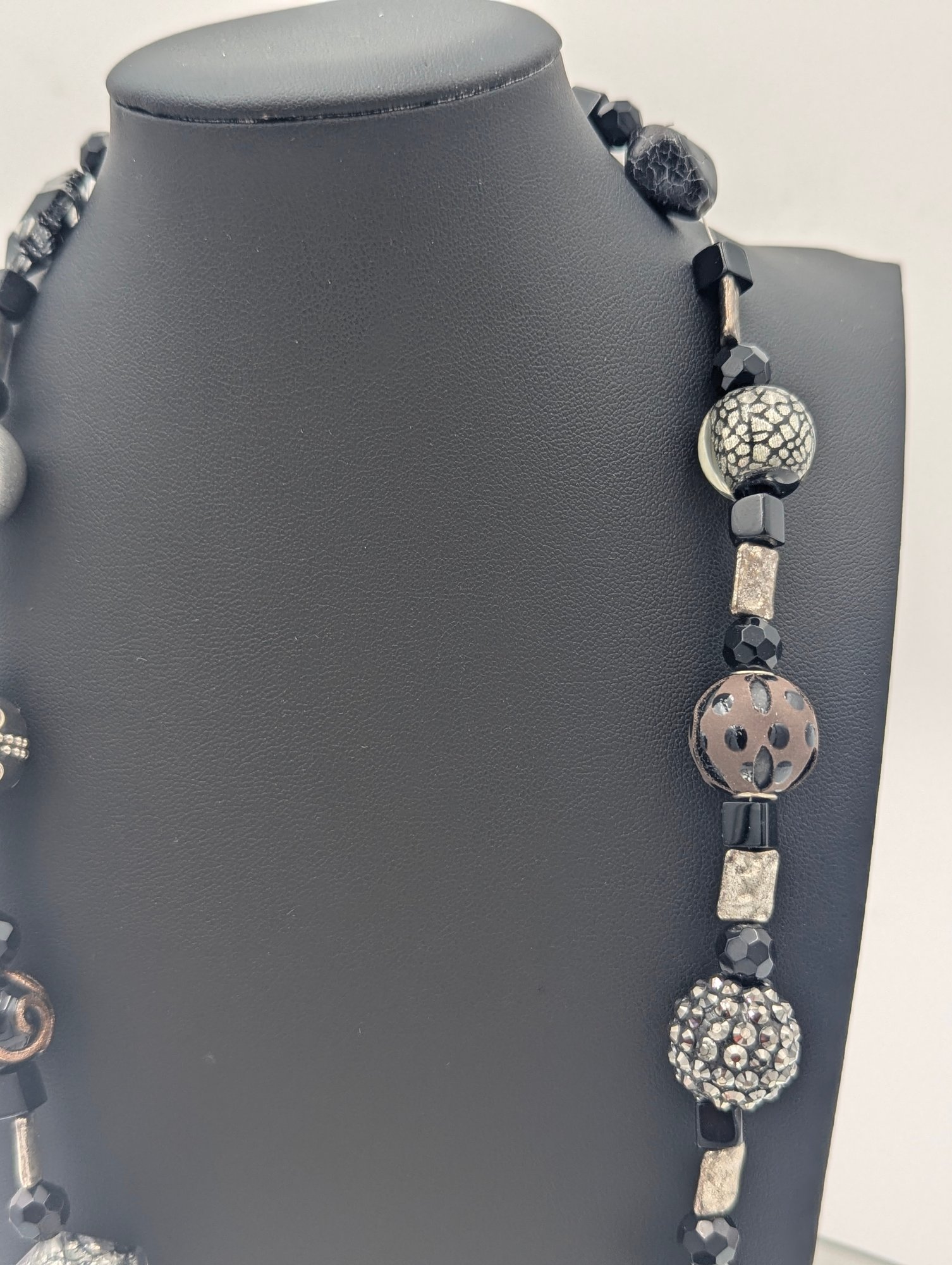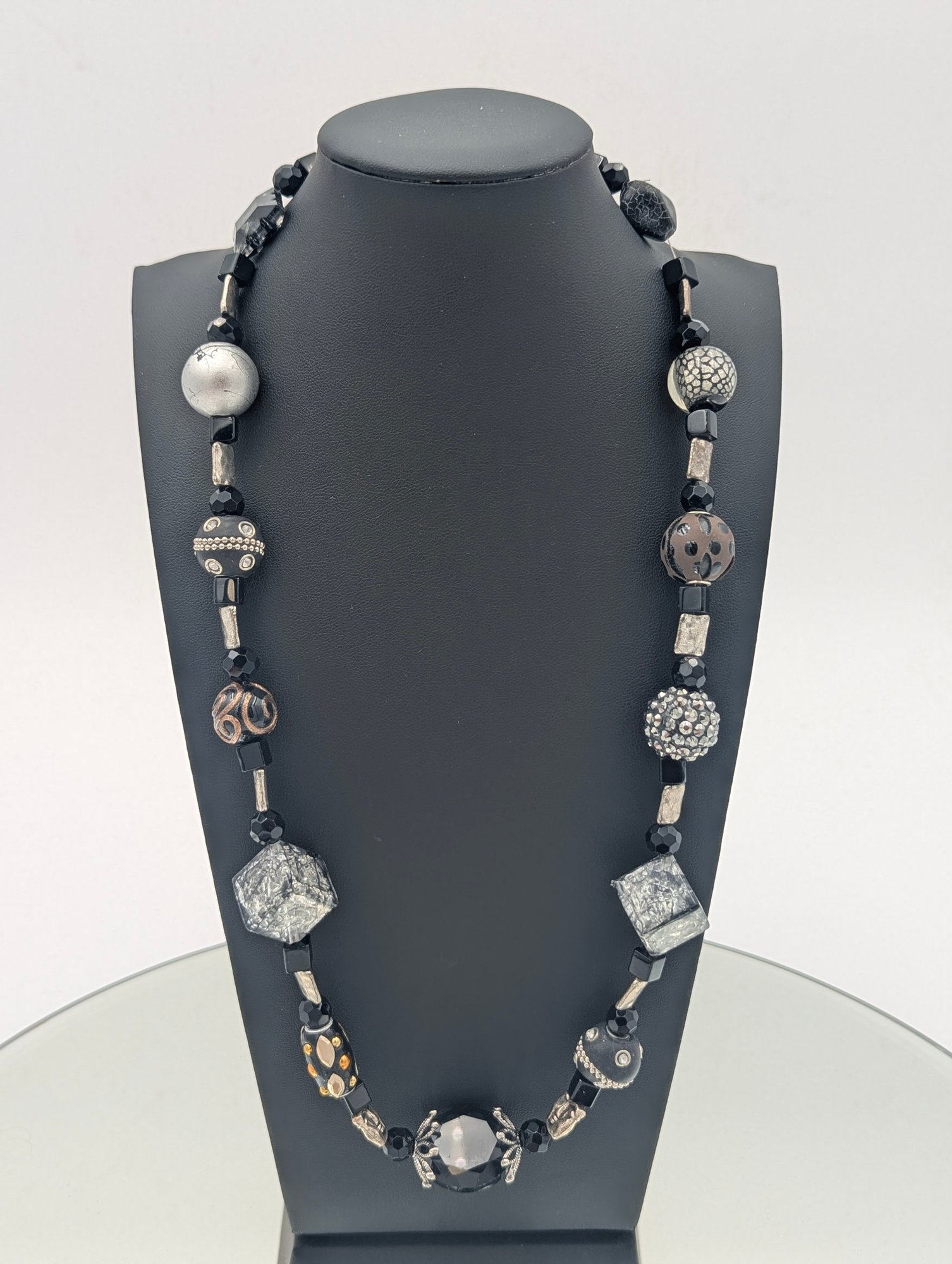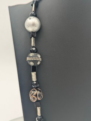 Chunky Black & Silver Mixed Media Statement Necklace - Magnetic Clasp 24"