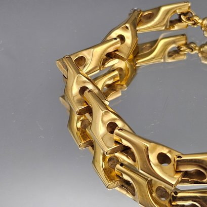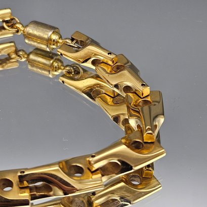 Chunky Gold Tone Modernist Link Bracelet 8.5"