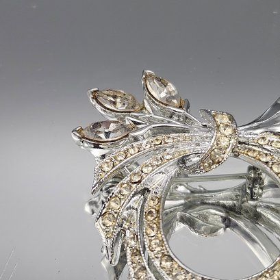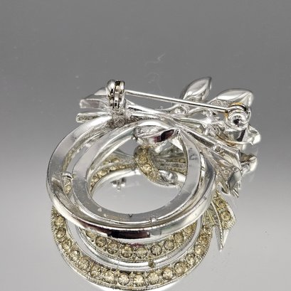 Clear Rhinestone Silver-Tone Flower Wreath Pin