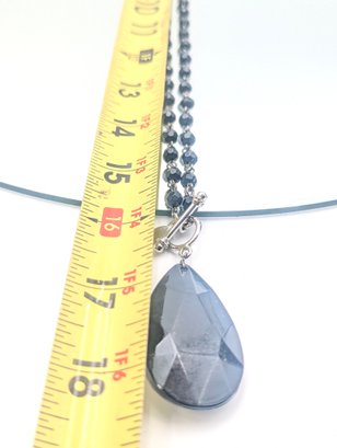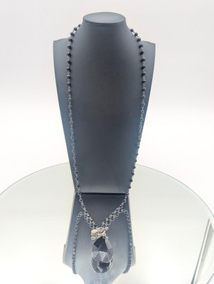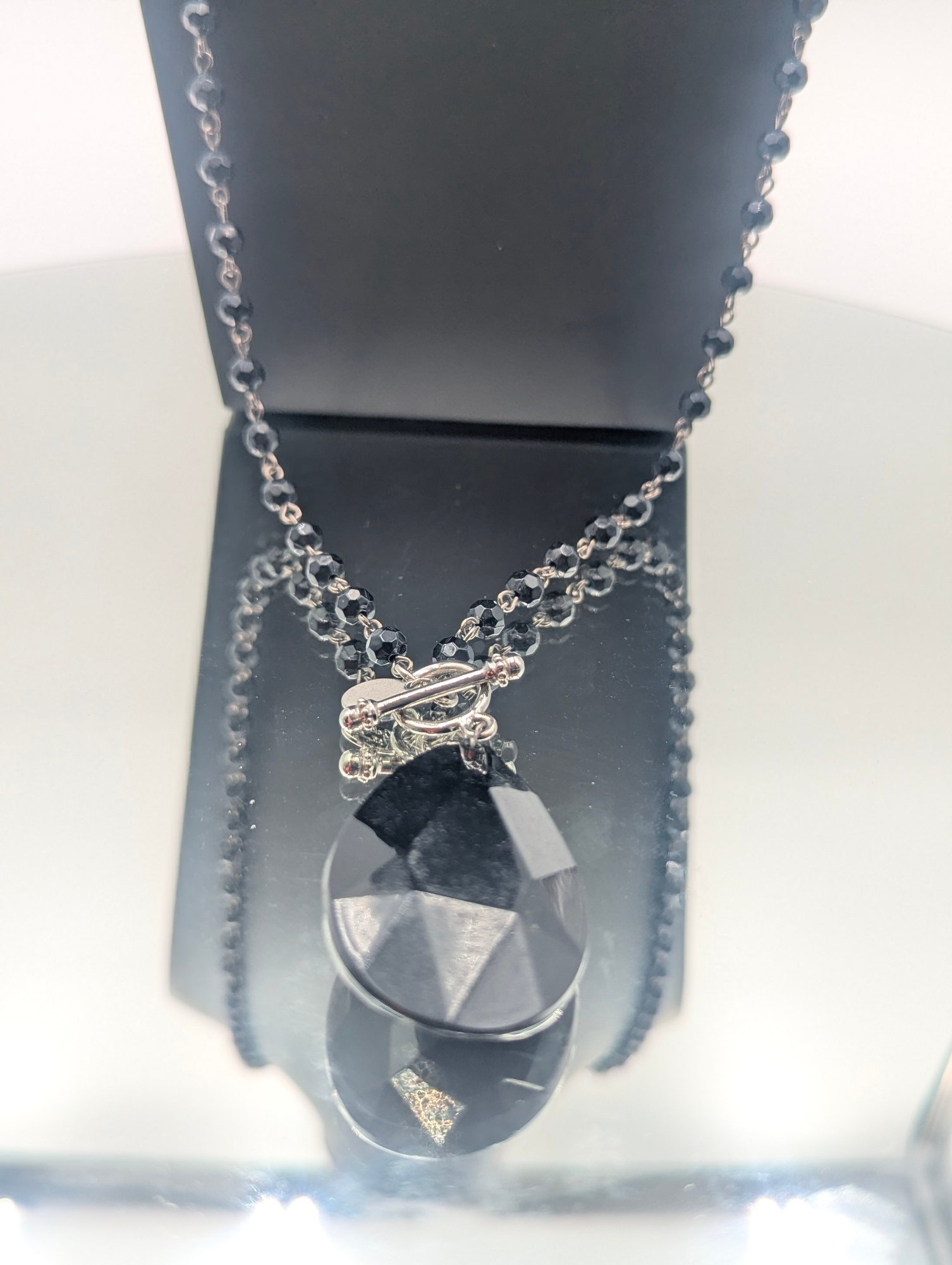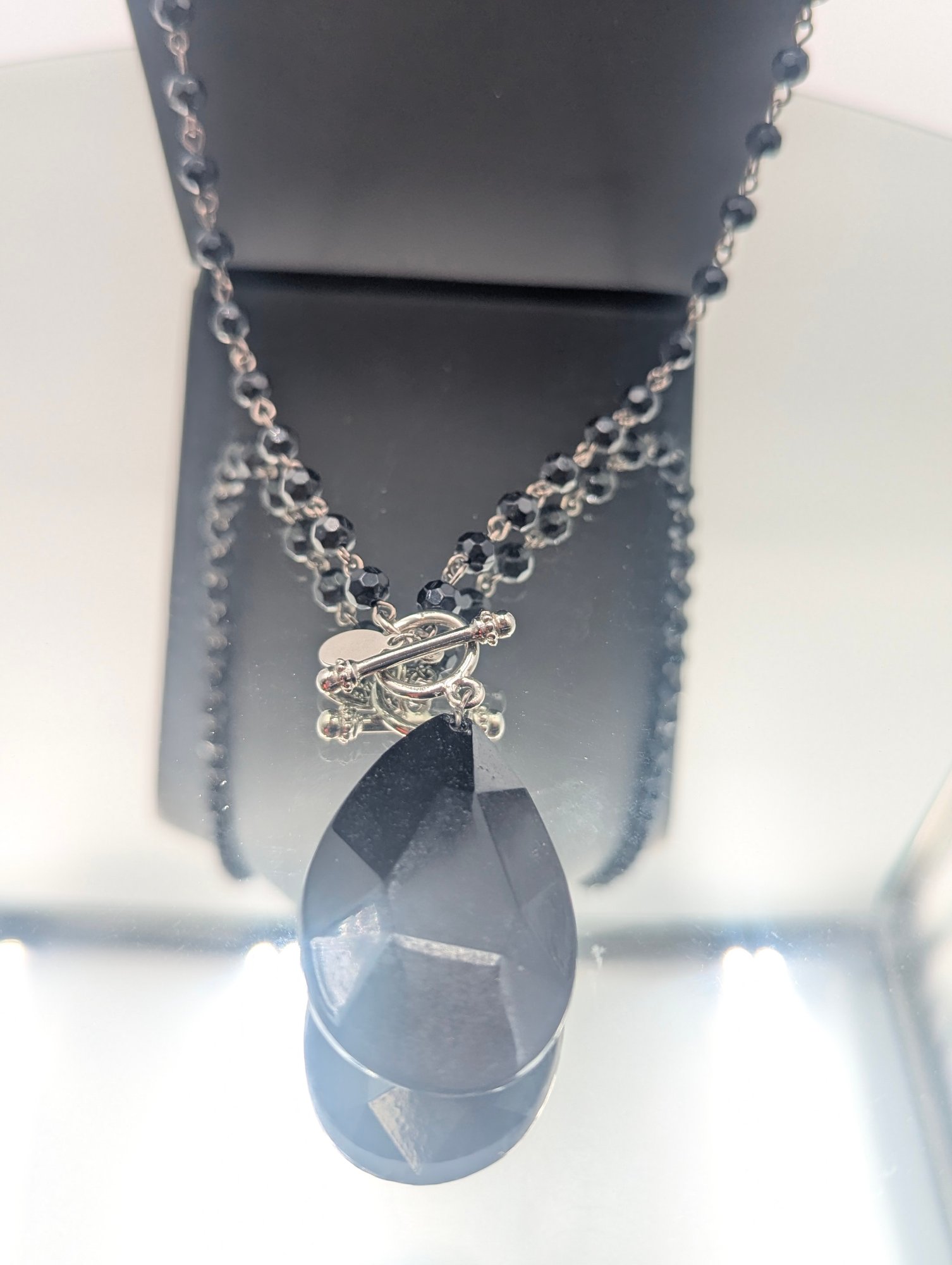 Cookie Lee Black Faceted Bead Necklace With Large Teardrop Pendant