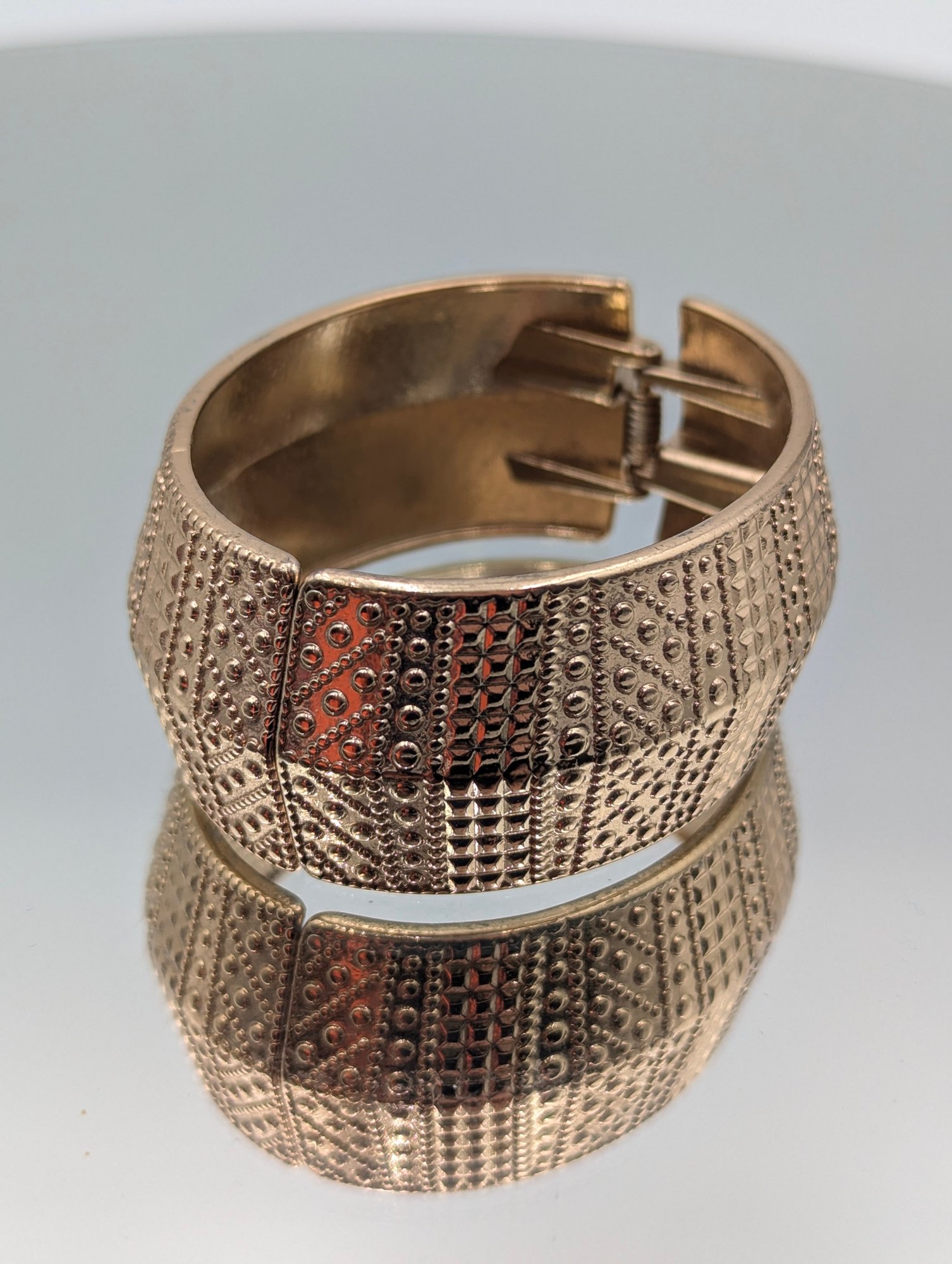 Cookie Lee Rose Gold Tone Textured Geometric Hinged Bangle Bracelet
