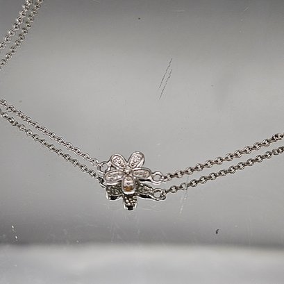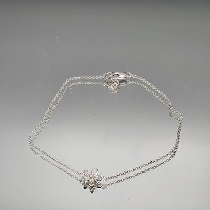 Dainty chain Sterling Silver Bracelet with Pavé Flower Charm