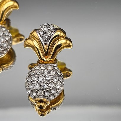 Deco Style Vintage Crystal Drop Earrings - Gold Tone