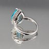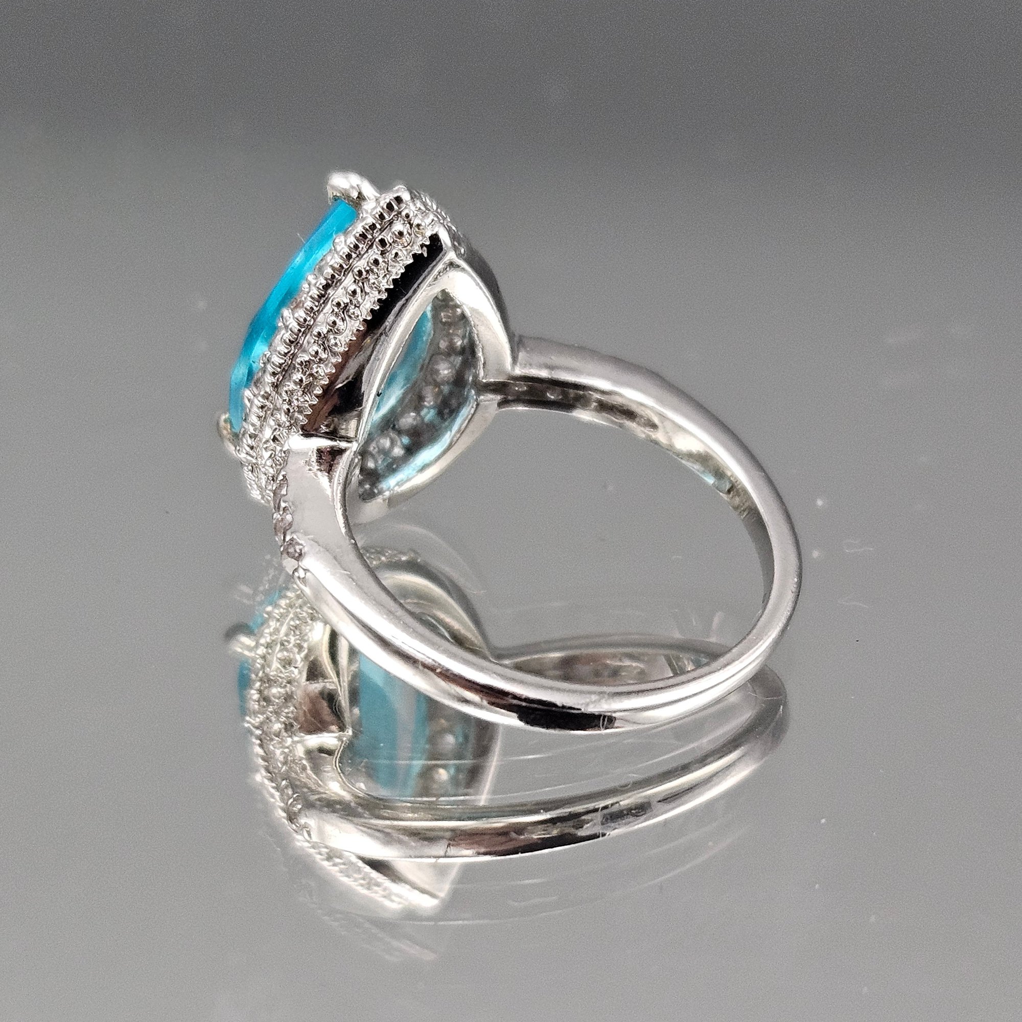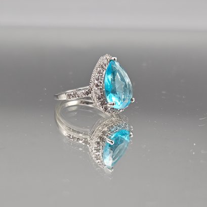 Pear-Cut Electric Blue Topaz Halo Ring in Silver Tone - Size 6.25