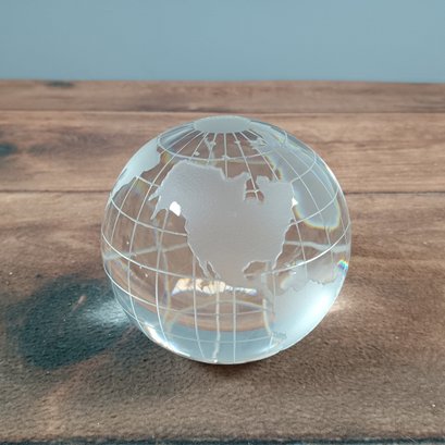 Etched Frosted and Clear Glass World Globe Earth 2.5" Paperweight