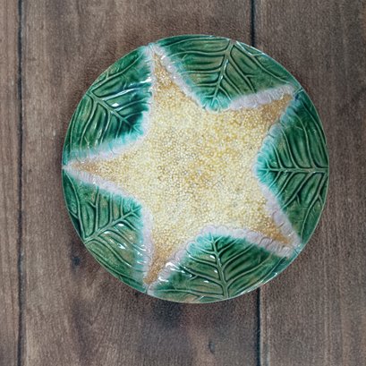 Etruscan Majolica Griffen Smith And Hill Plate Cauliflower 8 Green Yellow White Victorian