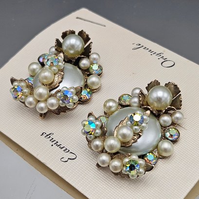 Faux Pearl And Rhinestone Cluster Earrings Clip-On