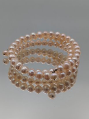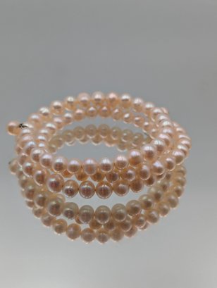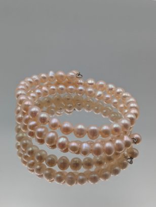 Faux Pink Pearl Wrap Wire Bracelet
