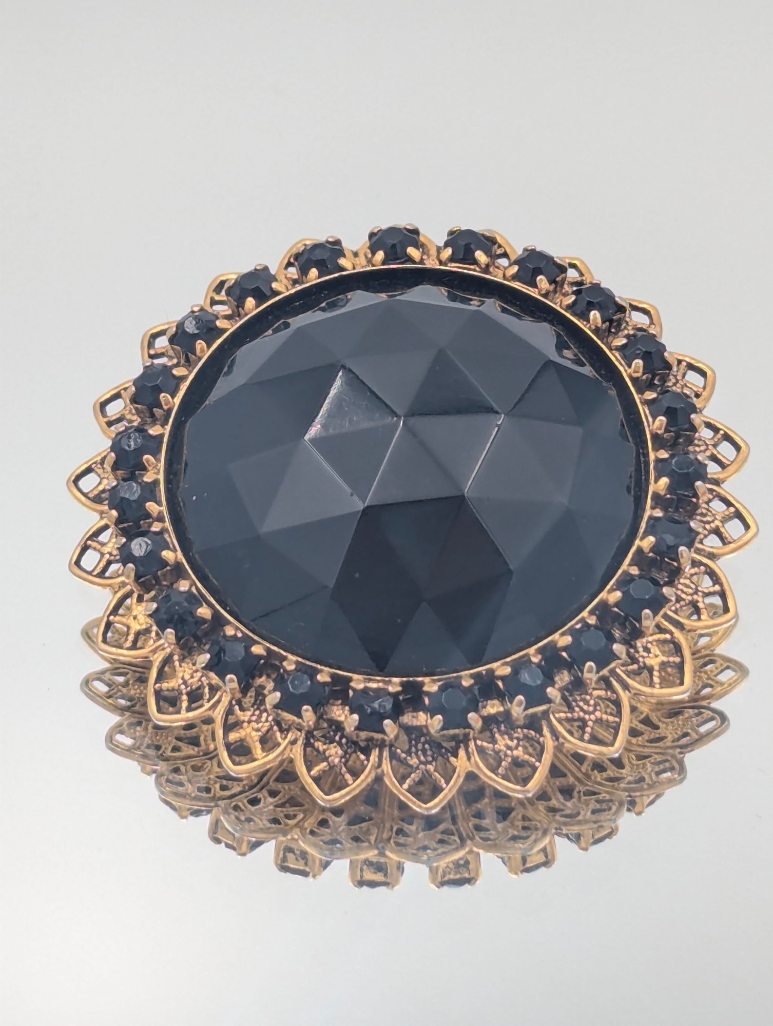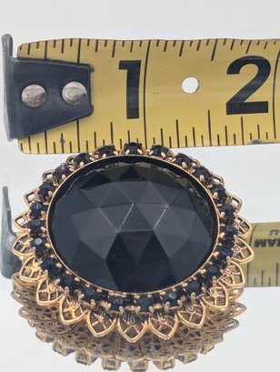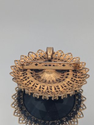 Filigree Gold Tone & Faux Onyx Brooch Pendant
