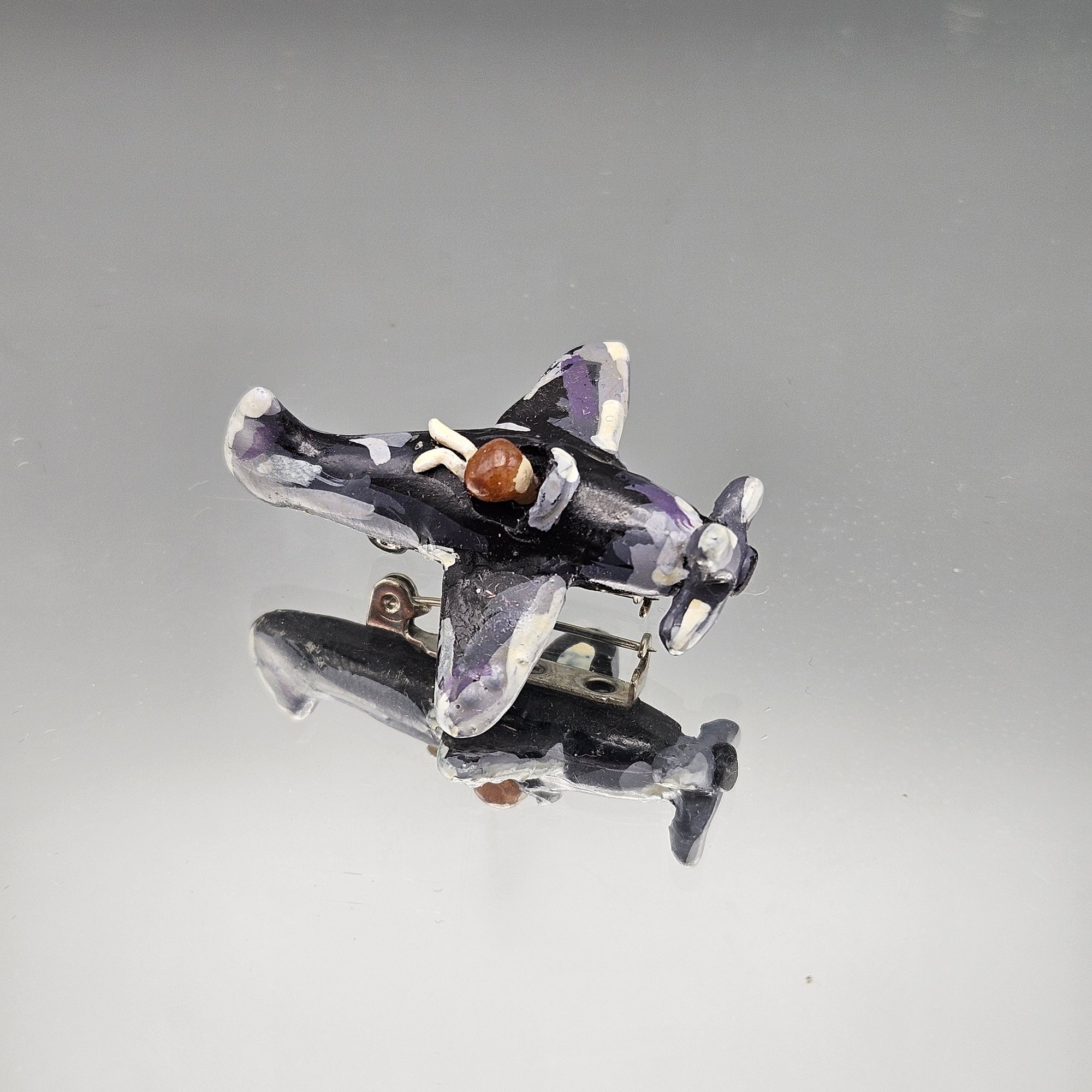 Hand-Painted Airplane Brooch Small Propeller Plane