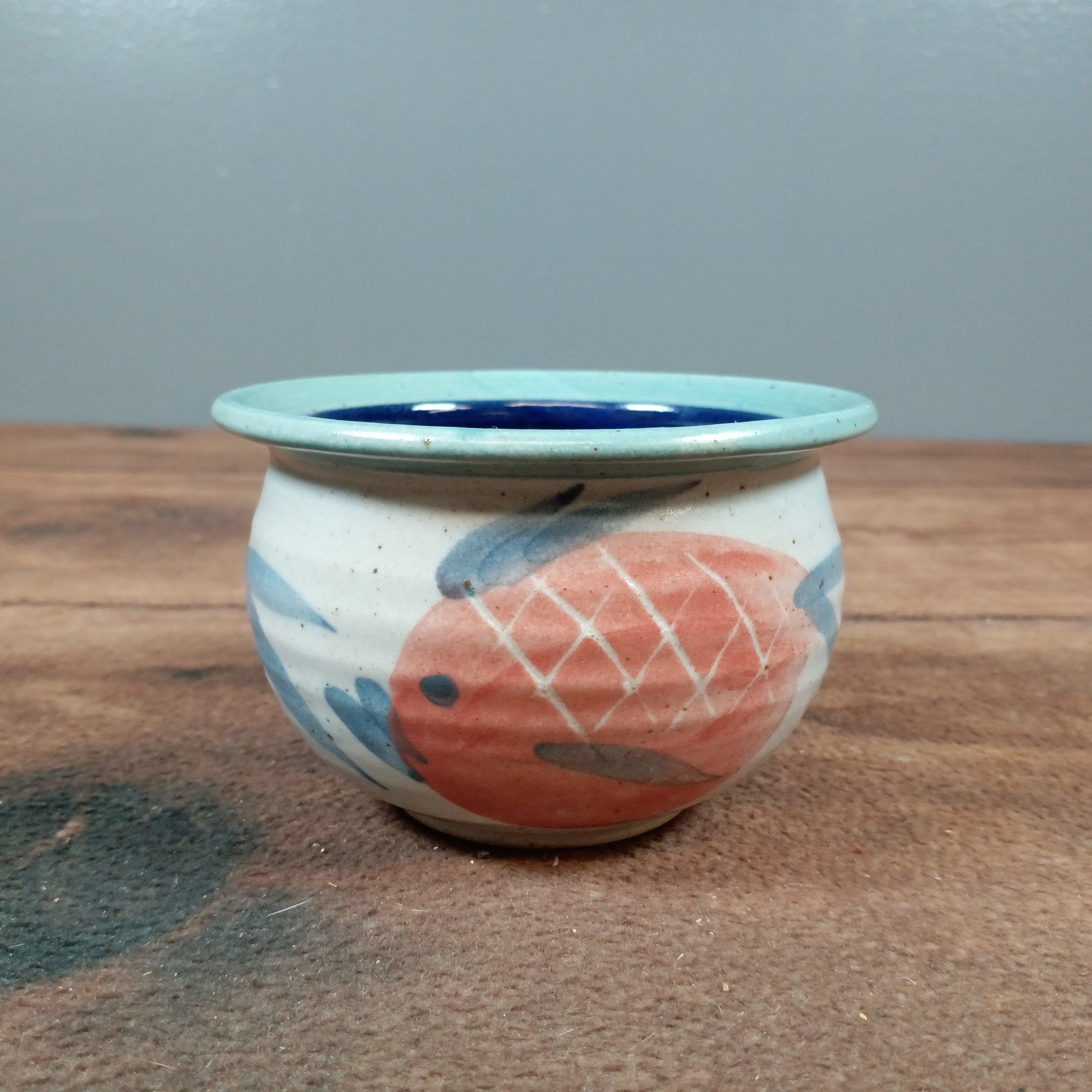 Hand painted Ceramic Studio art Planter with glazed fish design