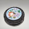 Hand Painted Russian Rostov Finift Floral Blue Round Brooch