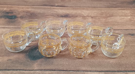 Set of 8 Handblown Gold Trim Clear Glass Cups