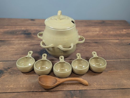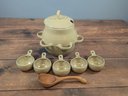Hartstone Pottery Soup Tureen Bean Pot and 5 BOWLS, TAN